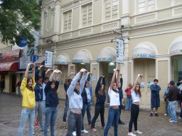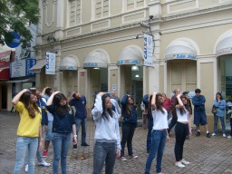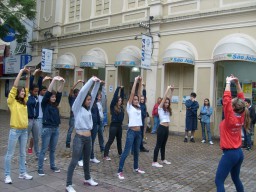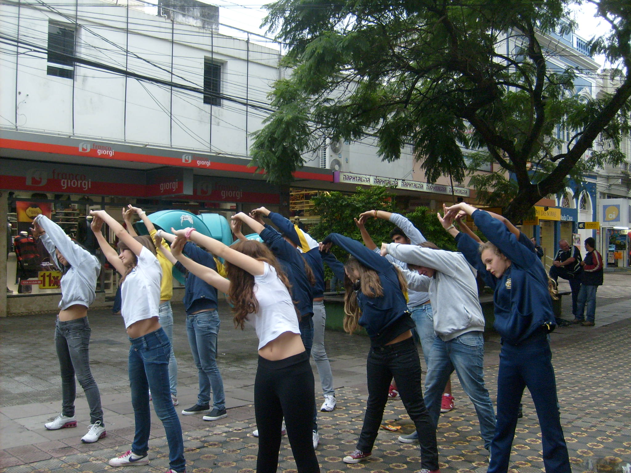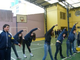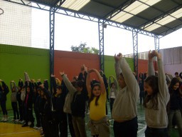 Realizado paralelamente em várias partes do mundo na última quarta-feira de maio, o Dia do Desafio propõe que as pessoas interrompam suas atividades rotineiras e pratiquem, por pelo menos 15 minutos consecutivos, qualquer tipo de atividade física. A ação acontece em forma de competição entre duas cidades. Pelotas está concorrendo com a cidade mexicana Delegación Venustiano Carranza. Os professores de educação física da escola, Roger e Tiago, convidaram os alunos para realizar durante o recreio uma série de alongamentos em comemoração ao dia. Os alunos das 5ª, 6ª e 7ª séries foram os que mais participaram. Agradecemos também os alunos da 71, 73, 81 e 1M2 que participaram da reportagem sobre o Dia do Desafio transmitida pela TV Nativa. Nossos alunos foram convidados a participar de uma série de exercícios que foi ao ar hoje no jornal do meio dia.