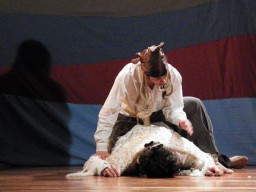 Aconteceu nesta segunda-feira, no anfiteatro da escola, a apresentação do Tatá Núcleo de Dança-Teatro que apresentou Tatá Dança Simões. A proposta do espetáculo é reinventar e refazer, nos corpos dos intérpretes-criadores, as emoções e o modo de perceber a vida que o escritor, João Simões Lopes Neto, expressou em seus textos.