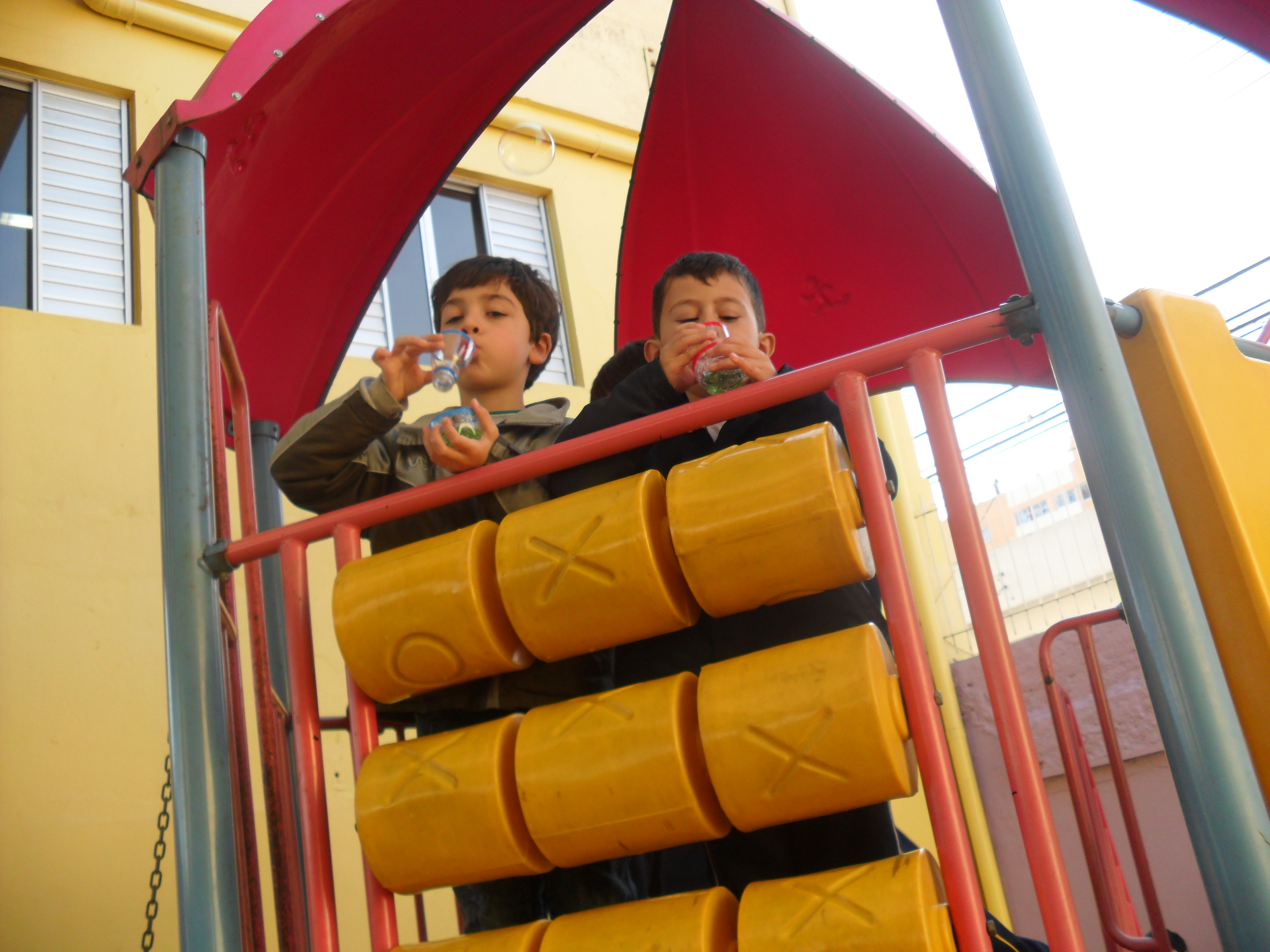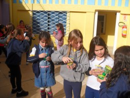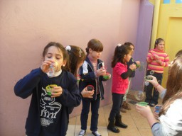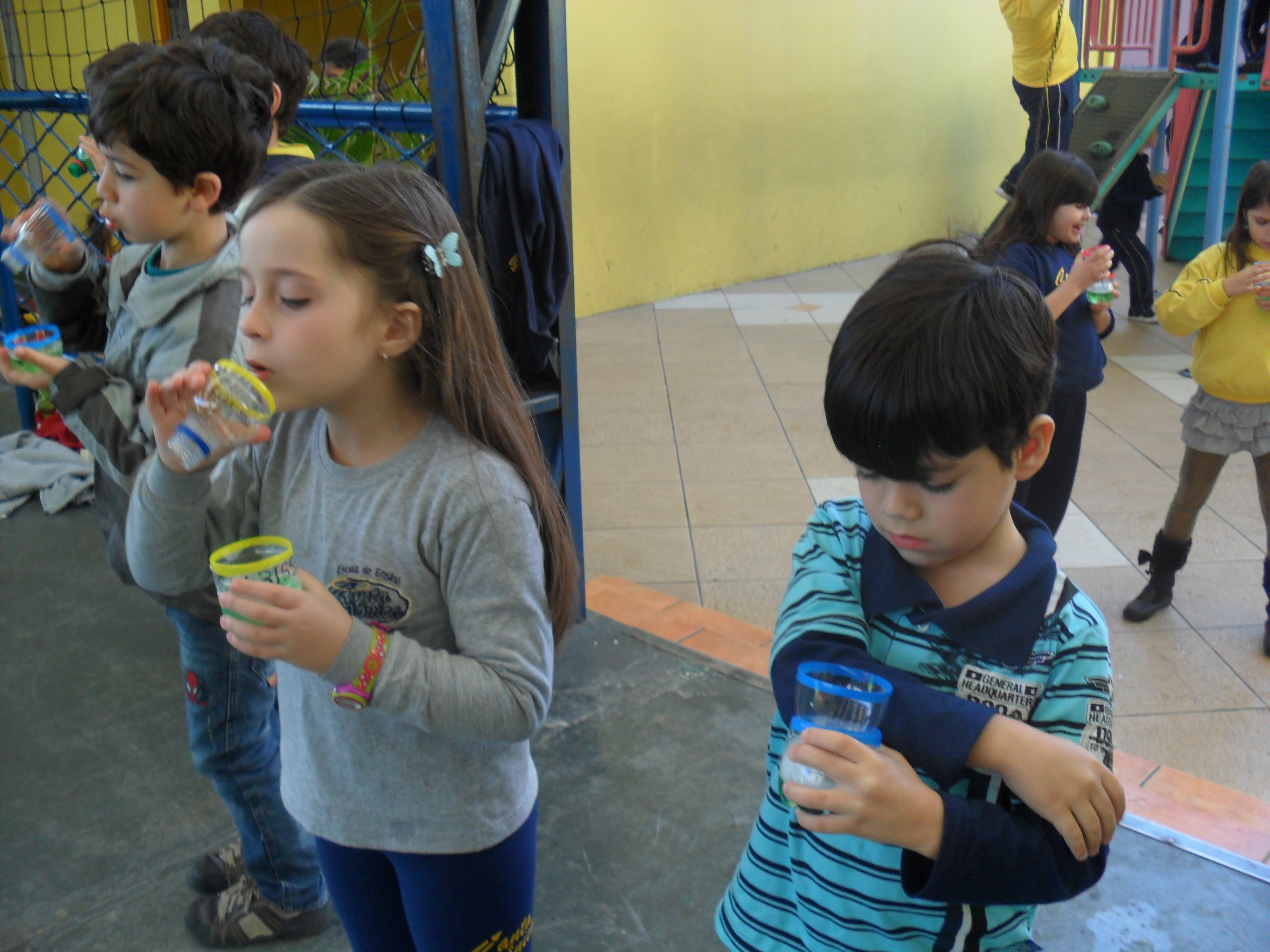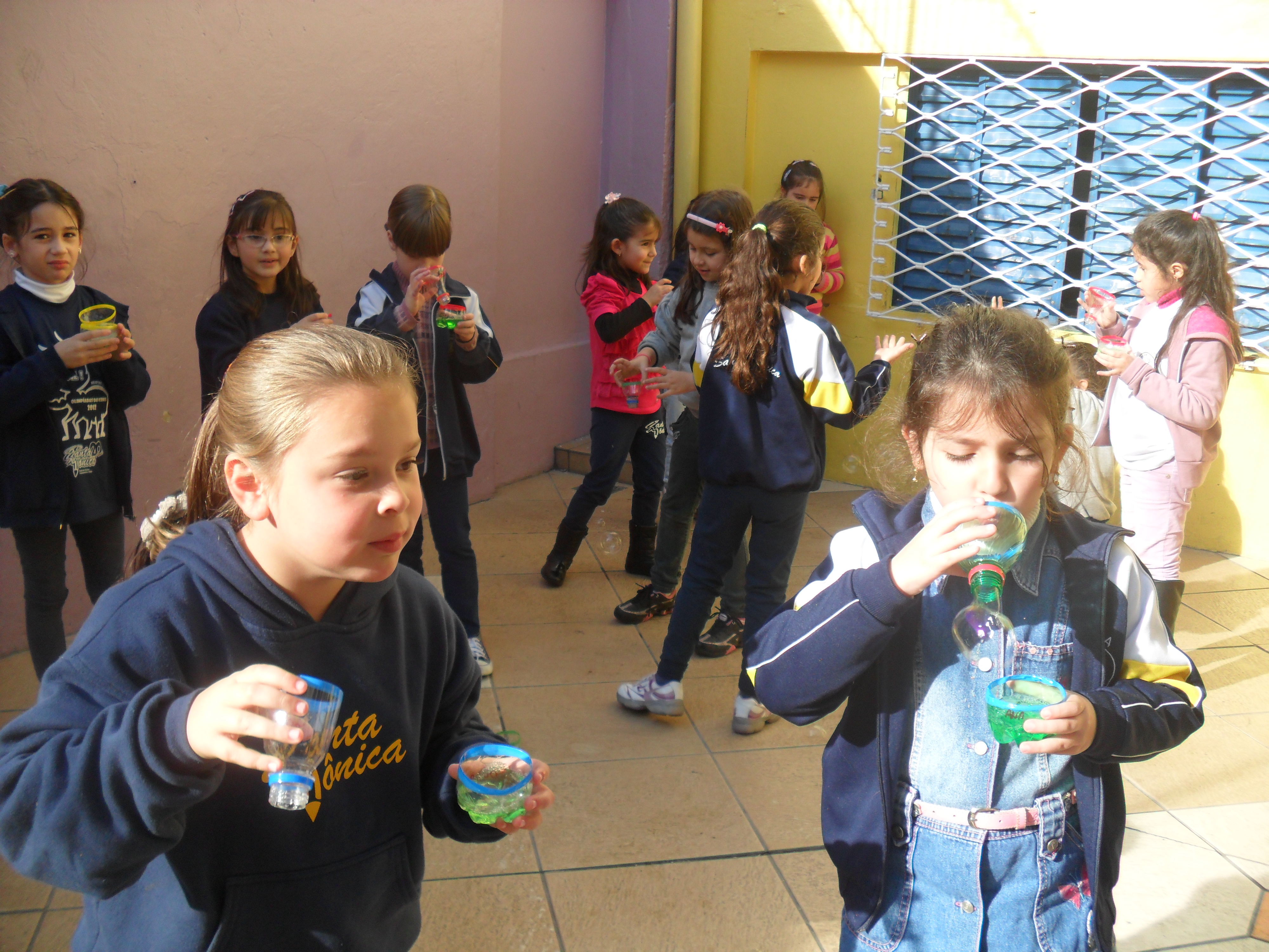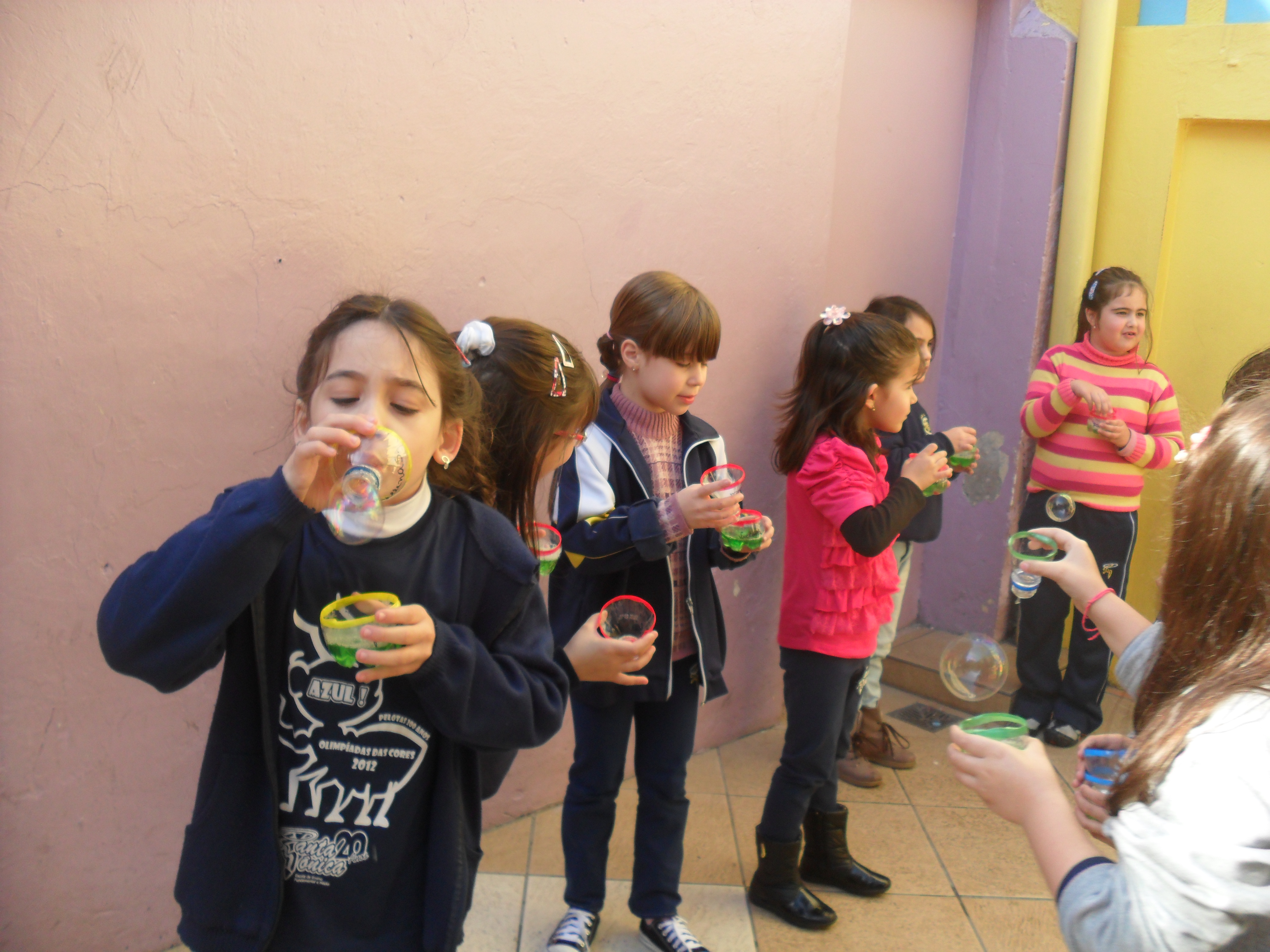 Para aprender a dificuldade do "lh", as professoras do 1º ano fundamental organizaram uma tarde lúdica e divertida, brincando de "bolhas de sabão".