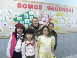 Apresentação da Invernada Mirim do DTG Tertúlia, declamações, a história da nossa bandeira, músicas, vídeos, lendas gaúchas e a história da nossa bebida típica - O Chimarrão foram apresentadas ao nossos alunos. Ah! e também não faltou o gostoso café campeiro. Confira nas fotos.