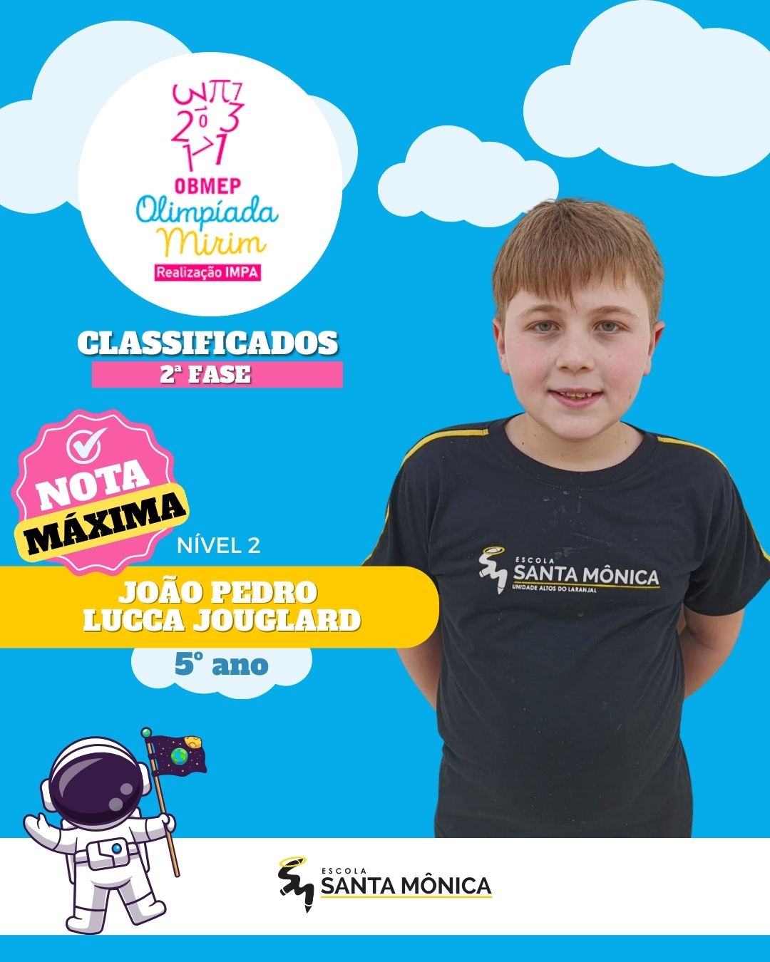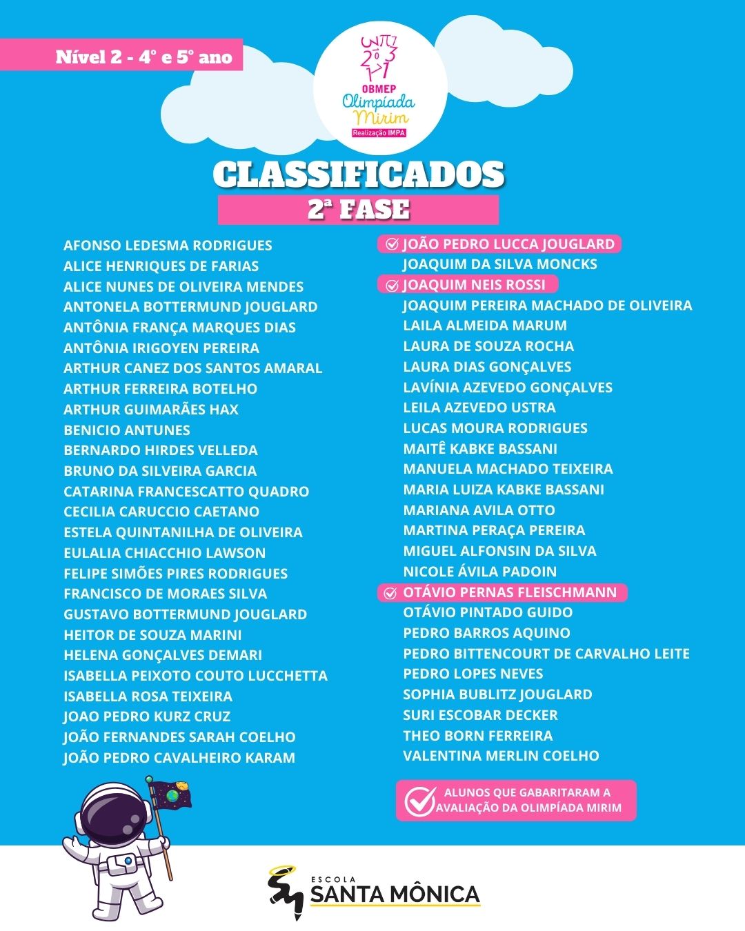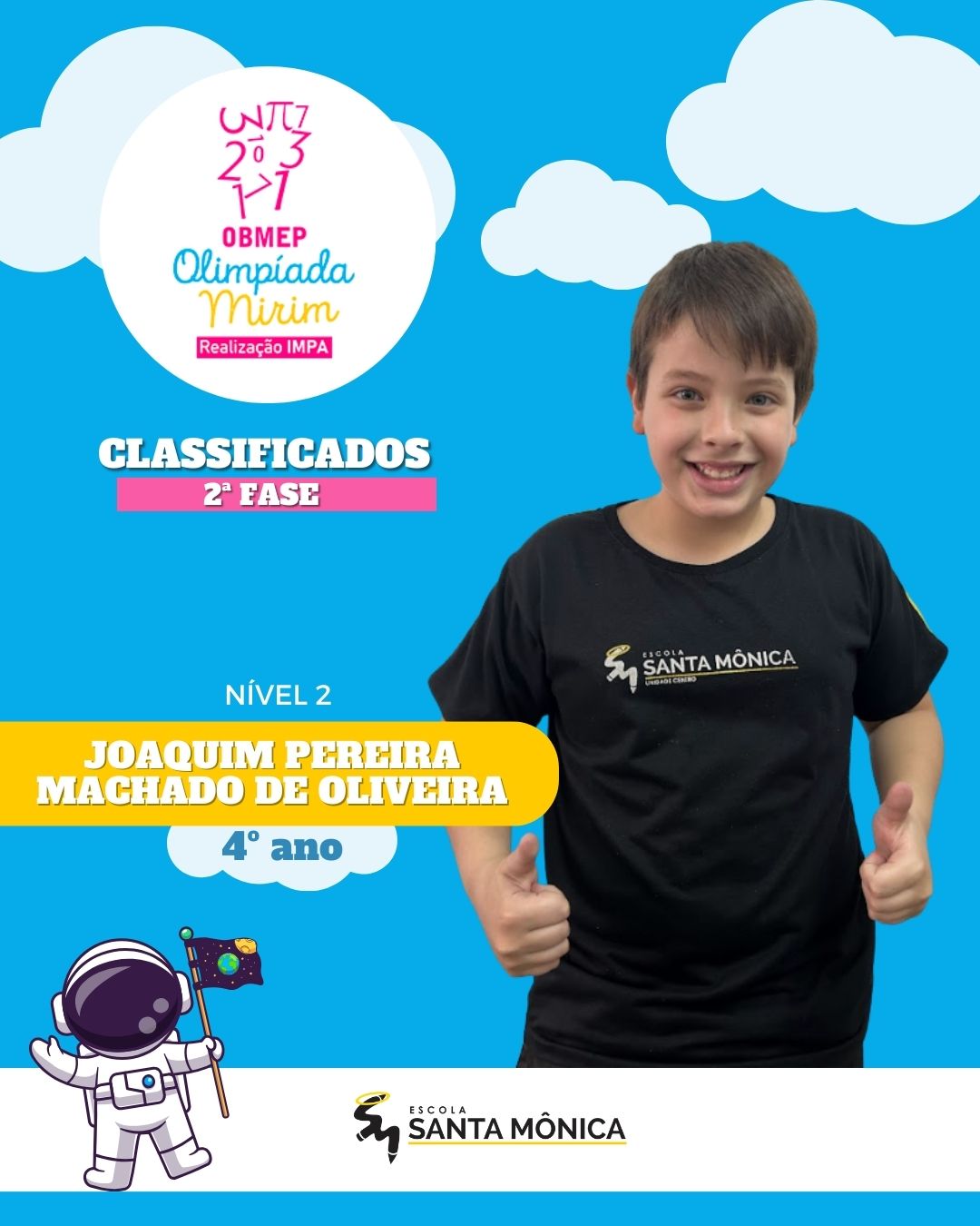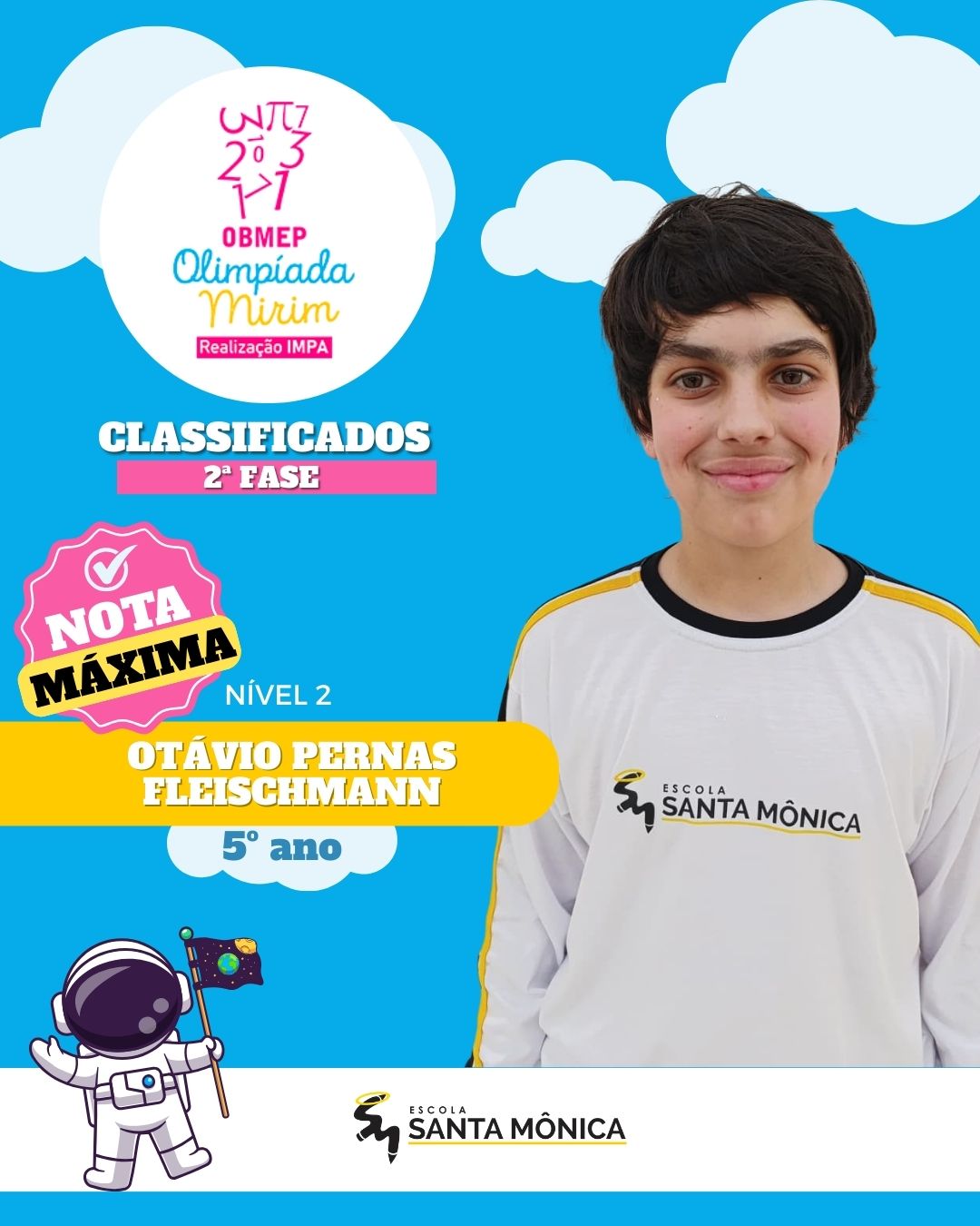 Com os resultados obtidos, os estudantes da Escola Santa Mônica avançam para a segunda fase da competição, que será aplicada de forma presencial nas escolas participantes, conforme calendário definido pela coordenação nacional da olimpíada. Essa etapa classificatória será composta por novas provas, que avaliarão competências matemáticas por meio de questões descritivas e de múltipla escolha.