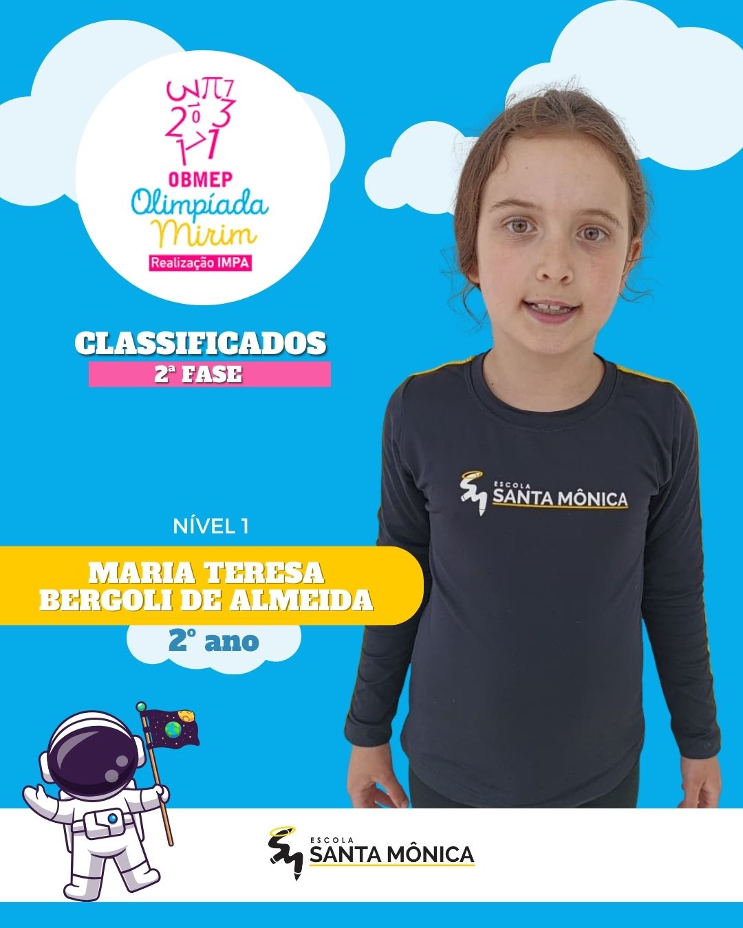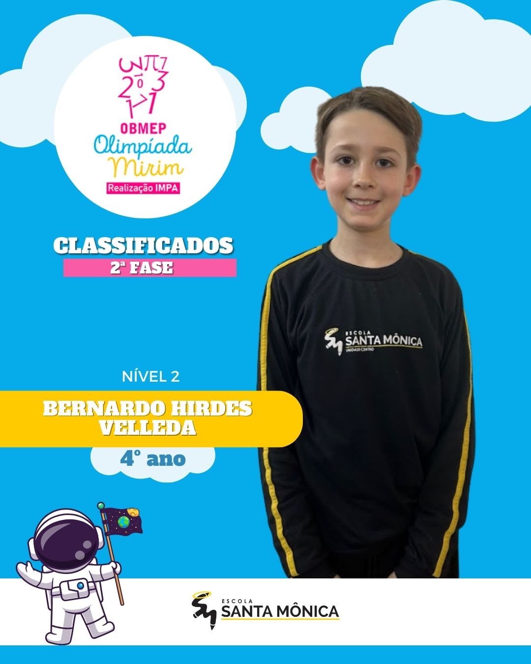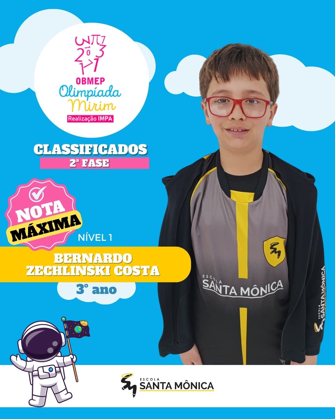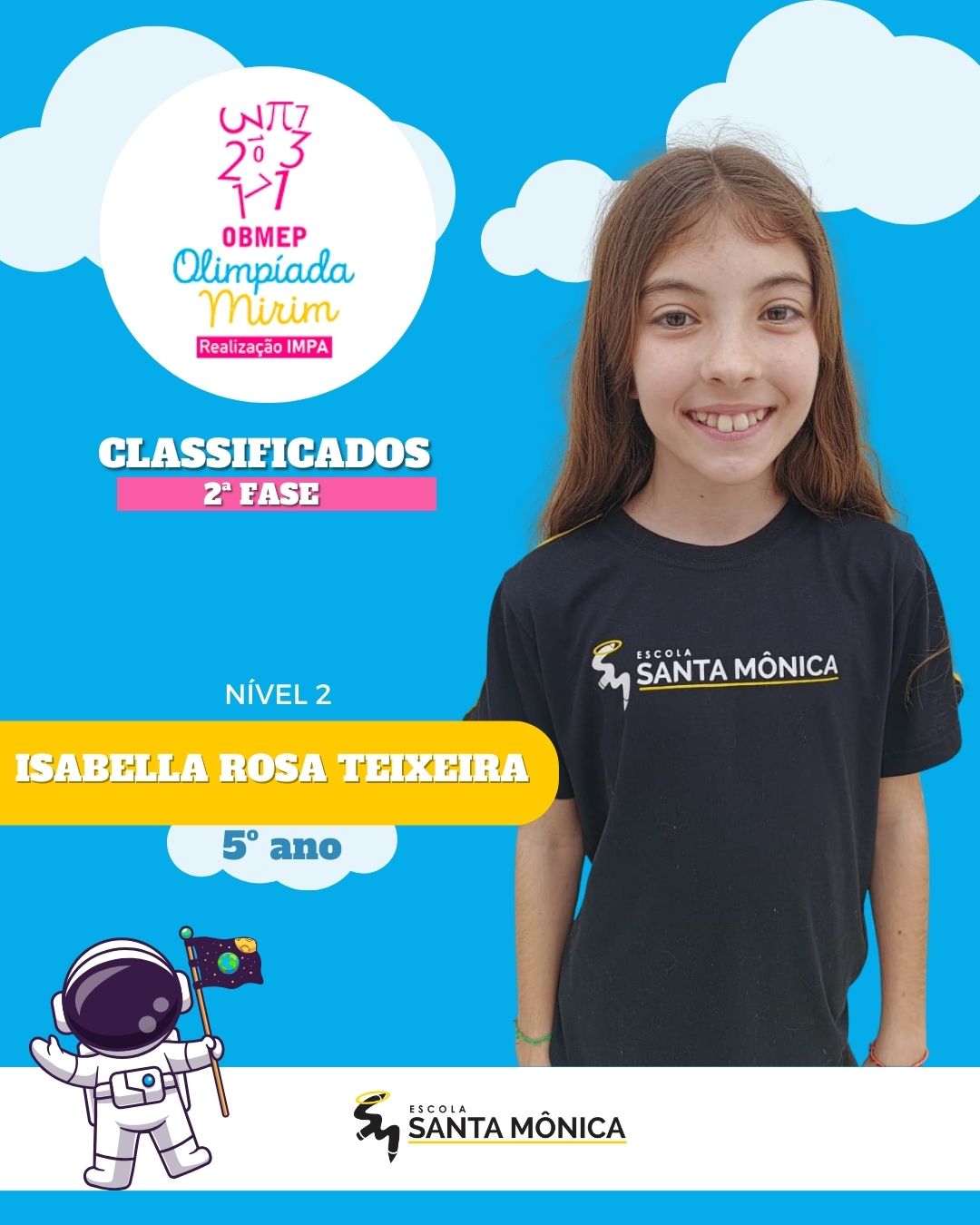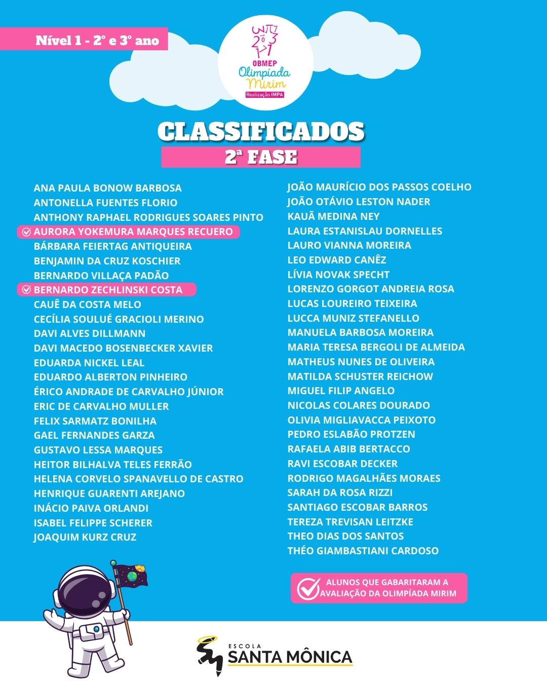 Com os resultados obtidos, os estudantes da Escola Santa Mônica avançam para a segunda fase da competição, que será aplicada de forma presencial nas escolas participantes, conforme calendário definido pela coordenação nacional da olimpíada. Essa etapa classificatória será composta por novas provas, que avaliarão competências matemáticas por meio de questões descritivas e de múltipla escolha.