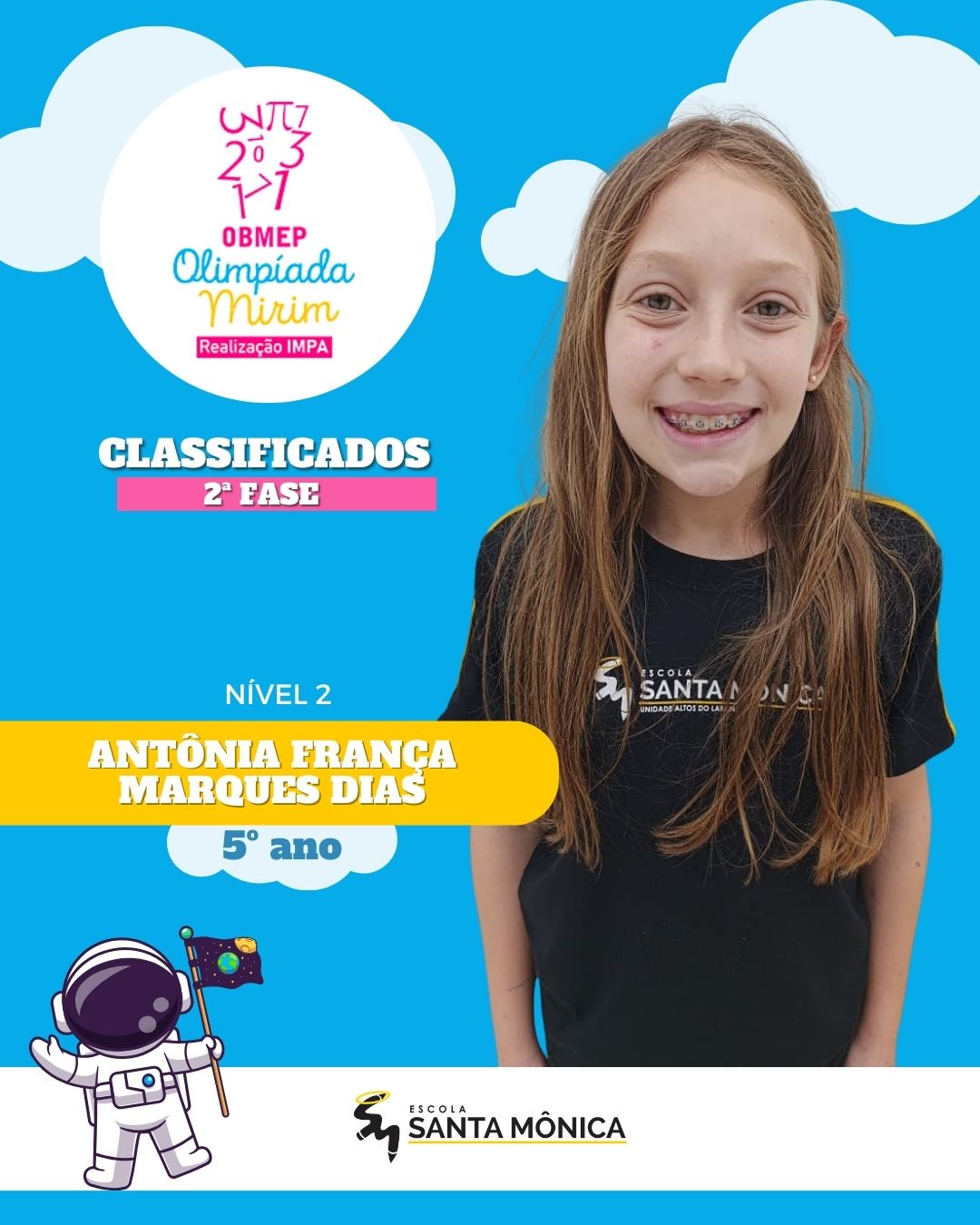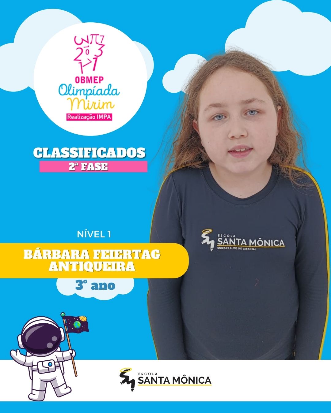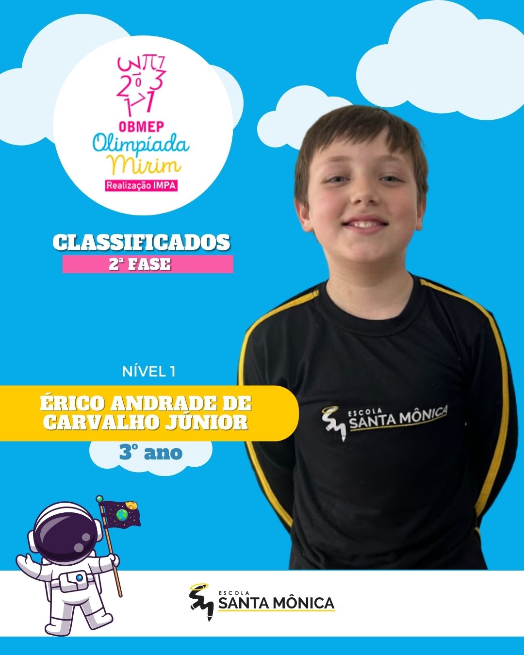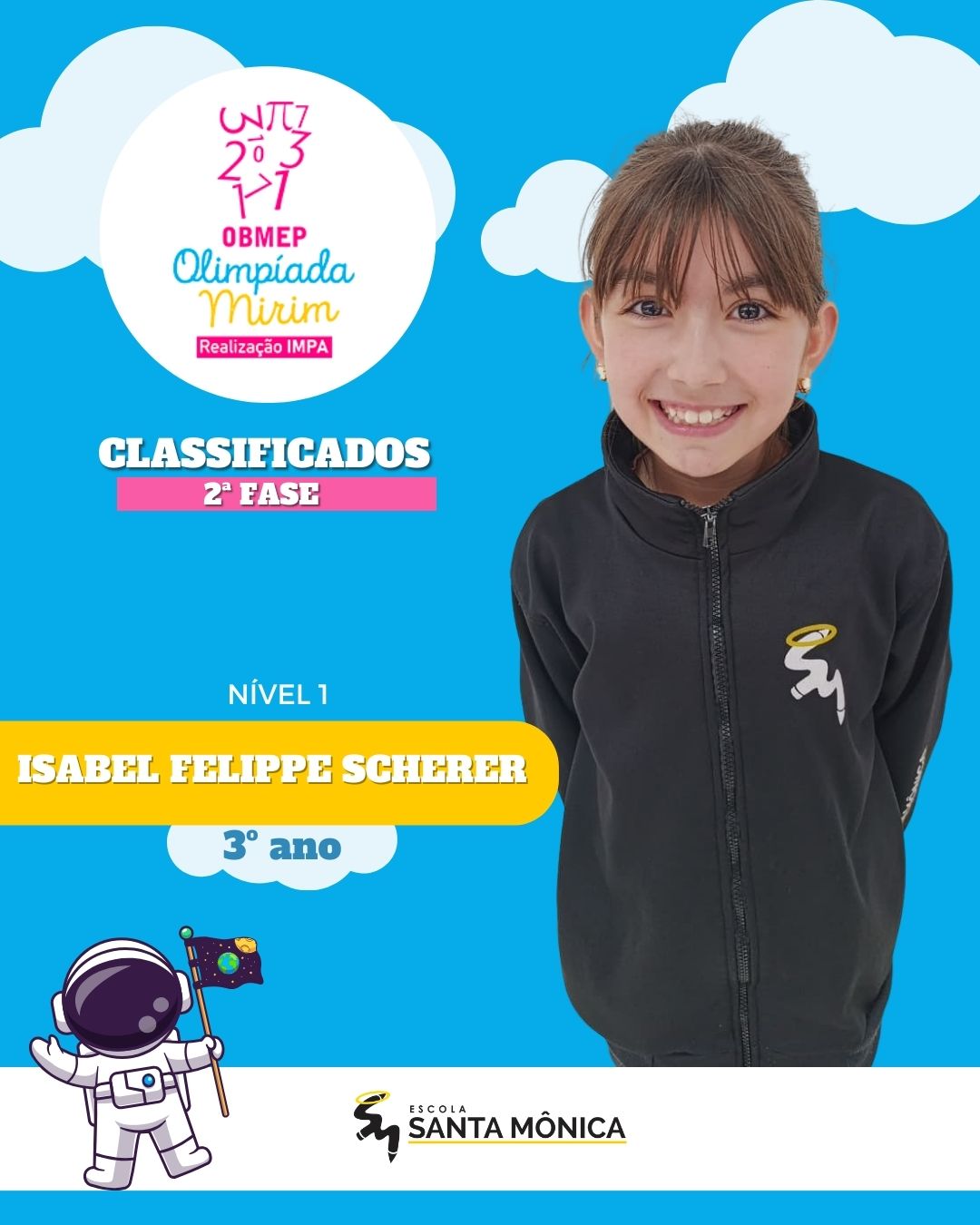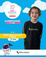 A Escola Santa Mônica teve 103 estudantes do 2º ao 5º ano do Ensino Fundamental classificados para a segunda fase da OBMEP Mirim, a Olimpíada Brasileira de Matemática das Escolas Públicas e Privadas. A primeira fase foi realizada nas próprias instituições de ensino e reuniu milhões de participantes em todo o país.