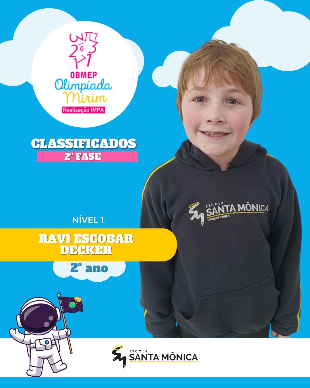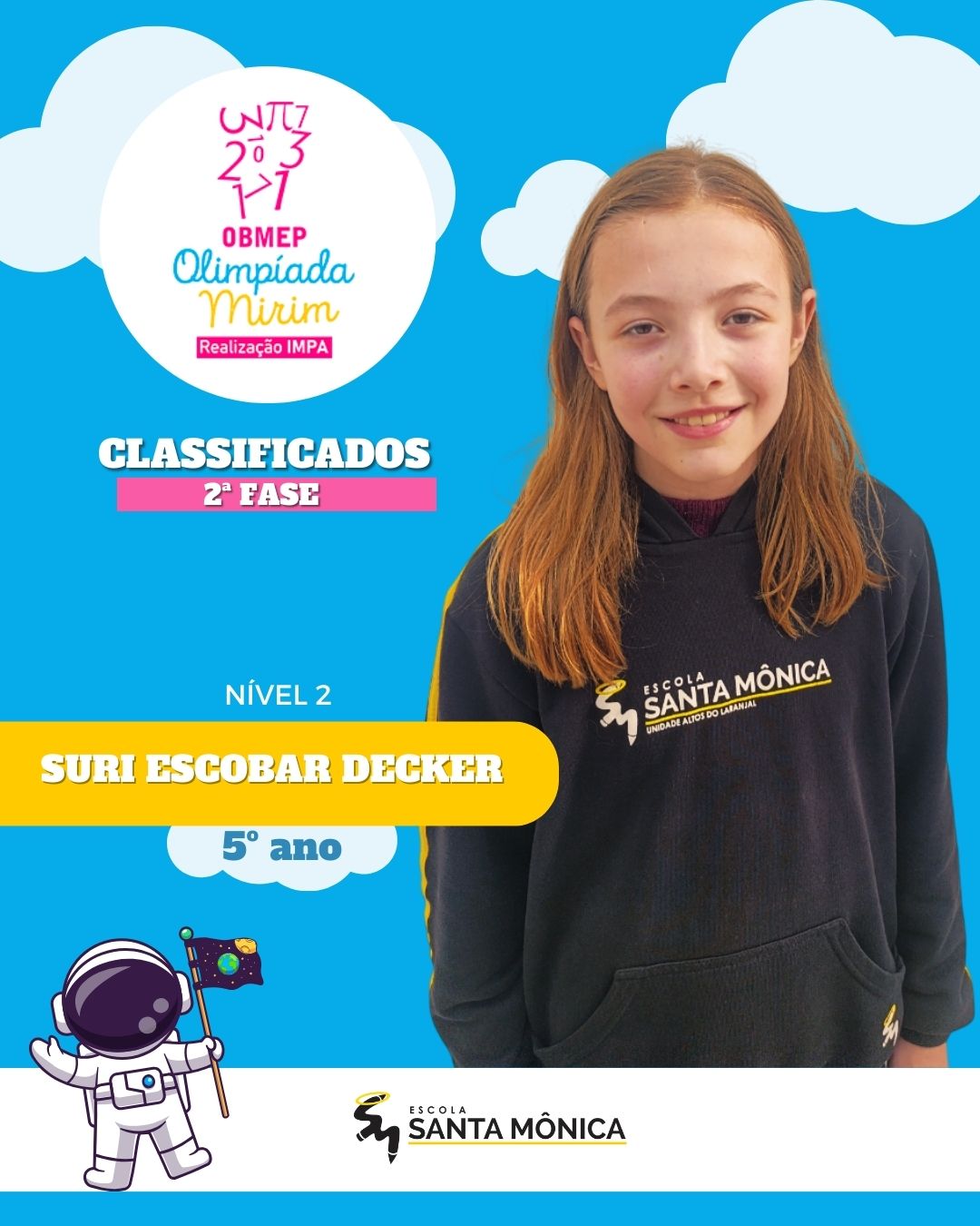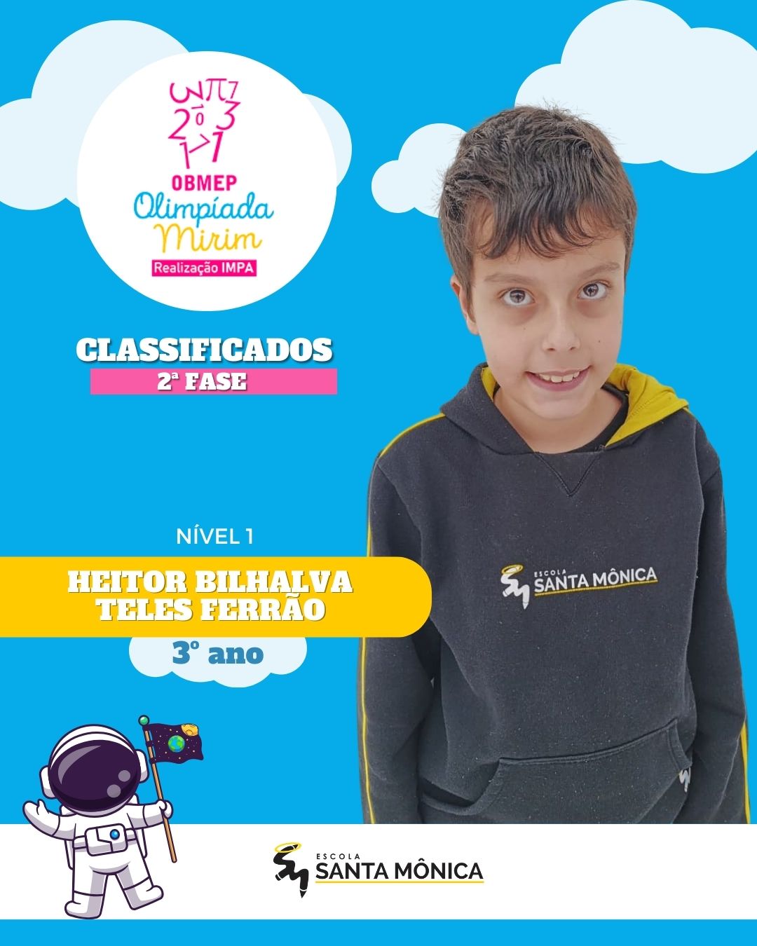 A Escola Santa Mônica teve 103 estudantes do 2º ao 5º ano do Ensino Fundamental classificados para a segunda fase da OBMEP Mirim, a Olimpíada Brasileira de Matemática das Escolas Públicas e Privadas. A primeira fase foi realizada nas próprias instituições de ensino e reuniu milhões de participantes em todo o país.