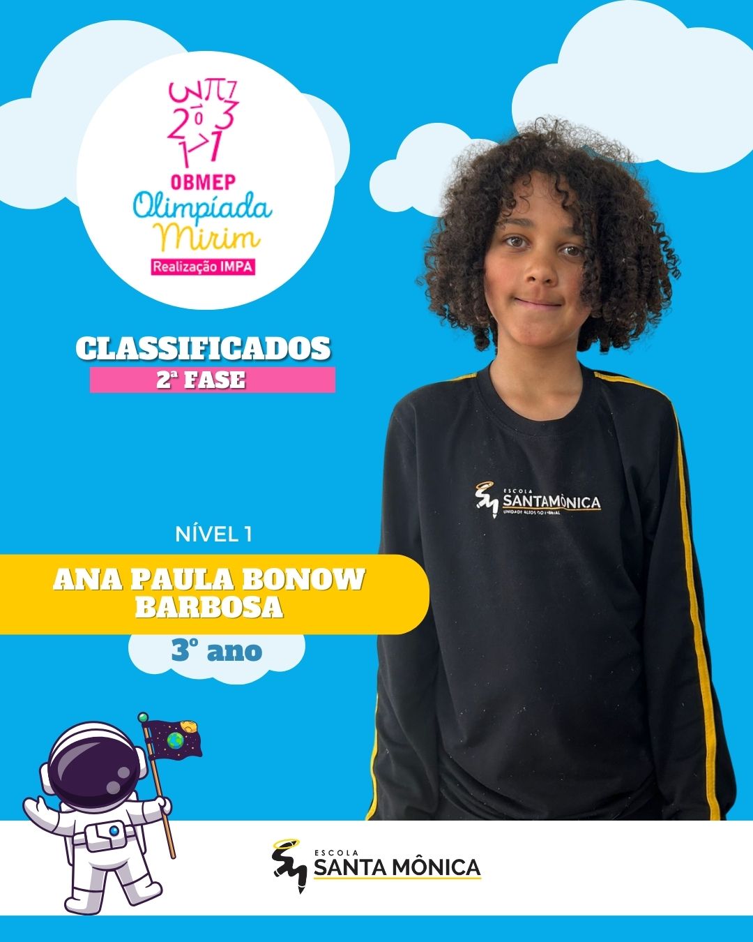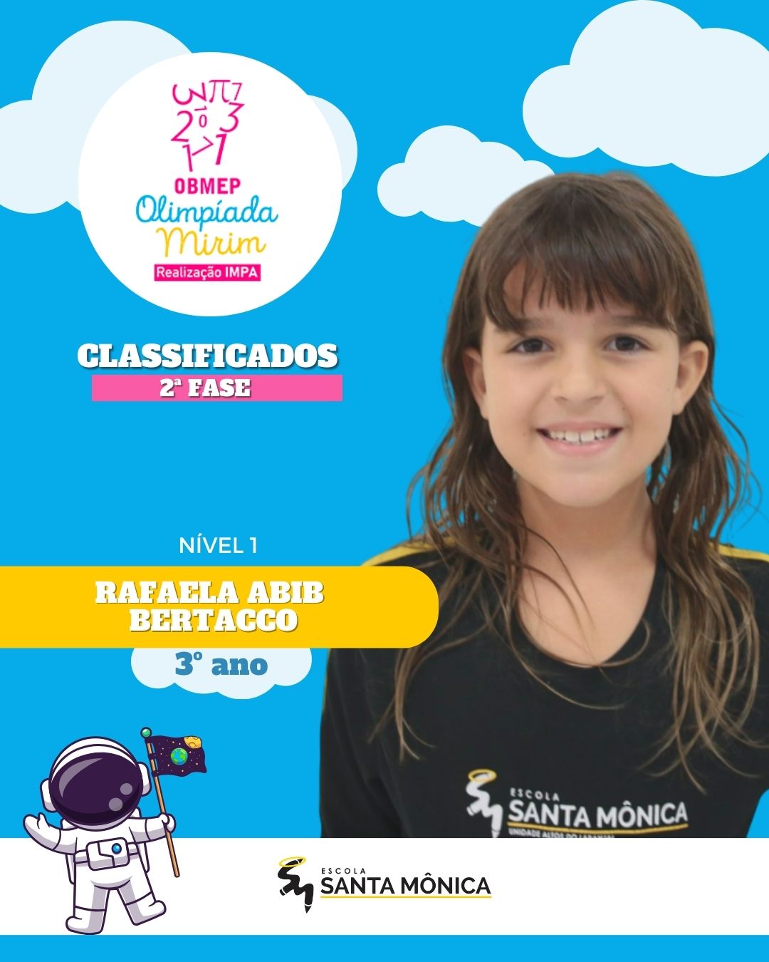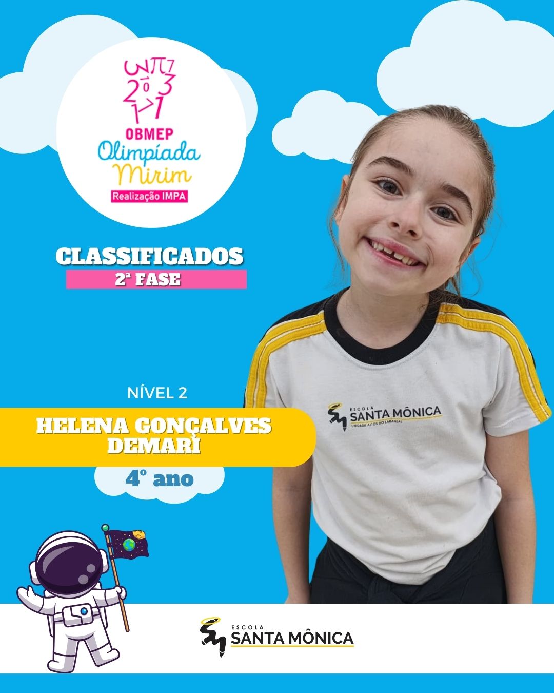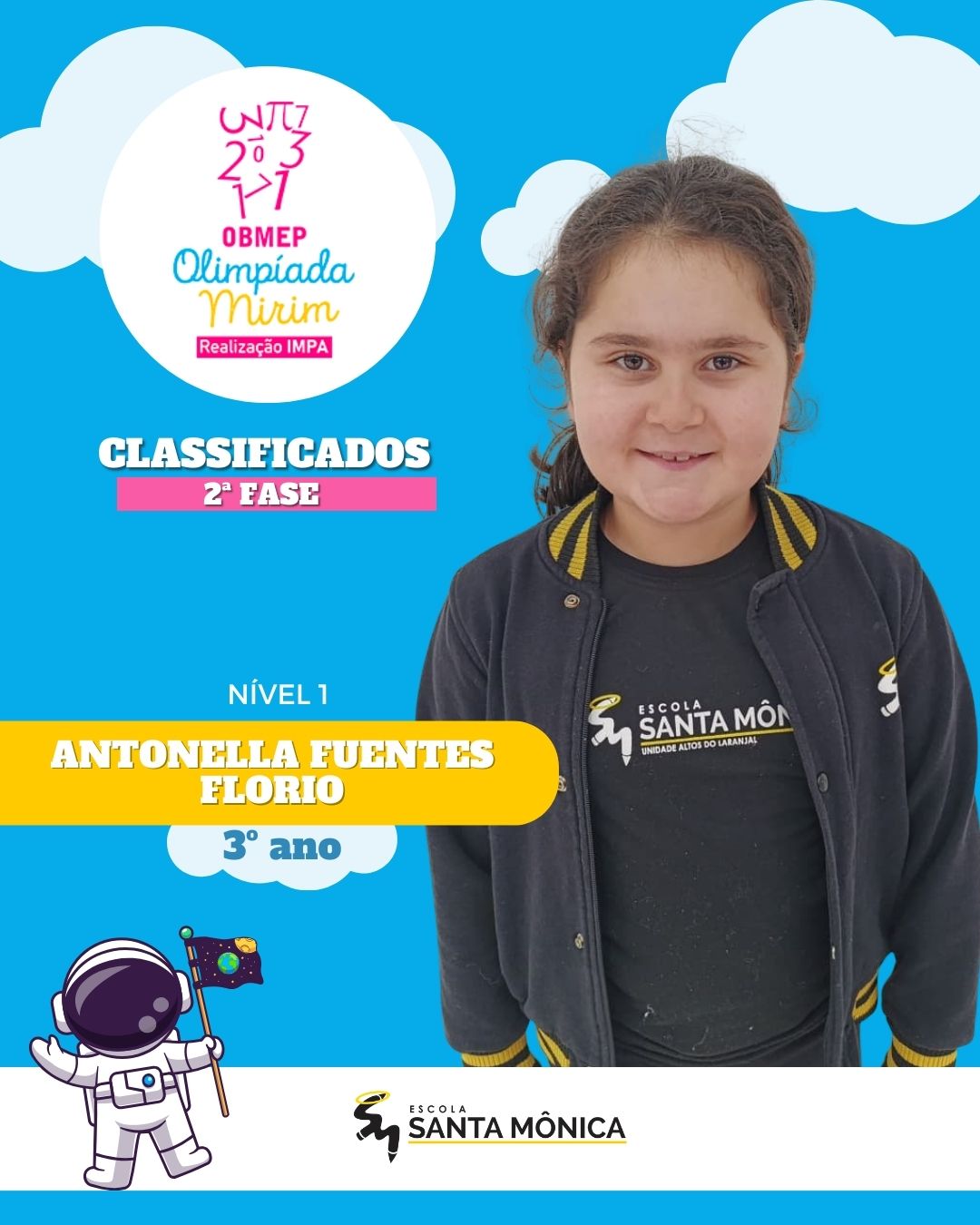 A Escola Santa Mônica teve 103 estudantes do 2º ao 5º ano do Ensino Fundamental classificados para a segunda fase da OBMEP Mirim, a Olimpíada Brasileira de Matemática das Escolas Públicas e Privadas. A primeira fase foi realizada nas próprias instituições de ensino e reuniu milhões de participantes em todo o país.