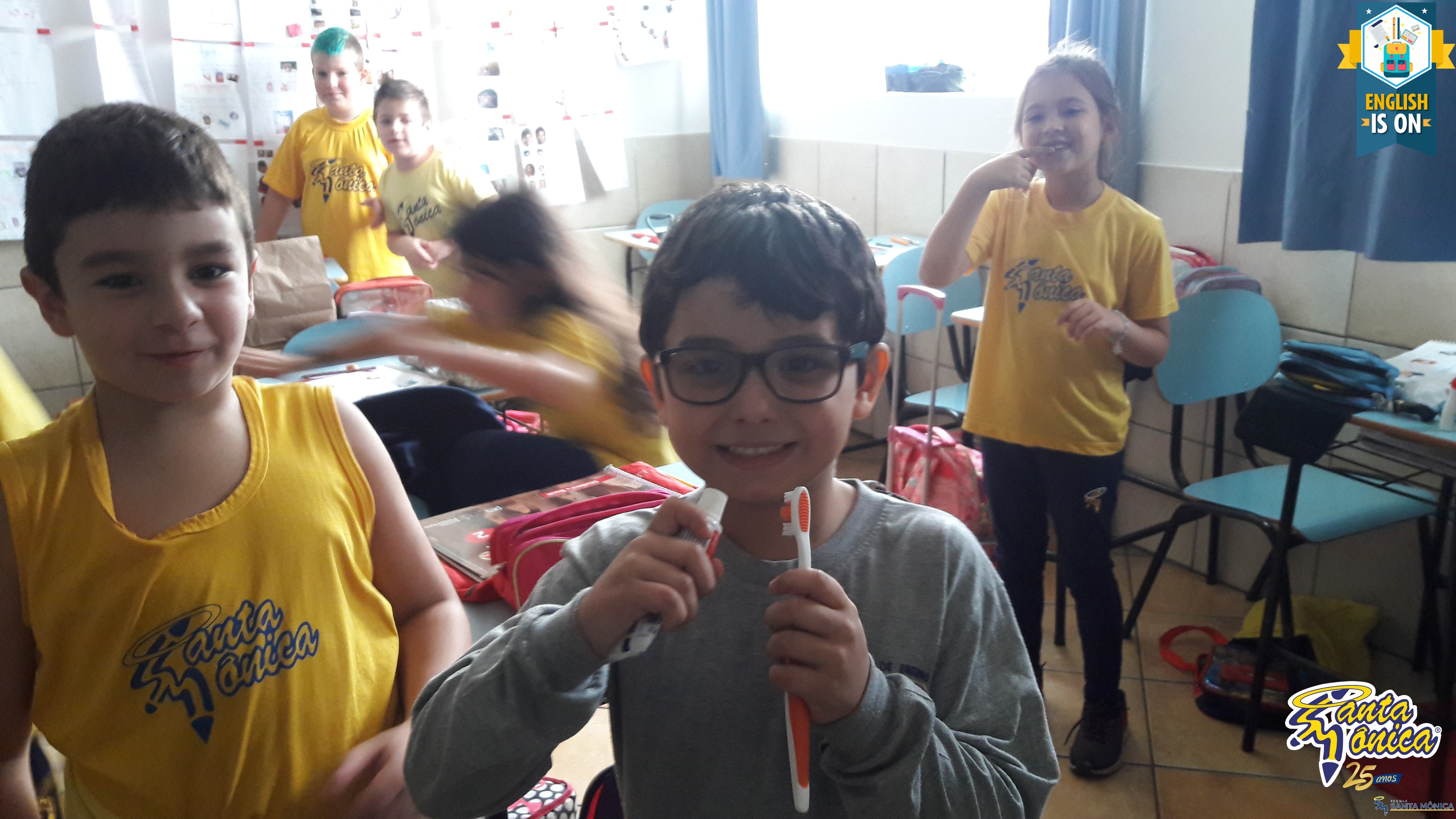Os alunos do 2º ano do Ensino Fundamental estão trabalhando, junto com as teachers Raquel e Teresa, a temática "healthy habits" (hábitos saudáveis). Nessa semana, através de uma canção, o foco foi a escovação dos dentes. “Let’s brush your teeth”!
