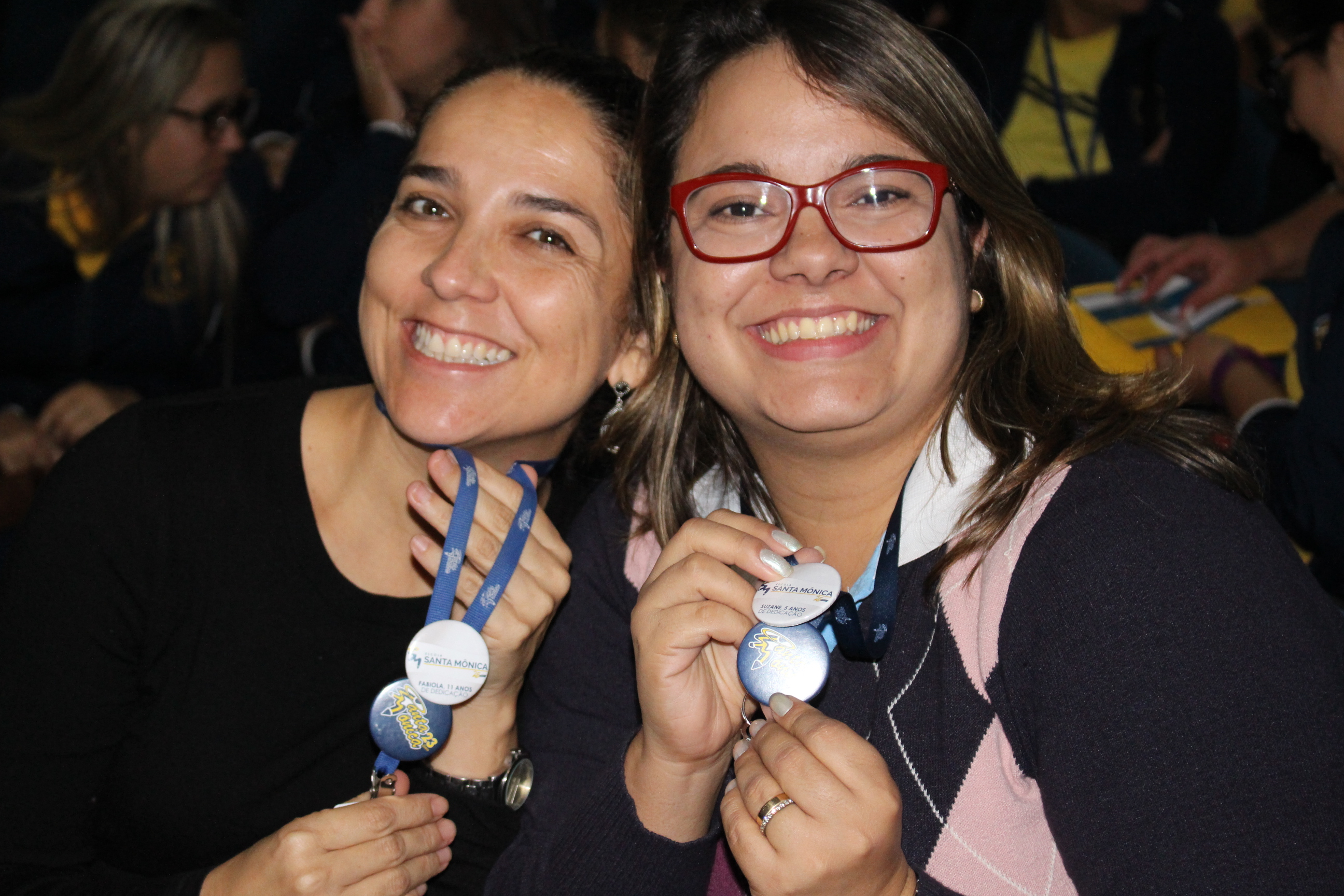 A Escola Santa Mônica realizou uma cerimônia para apresentar o calendário oficial das atividades comemorativas aos 25 anos. Os professores e colaboradores da escola foram os convidados de honra, recebendo bottons personalizados. O auge da noite foi a apresentação, em primeiríssima mão, do novo site e do redesign da marca institucional Santa Mônica. Ambos serão apresentados para a comunidade no dia 18 de maio. Foi um momento de muitas alegrias e emoções. O evento marcou o início das celebrações do mês de aniversário.