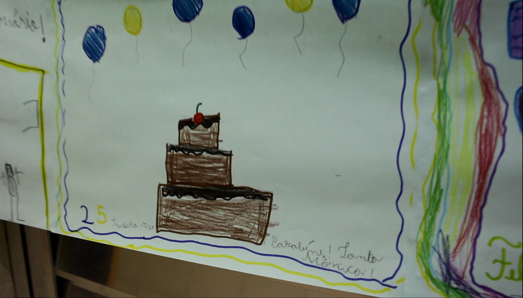 Os alunos do 2º ano do Ensino Fundamental confeccionaram um cartão a metro para a Escola Santa Mônica. A atividade faz parte das comemorações alusivas aos 25 anos da escola. Ele está exposto nos corredores da Escola Santa Mônica