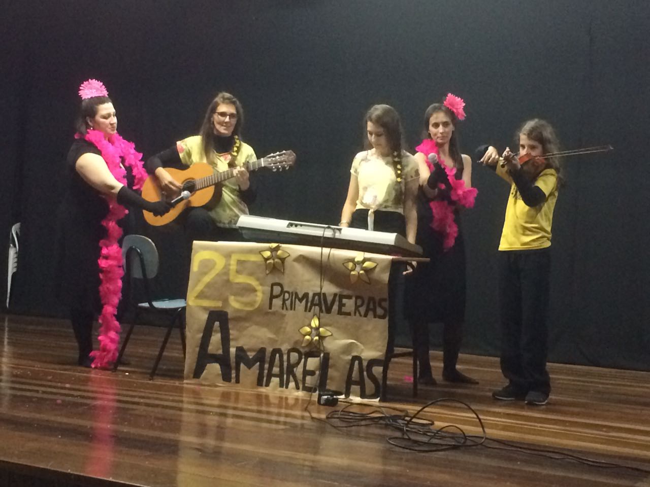 Para comemorar os 25 anos da nossa escola, os alunos participaram de um show de talentos e se divertiram muito expressando seus dons artísticos. Teve muita música, dança, poesia,números de circo e bandas e família. Foi incrível!