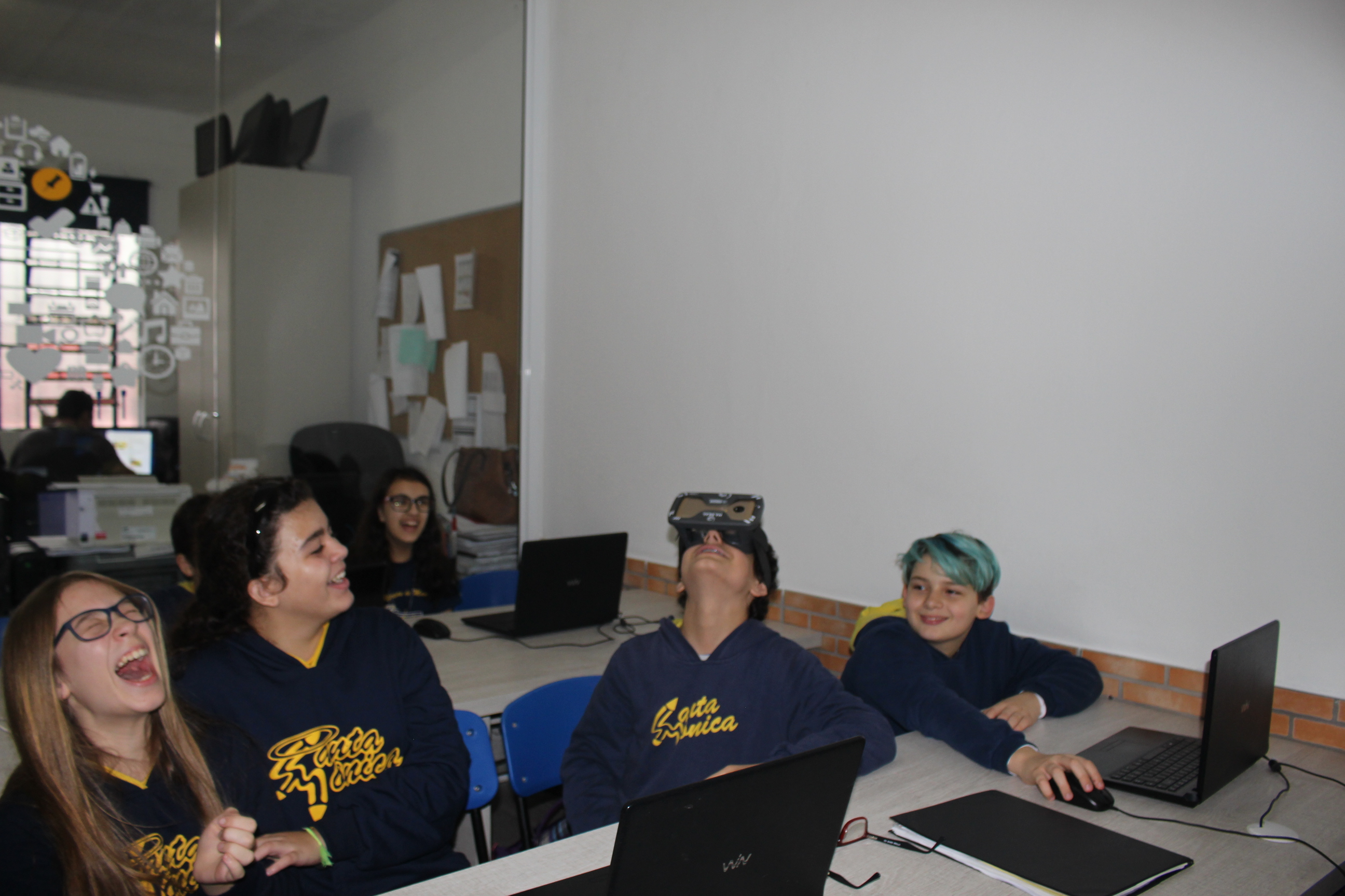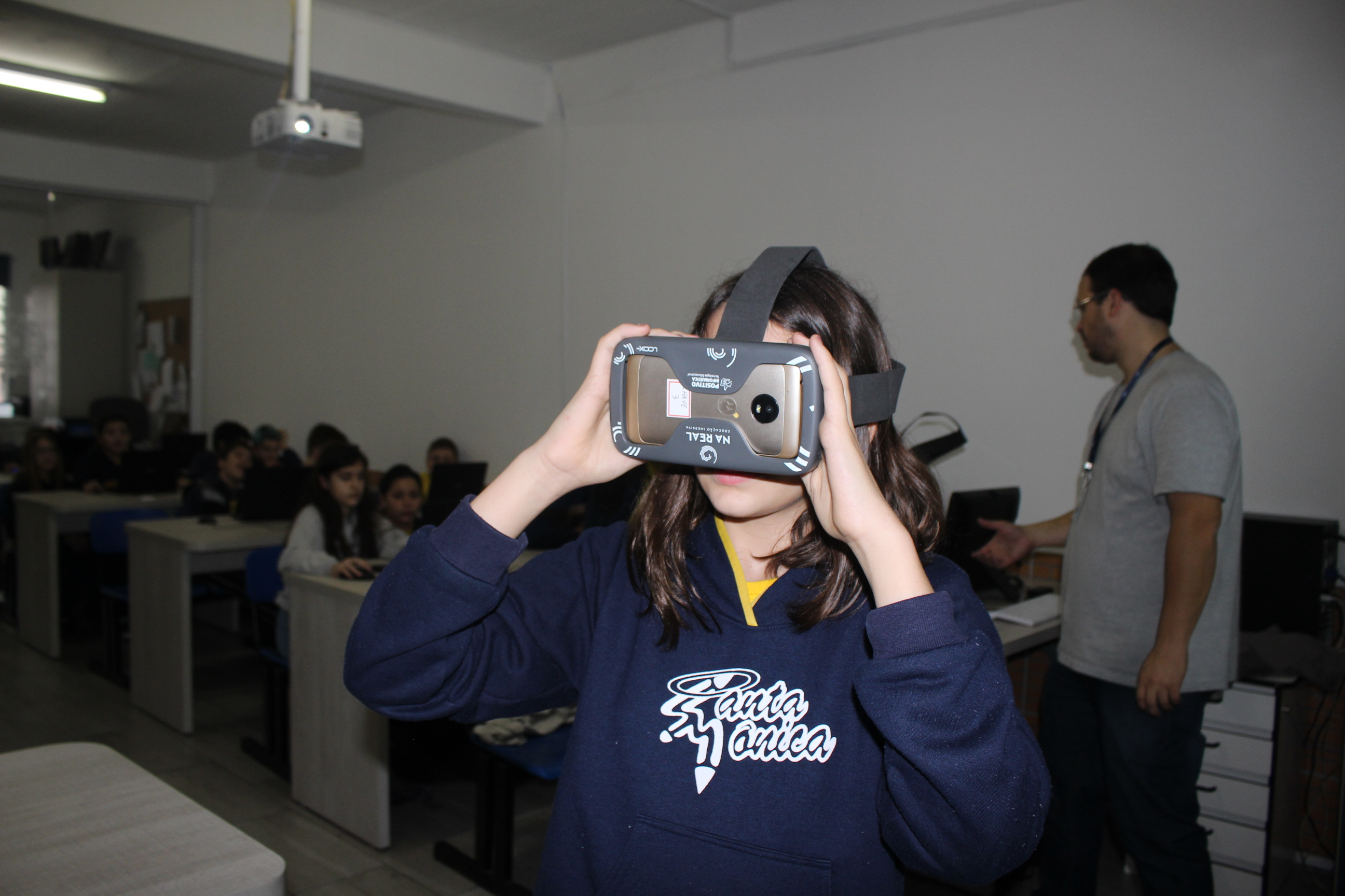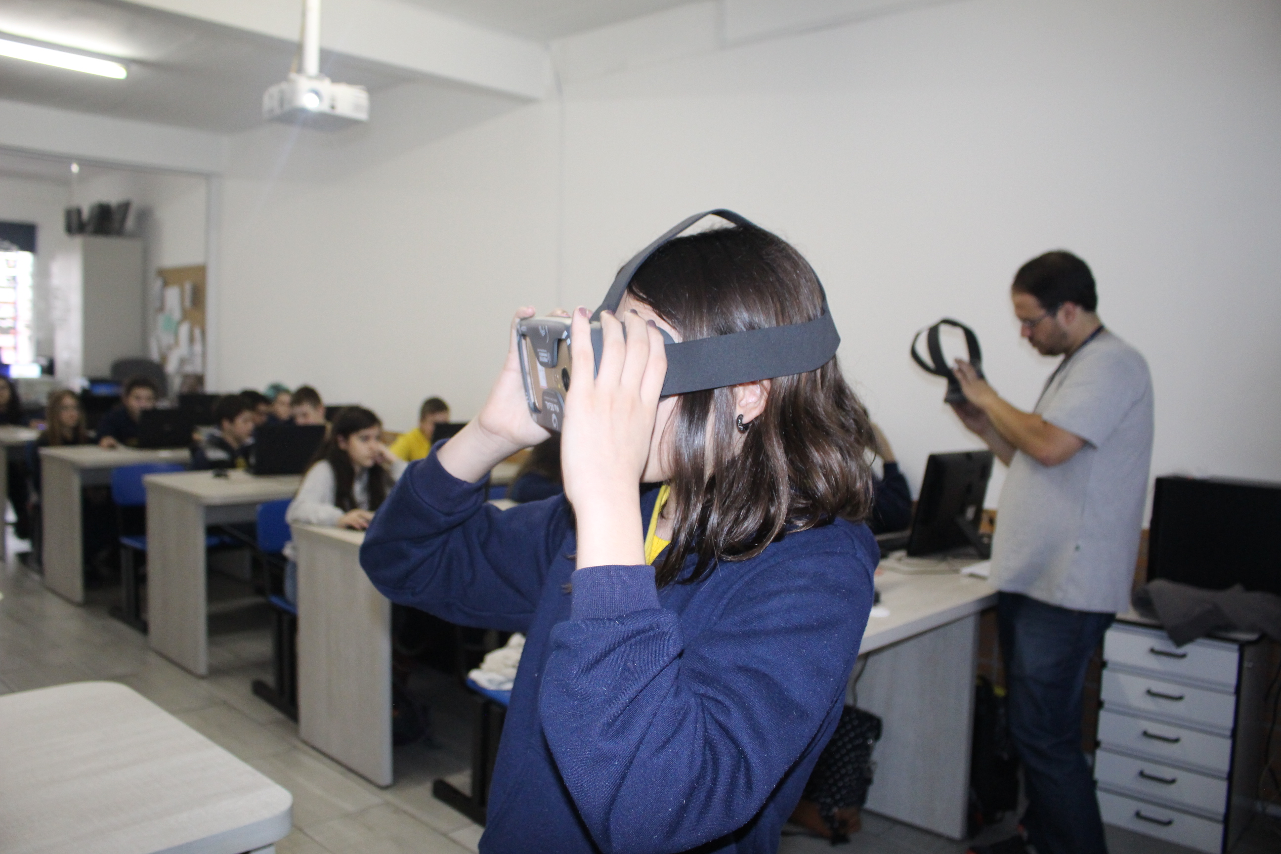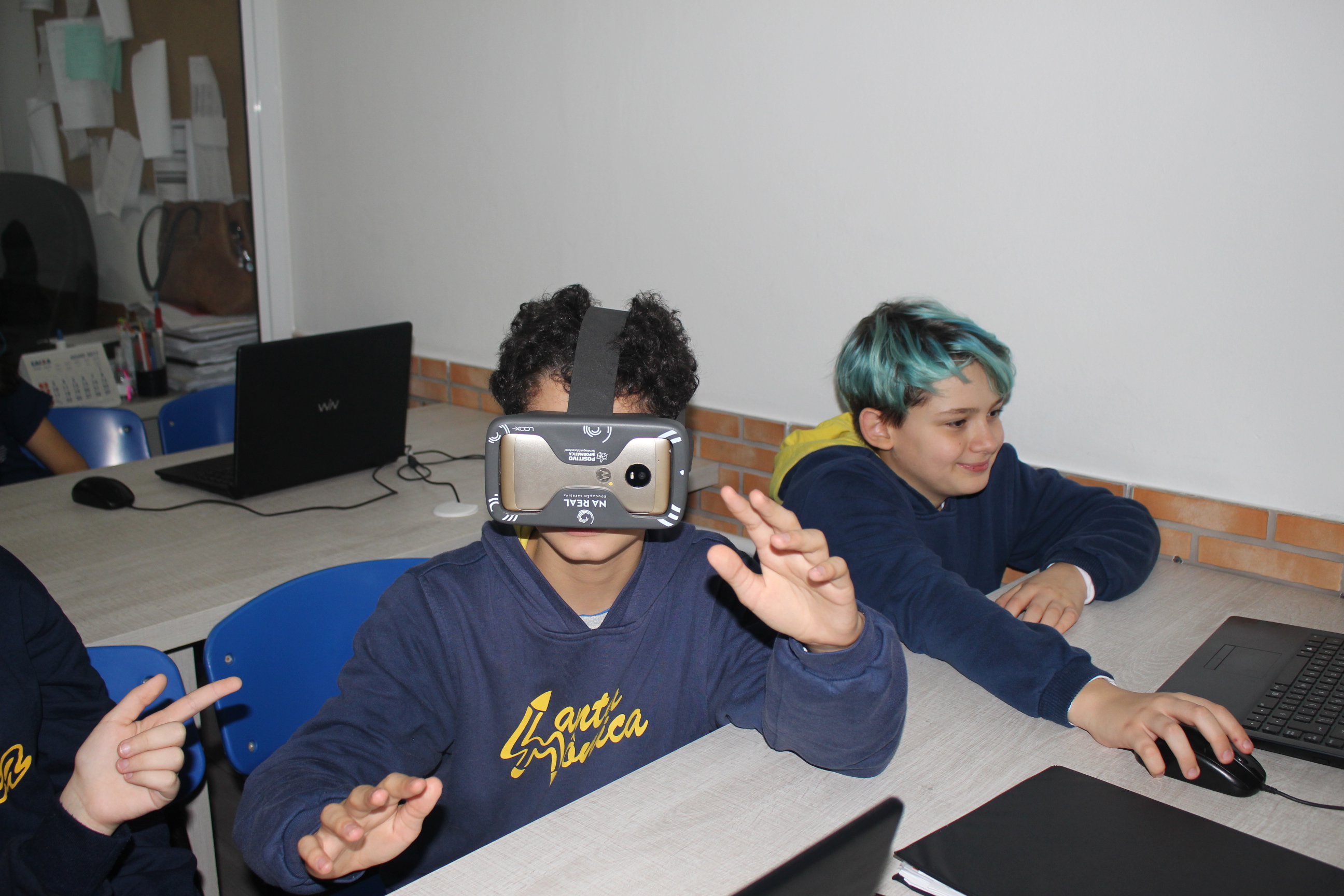 A turma do sexto ano teve aula de educação imersiva no laboratório de informática, utilizando o óculos de realidade virtual (VR 360º). Com a ajuda da tecnologia, os alunos estavam imersos no conteúdo estudado, podendo visualizar e sentir-se dentro da cena proposta em aula. Educação e tecnologia caminhando juntas!