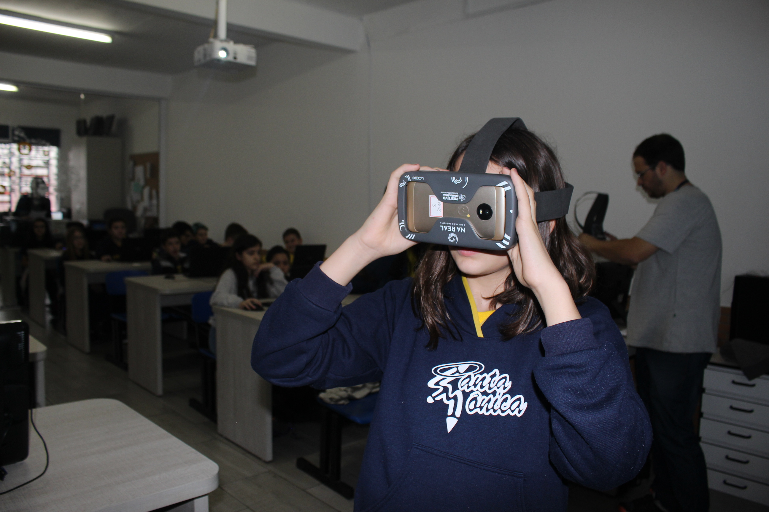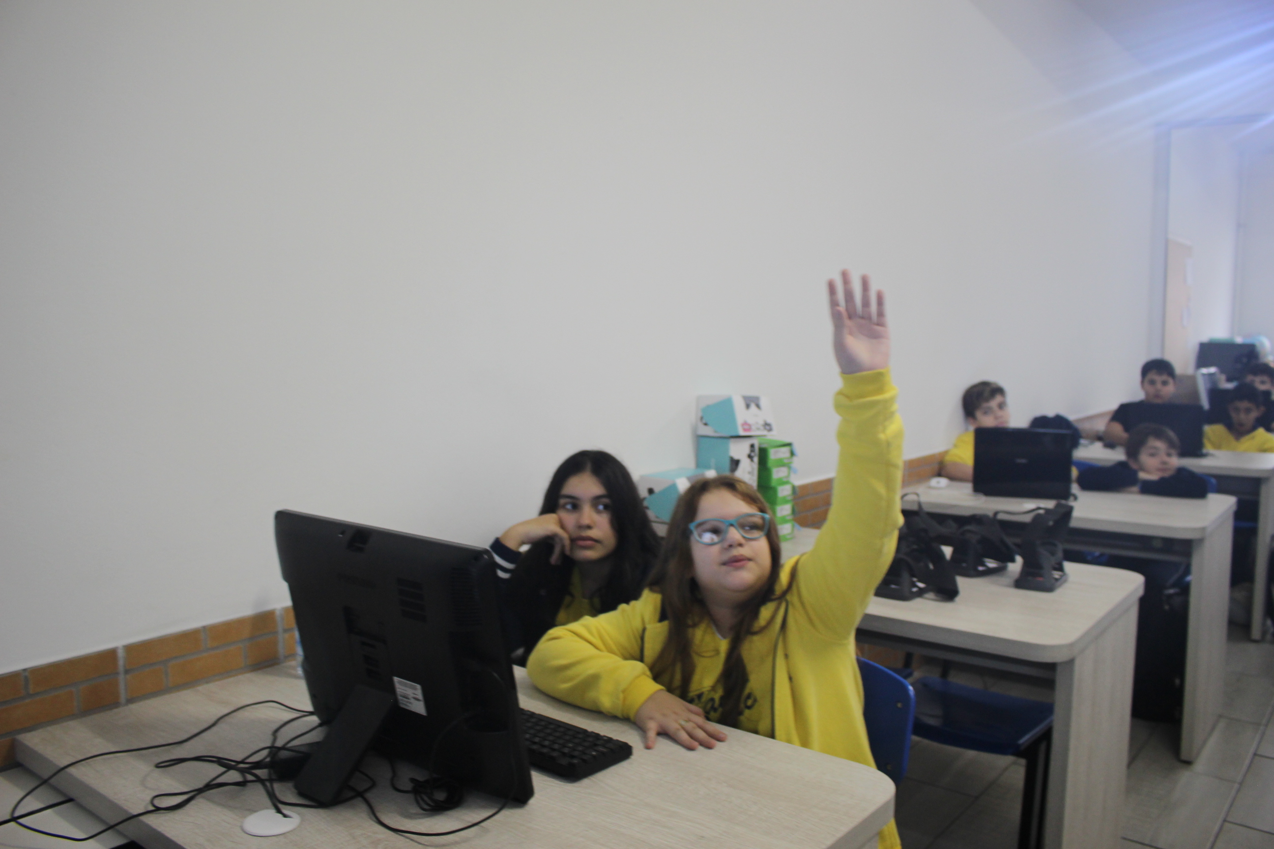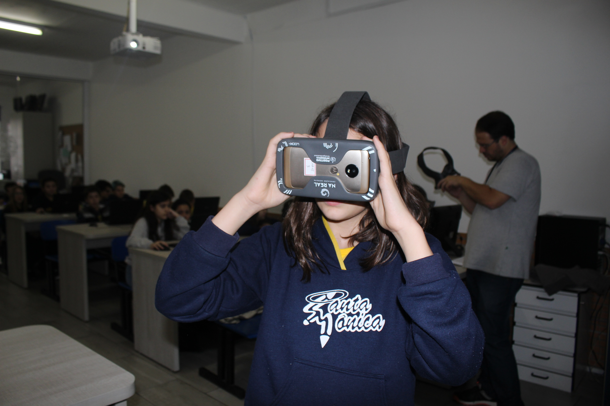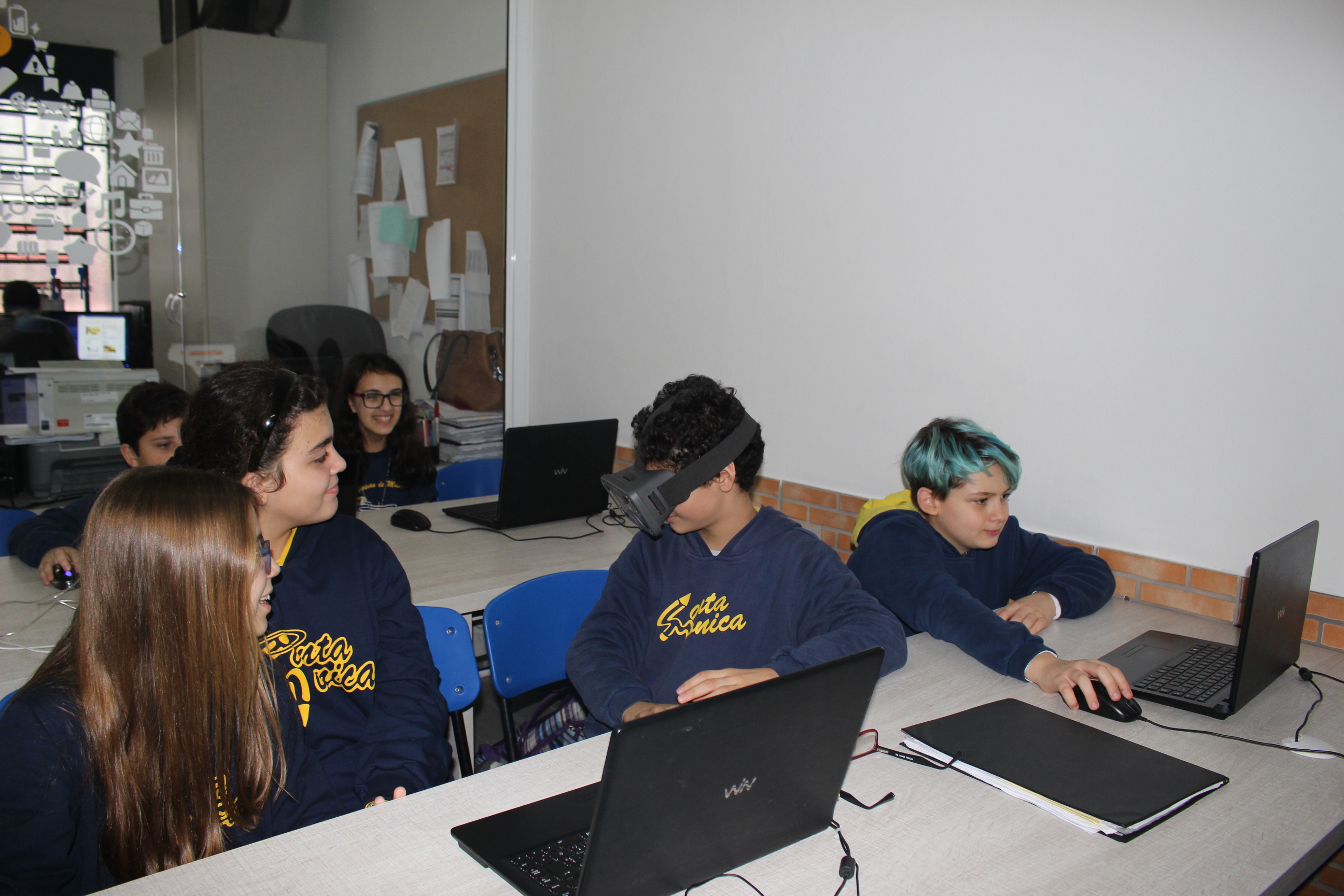 A turma do sexto ano teve aula de educação imersiva no laboratório de informática, utilizando o óculos de realidade virtual (VR 360º). Com a ajuda da tecnologia, os alunos estavam imersos no conteúdo estudado, podendo visualizar e sentir-se dentro da cena proposta em aula. Educação e tecnologia caminhando juntas!
