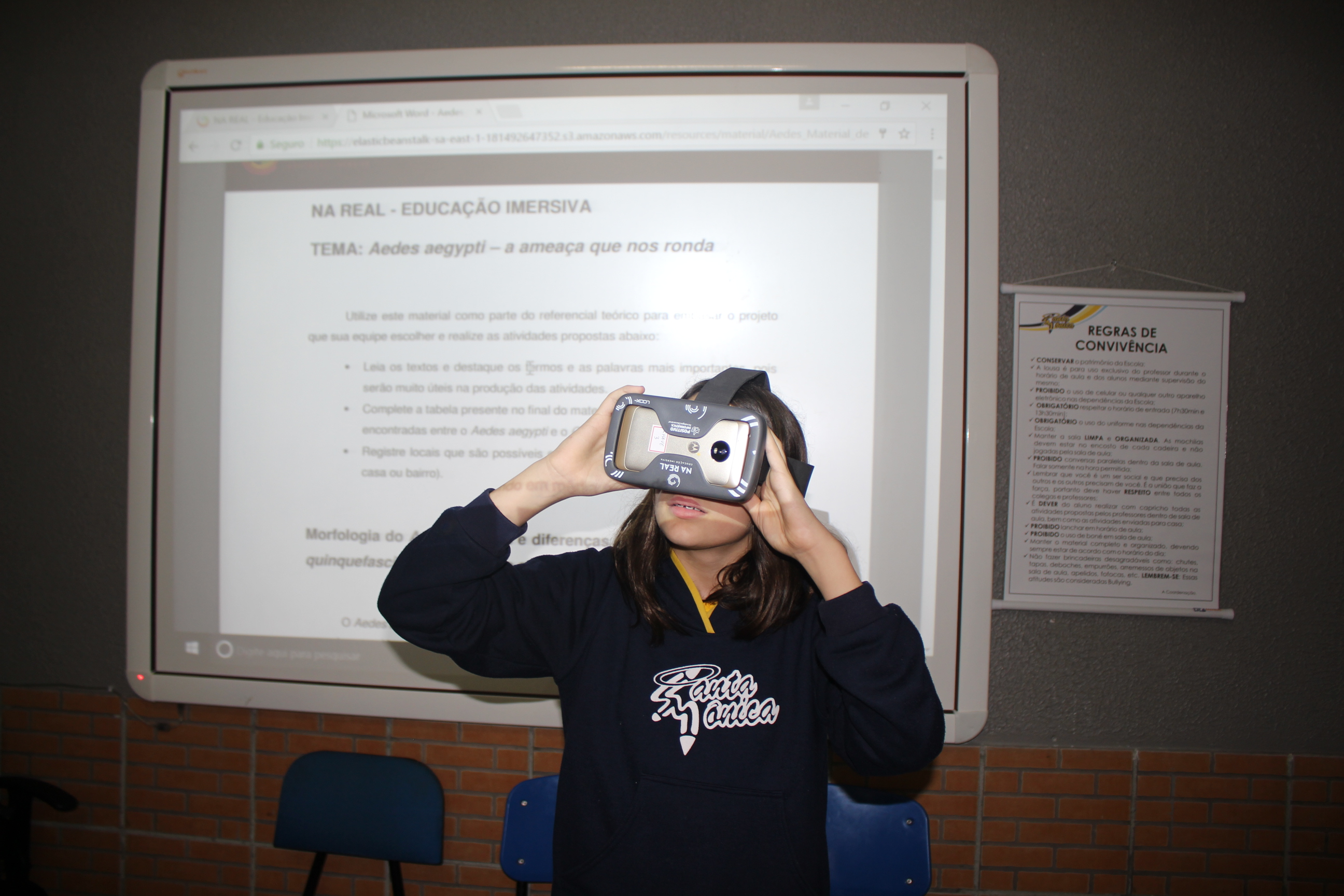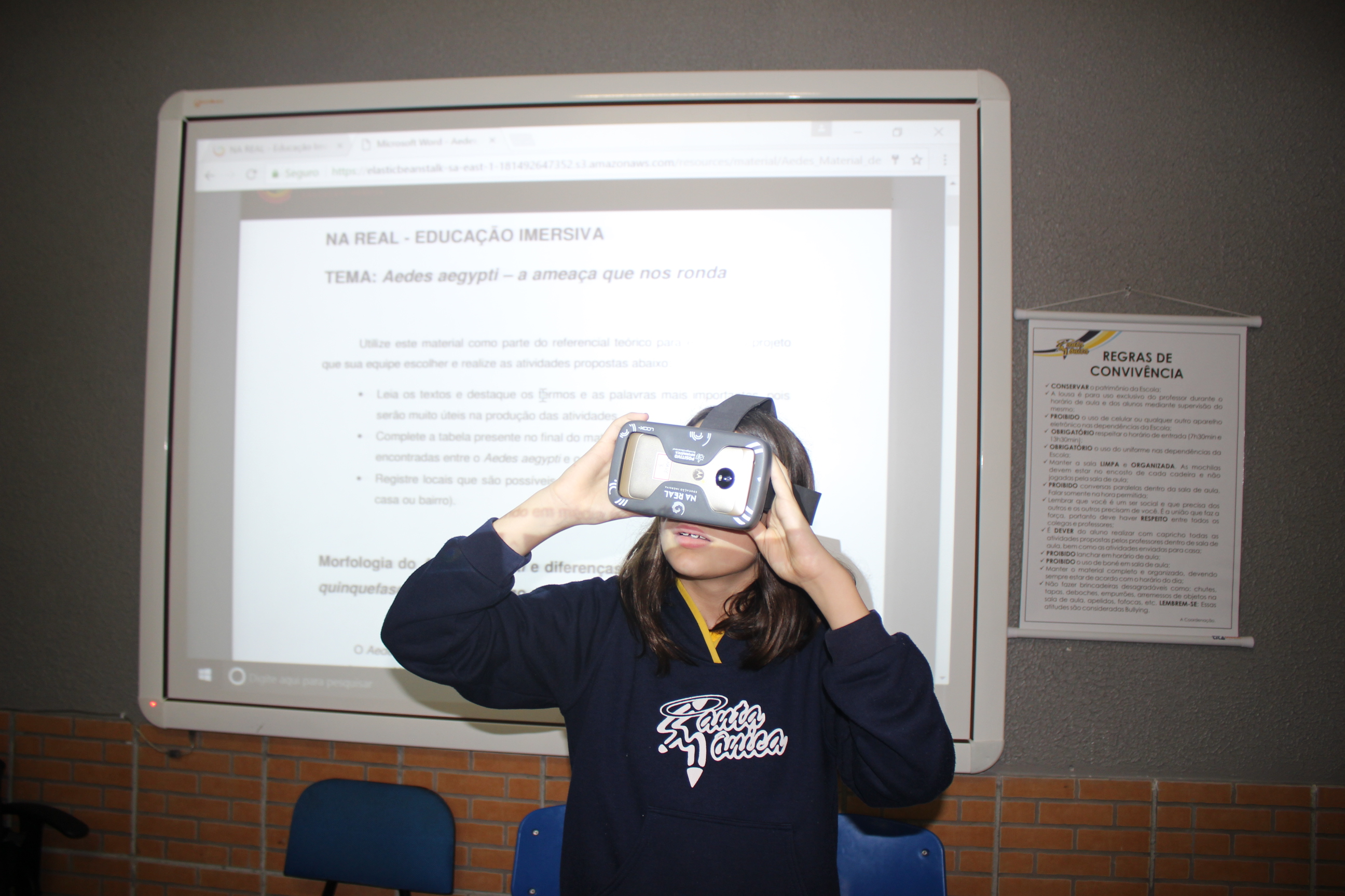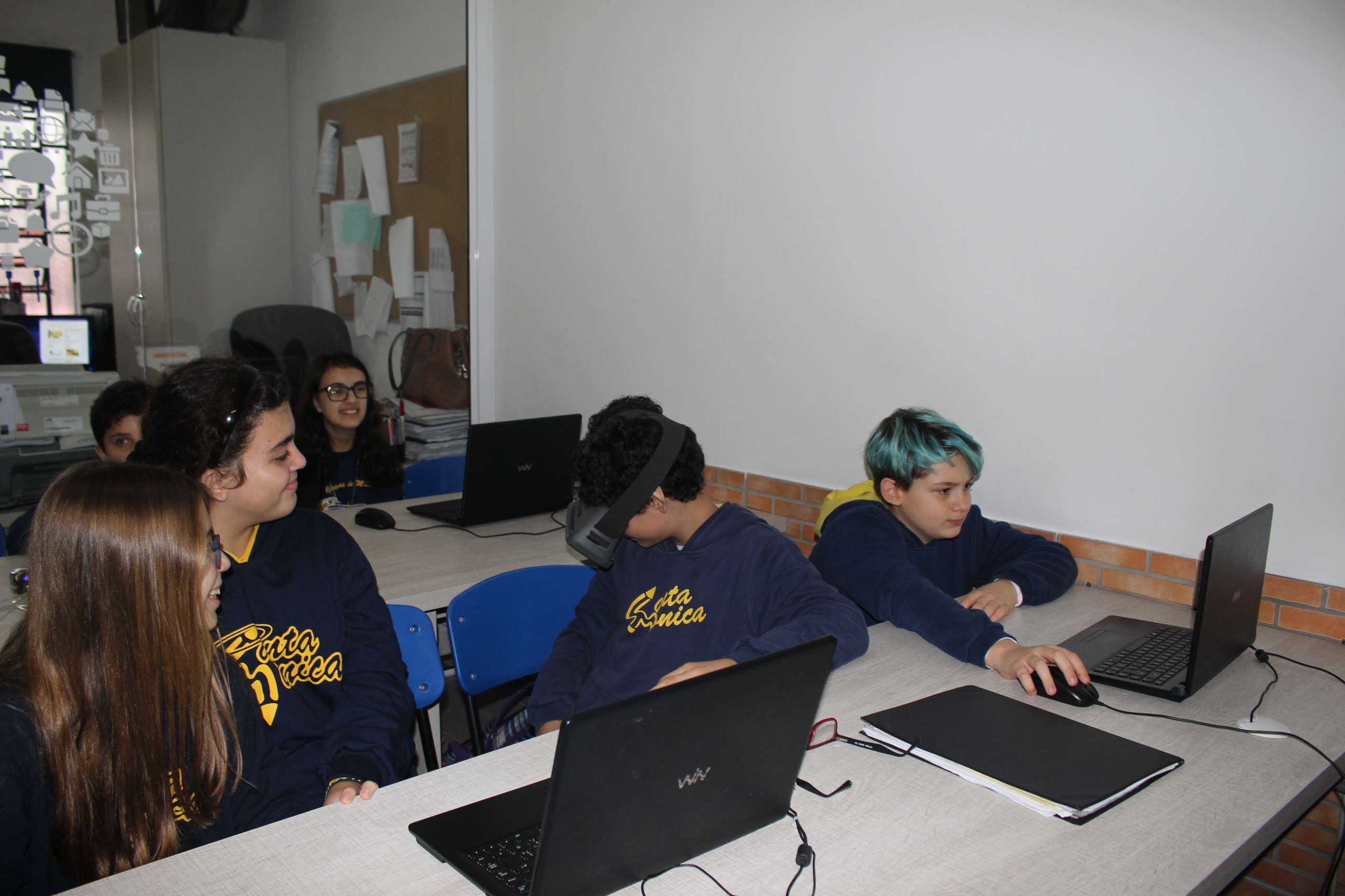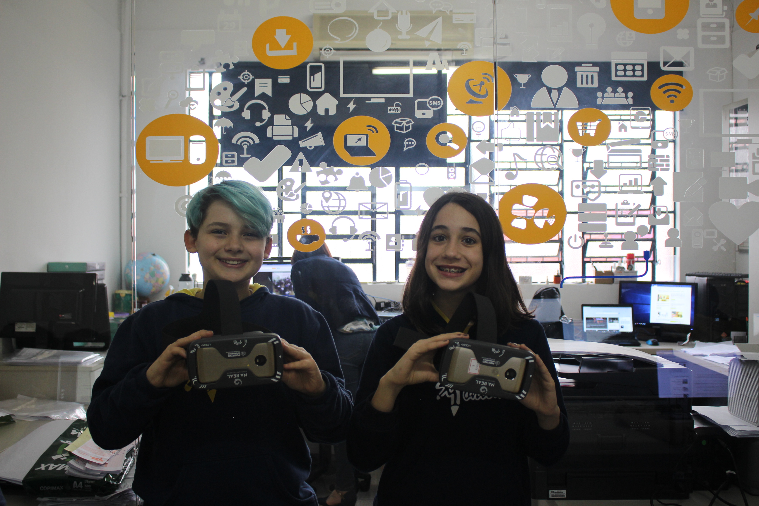 A turma do sexto ano teve aula de educação imersiva no laboratório de informática, utilizando o óculos de realidade virtual (VR 360º). Com a ajuda da tecnologia, os alunos estavam imersos no conteúdo estudado, podendo visualizar e sentir-se dentro da cena proposta em aula. Educação e tecnologia caminhando juntas!