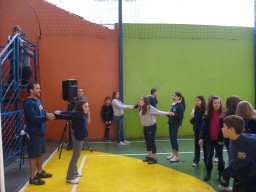 Realizado paralelamente em várias partes do mundo na última quarta-feira de maio, o Dia do Desafio propõe que as pessoas interrompam suas atividades rotineiras e pratiquem, por pelo menos 15 minutos consecutivos, qualquer tipo de atividade física. A ação acontece em forma de competição entre duas cidades. Pelotas está concorrendo com a cidade mexicana Delegación Venustiano Carranza. Os professores de educação física da escola, Roger e Tiago, convidaram os alunos para realizar durante o recreio uma série de alongamentos em comemoração ao dia. Os alunos das 5ª, 6ª e 7ª séries foram os que mais participaram. Agradecemos também os alunos da 71, 73, 81 e 1M2 que participaram da reportagem sobre o Dia do Desafio transmitida pela TV Nativa. Nossos alunos foram convidados a participar de uma série de exercícios que foi ao ar hoje no jornal do meio dia.