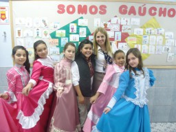 Apresentação da Invernada Mirim do DTG Tertúlia, declamações, a história da nossa bandeira, músicas, vídeos, lendas gaúchas e a história da nossa bebida típica - O Chimarrão foram apresentadas ao nossos alunos. Ah! e também não faltou o gostoso café campeiro. Confira nas fotos.