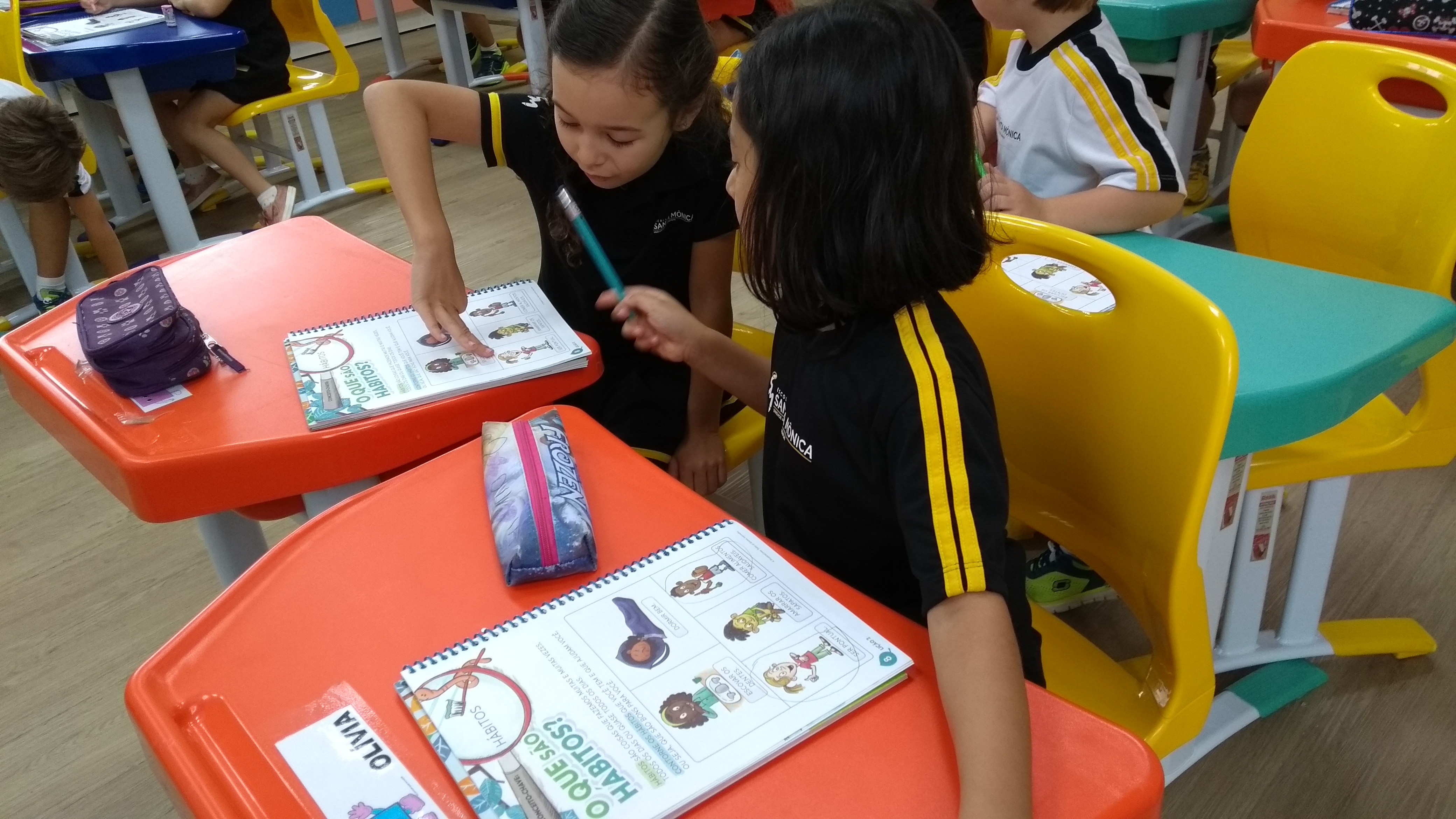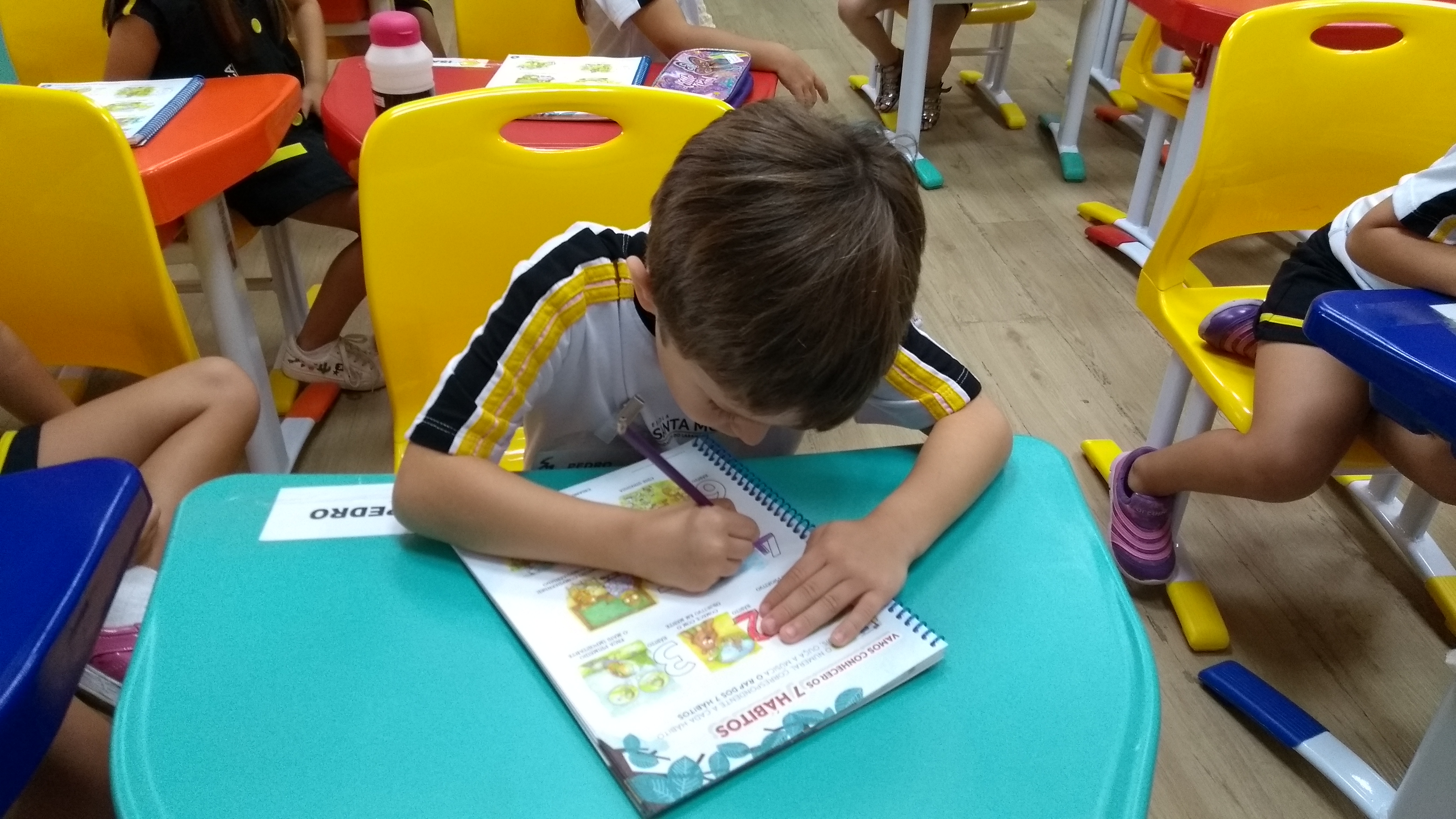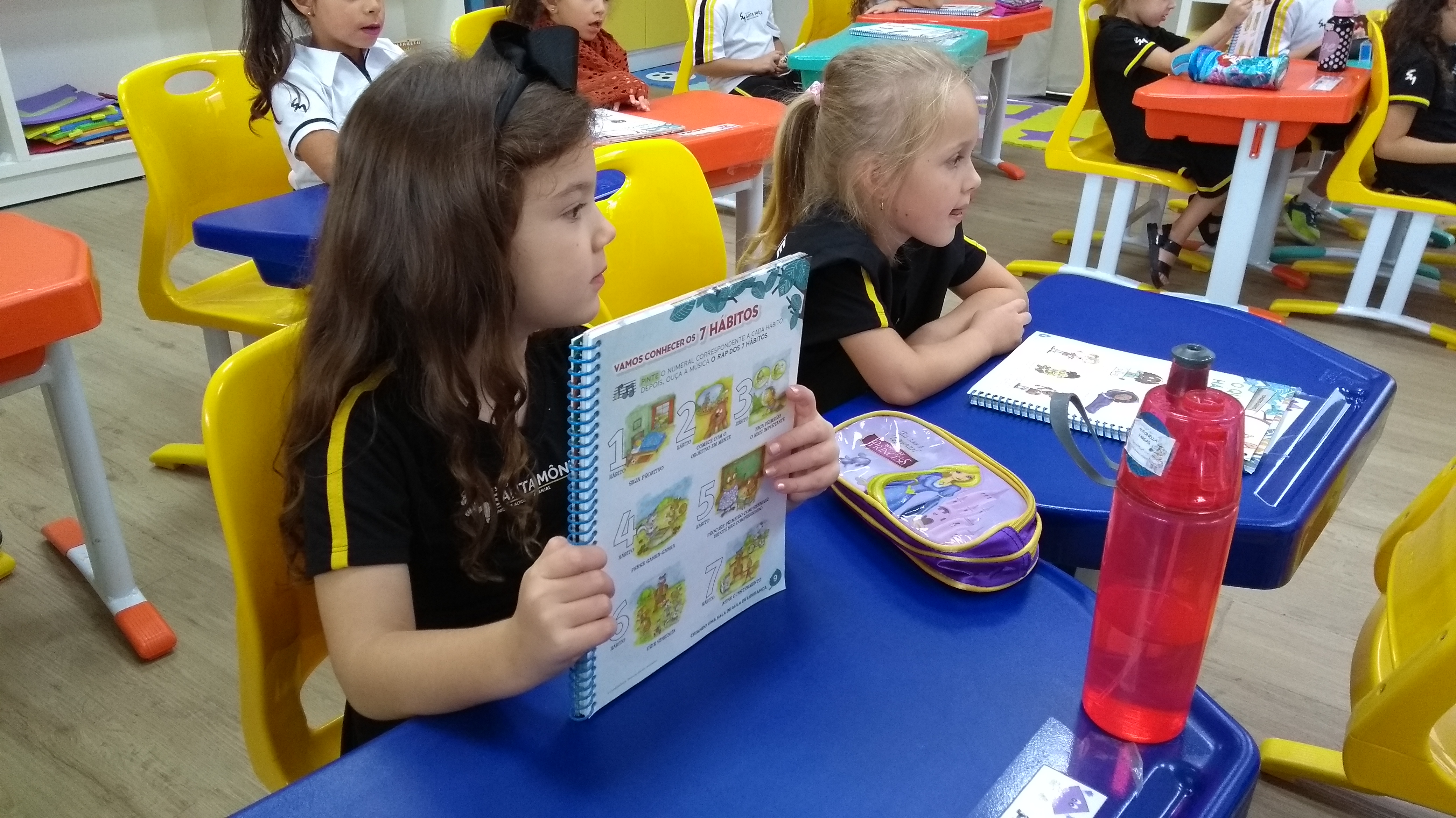 As turmas de Jardim III já começaram a trabalhar com o projeto O Líder em Mim. Para iniciar, eles analisaram a Árvore dos 7 hábitos e relacionaram as práticas de liderança com acontecimentos de seu dia a dia. Com os exemplos, eles aprenderam a ser proativos, começar sempre com um objetivo em mente, pensar ganha-ganha, compreender primeiro e depois ser compreendido e criar sinergia.
