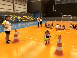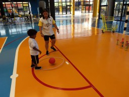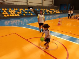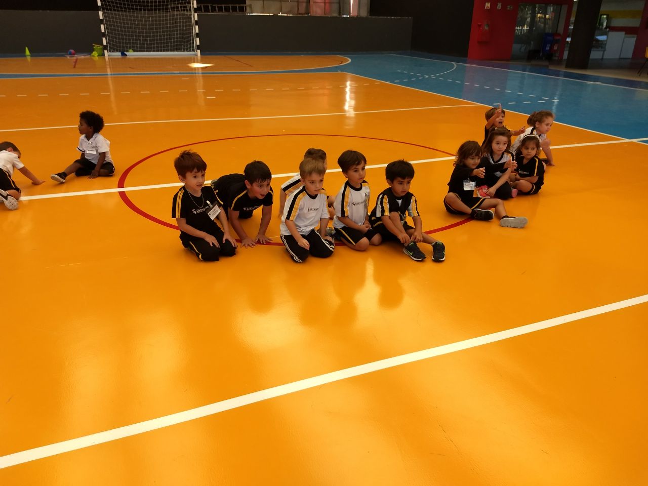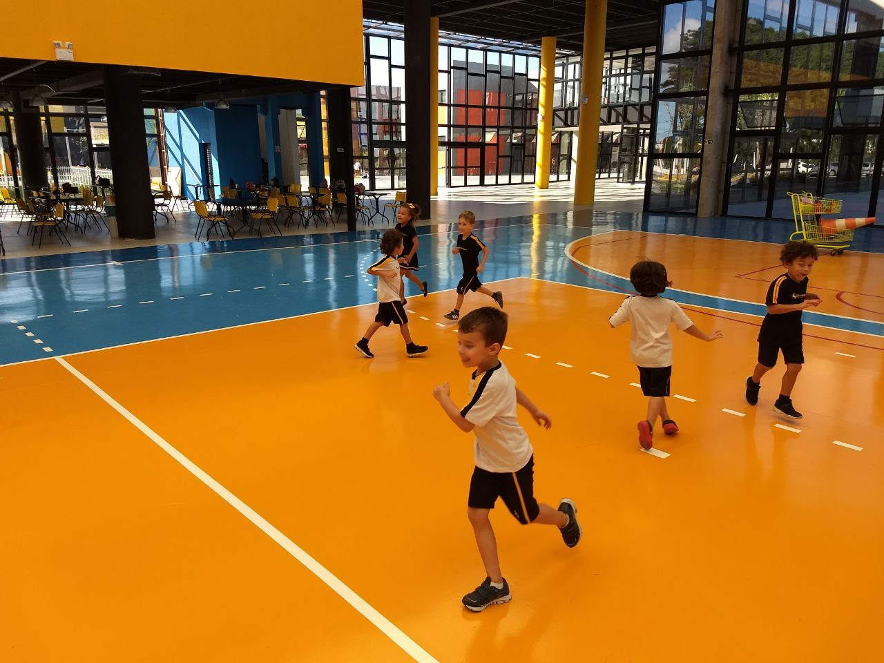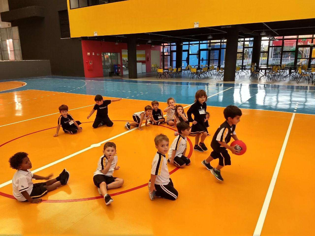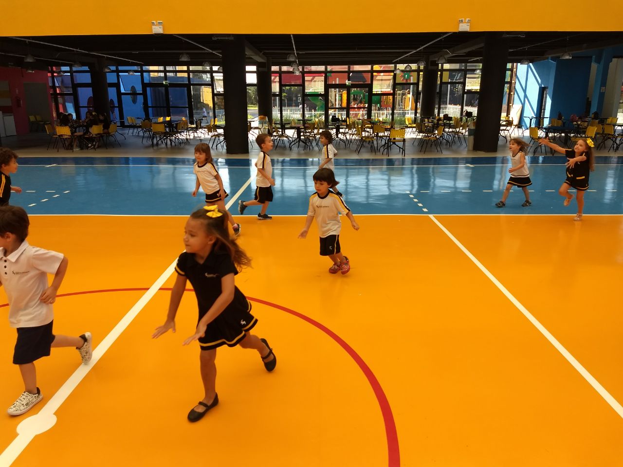 A professora Luciana, de Educação Física, preparou diversas atividades lúdicas para a aula com os pequenos de Jardim II. Além de praticar exercícios, eles trabalharam a coordenação motora e aprenderam que esporte também pode ser uma atividade de lazer.