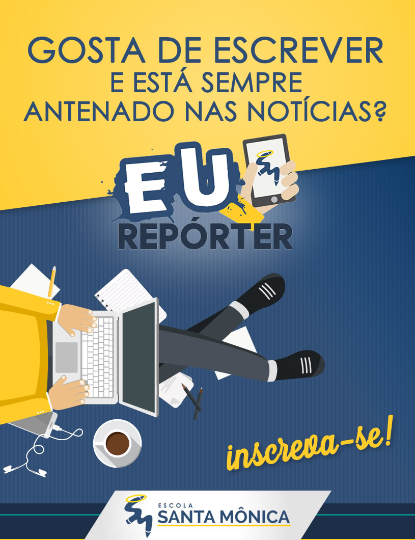 Você gosta de escrever e está sempre antenado nas notícias? Então vai se surpreender com uma nova oportunidade! O setor de comunicação SM, em conjunto com os professores Liliane Souza, Rafael Arrieira e Suzane Ribeiro, tem a honra de convidá-lo para fazer parte do projeto Eu Repórter! É a sua chance de ajudar na produção de notícias para os canais de comunicação de nossa escola! Inscreva-se até o dia 29 de março e venha escrever essa história junto com a gente!