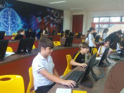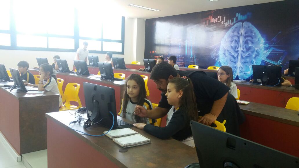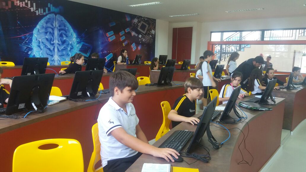 O professor Ricardo, de História, levou os alunos de 5º ano do Ensino Fundamental ao nosso Laboratório de Informática para pesquisarem sobre crianças do Brasil e a formação dos povos brasileiros.