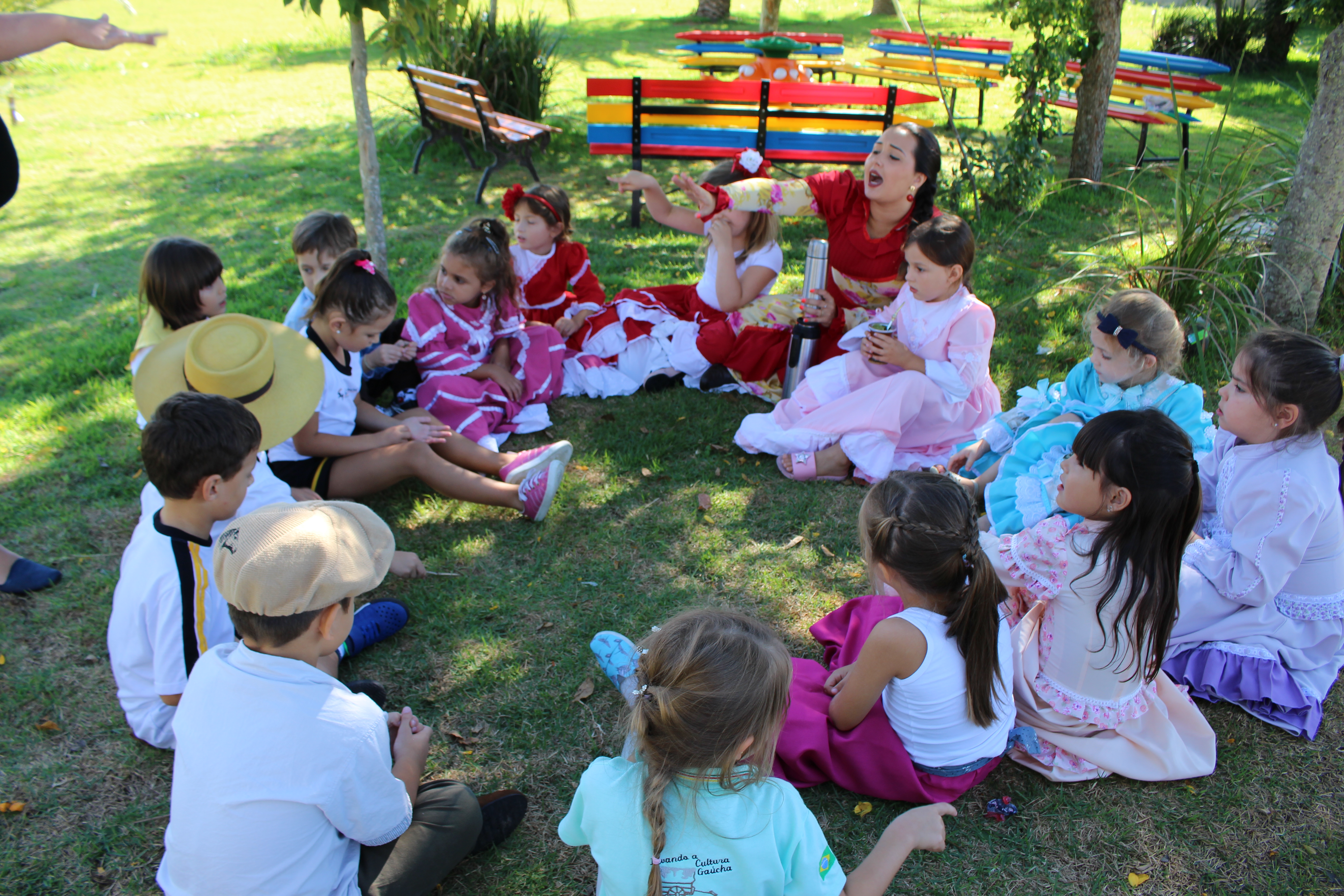Aulas de cultura gaúcha para exaltar as tradições do nosso estado. Nossos pequenos se pilcham para participar de atividades como roda de chimarrão, daças e muitos outros momentos tipicamente gaúchos.