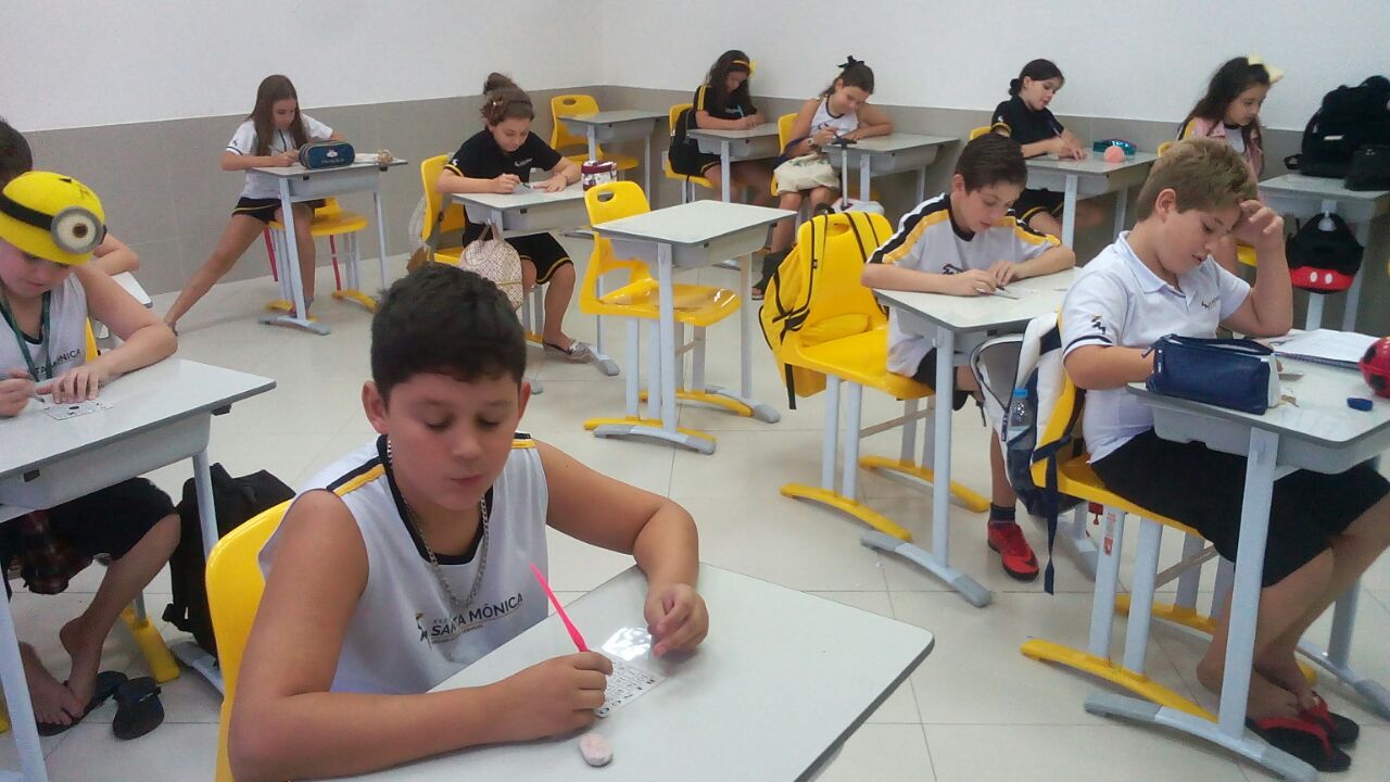 Os alunos de 5º ano do Ensino Fundamental utilizaram o jogo de bingo para revisar a pronúncia dos números em espanhol. Uma aula para exercitar o vocabulário de maneira lúdica.