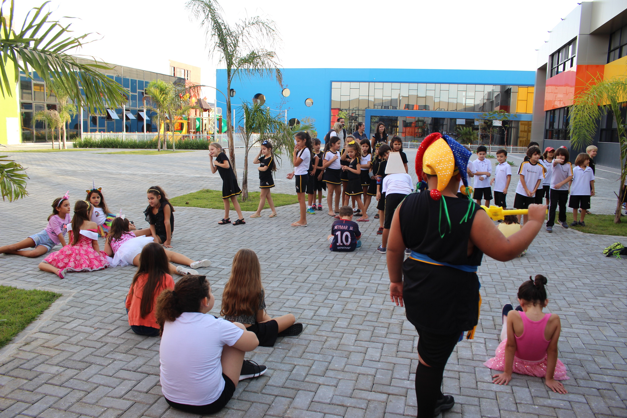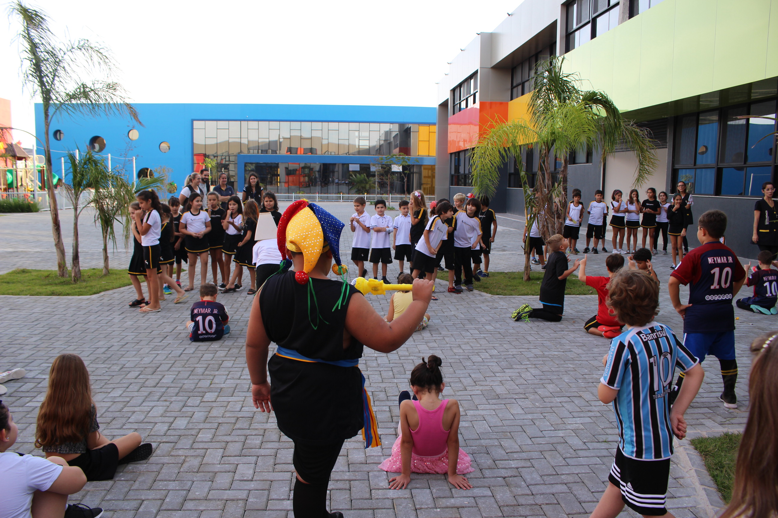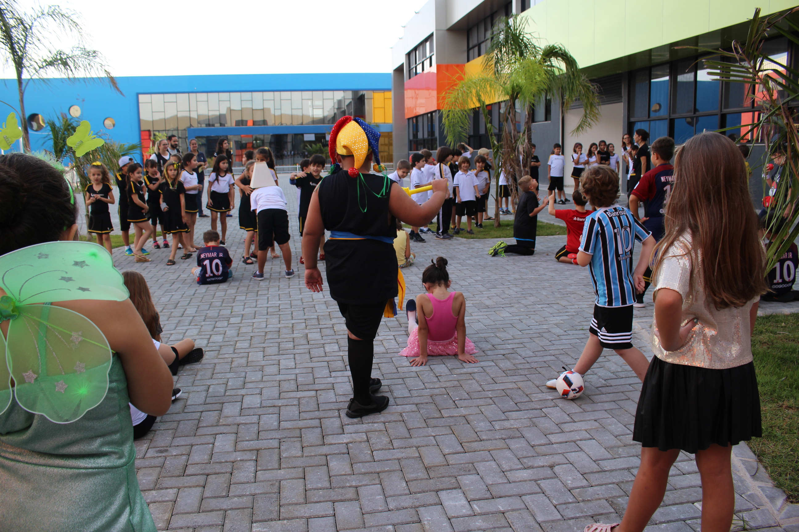 Os alunos de 3º ano do Ensino Fundamental participaram de uma experiência artística na qual se transformaram em estátuas vivas por um dia e ficaram em exposição no pátio para que os demais alunos pudessem admirá-los.