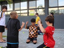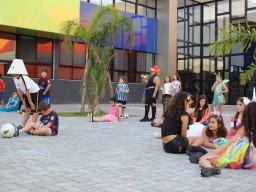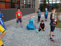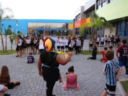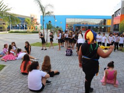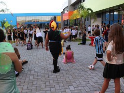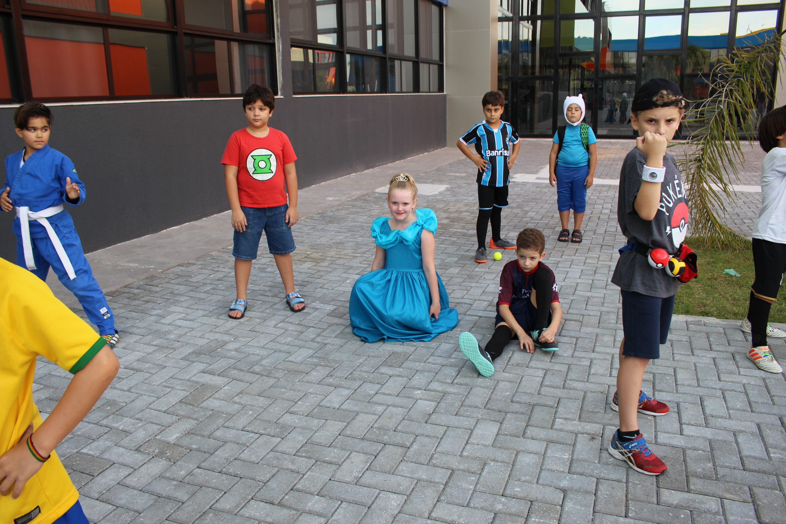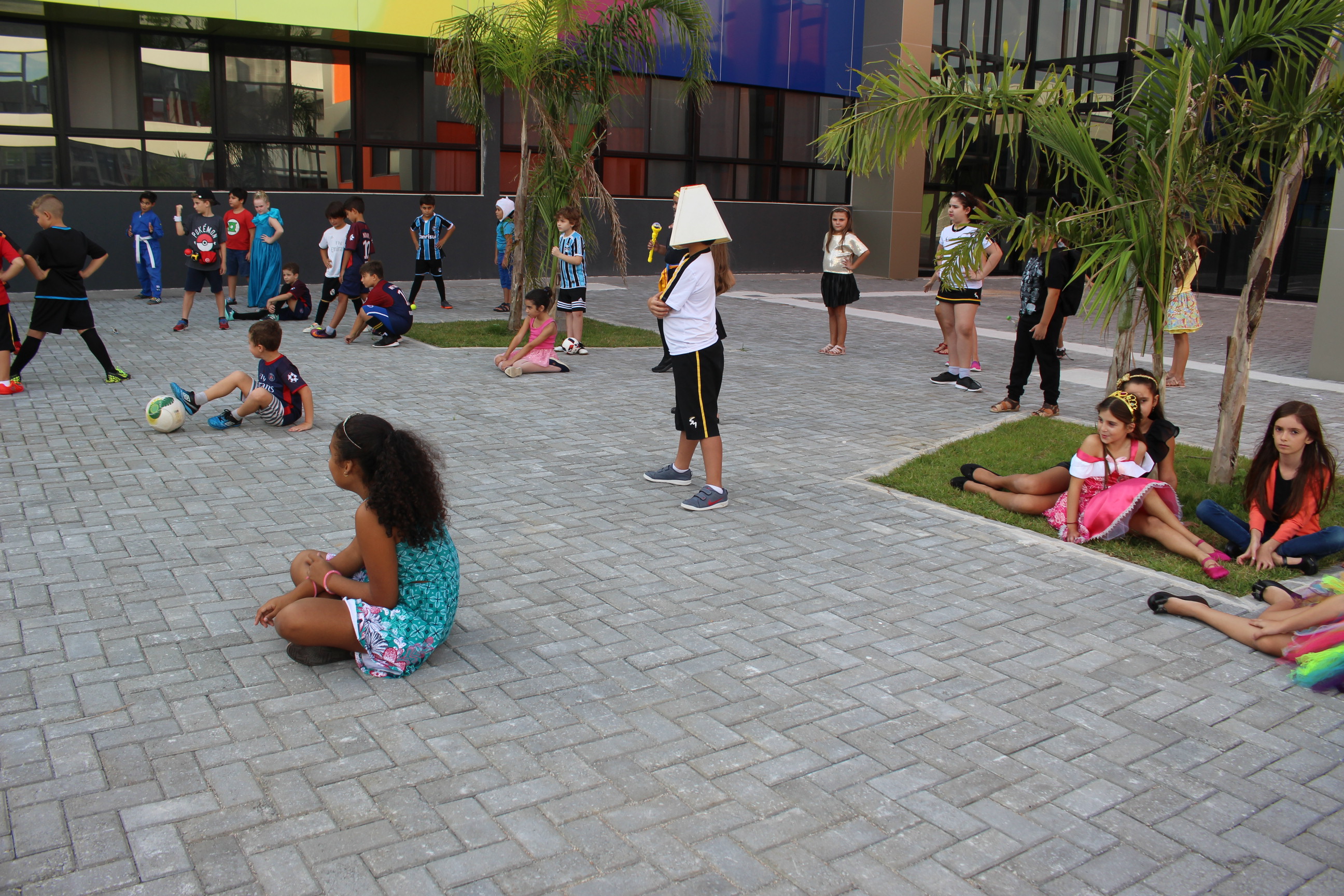 Os alunos de 3º ano do Ensino Fundamental participaram de uma experiência artística na qual se transformaram em estátuas vivas por um dia e ficaram em exposição no pátio para que os demais alunos pudessem admirá-los.