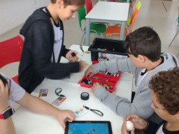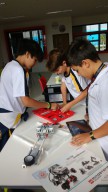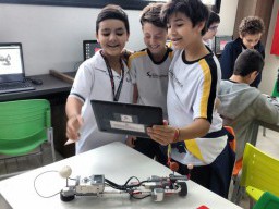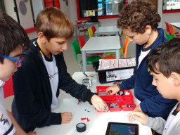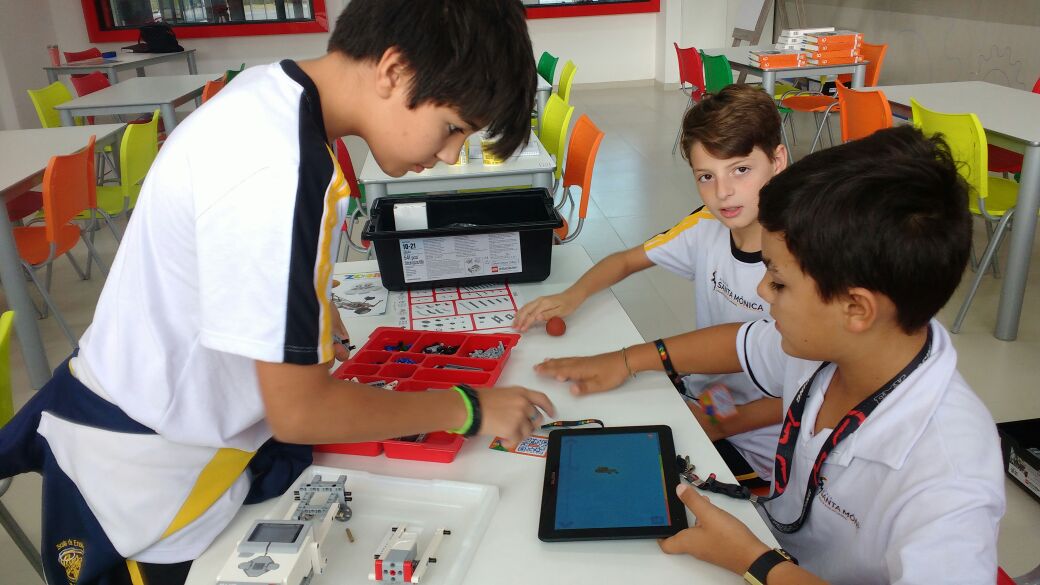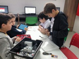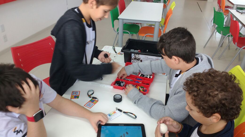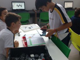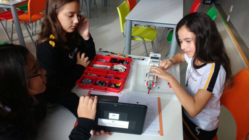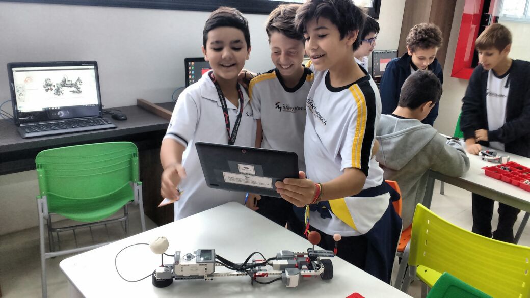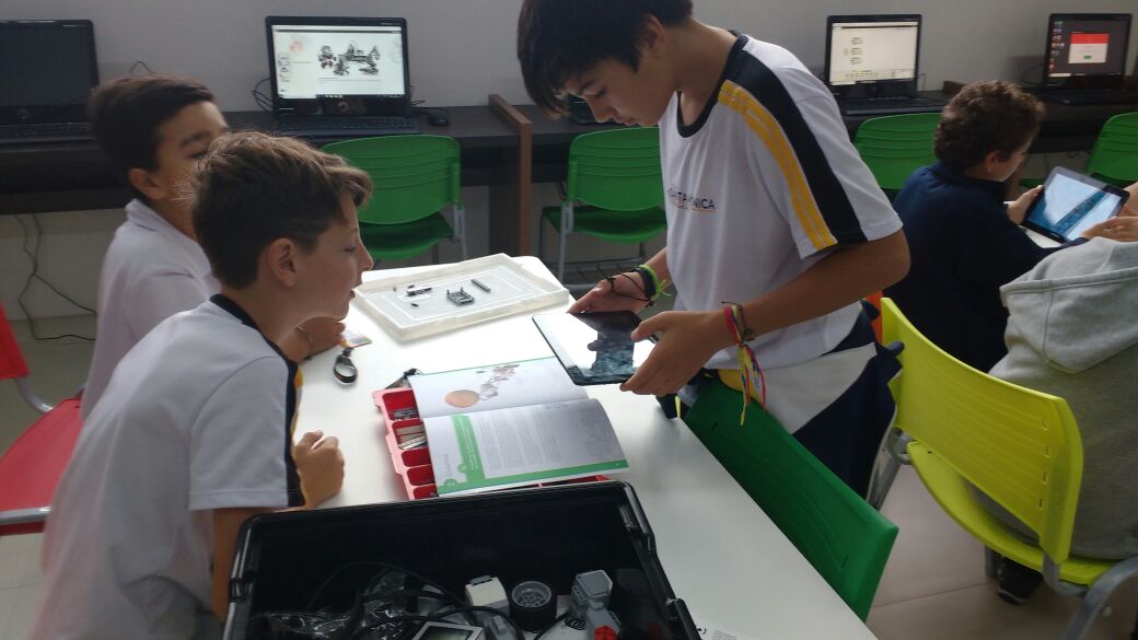 Divididos em equipes, os alunos de 6º ano do Ensino Fundamental analisaram possibilidades e criaram estratégias para construir um robô simulando o sistema planetário. Nessa atividade, eles exercitaram capacidades como coordenação, raciocínio lógico, criatividade e organização.
