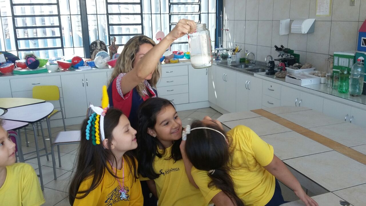 Através da experiência "Ovo Pelado", os alunos de 2º ano do Ensino Fundamental observaram a reação química de um ovo ao entrar em contato com o vinagre. Assim, exploraram os sentidos ao observar o ovo internamente e senti-lo com uma textura diferente.