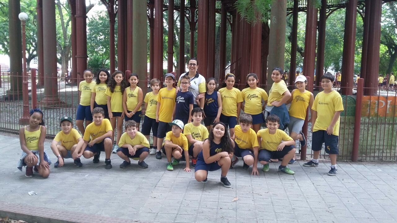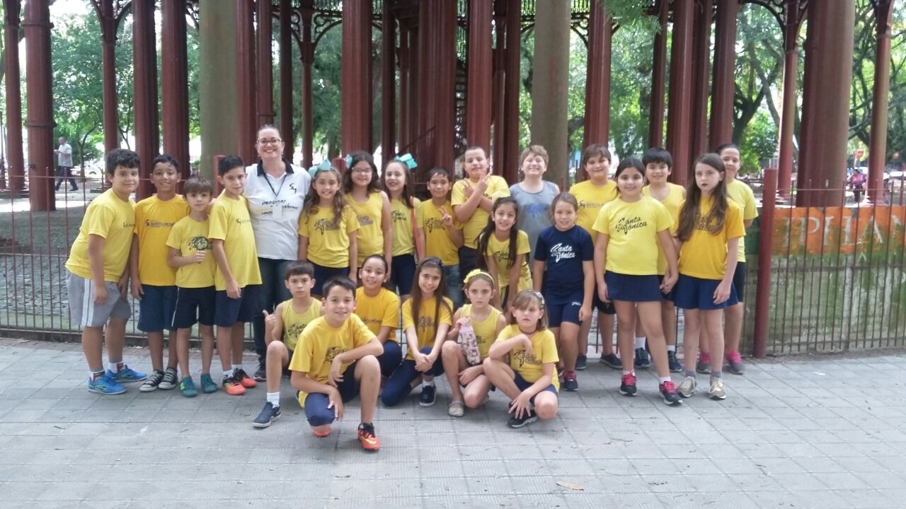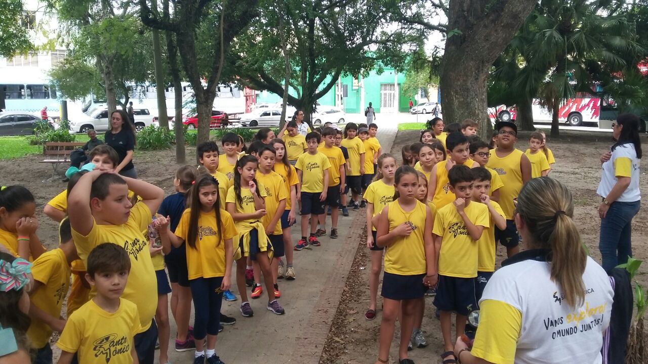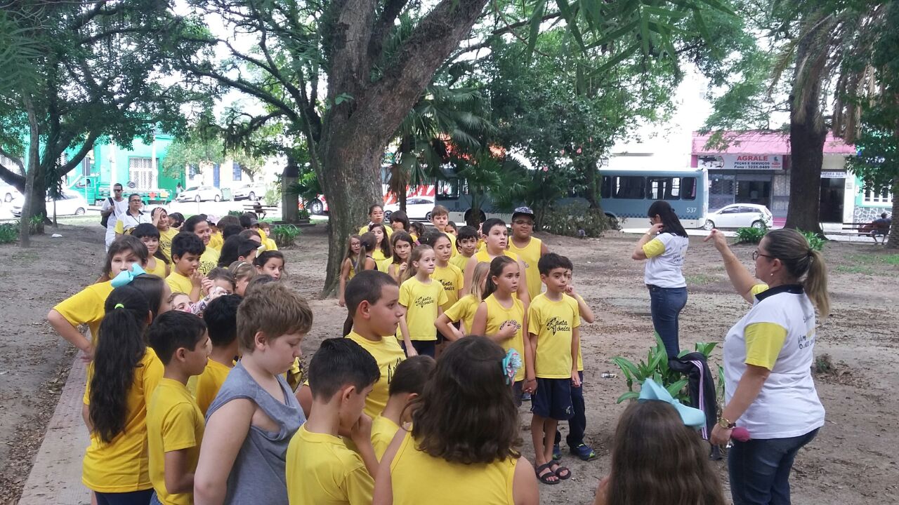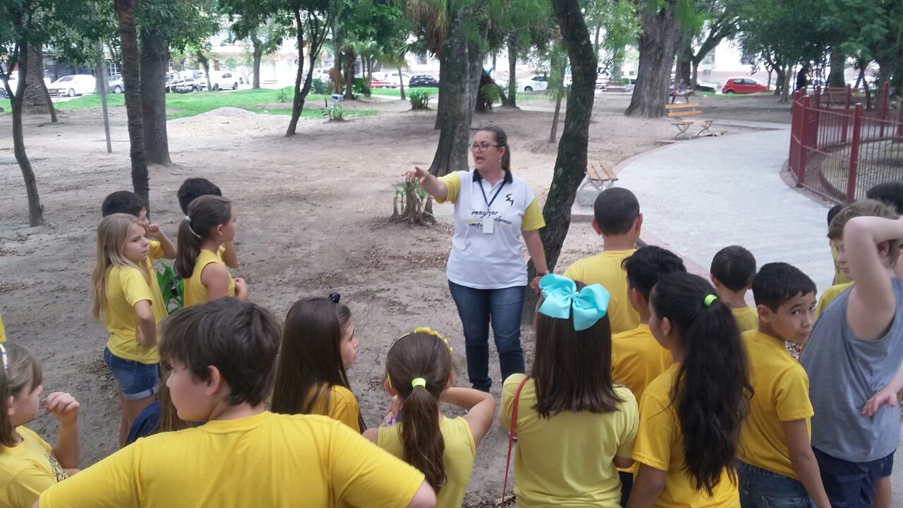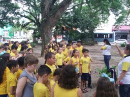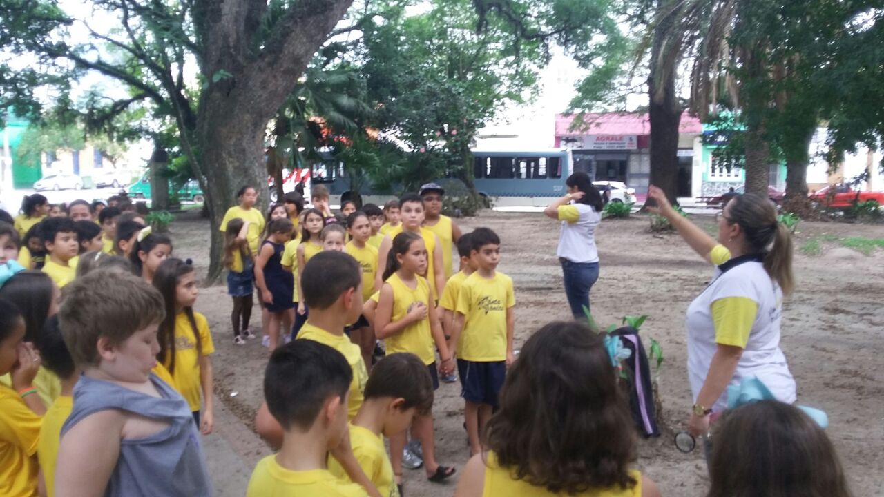 As turmas de 4º ano do Ensino Fundamental se aventuraram pela Praça Piratinino de Almeida para observar as características do solo existente nas proximidades da escola e conversaram também sobre a importância da preservação do meio ambiente.