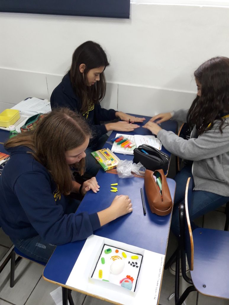 Em uma atividade da aula de Ciências com a professora Lissane, os alunos de 8º ano aprenderam sobre células e organelas, identificaram suas funções e aplicaram o conteúdo aprendido através da construção das células estudadas.