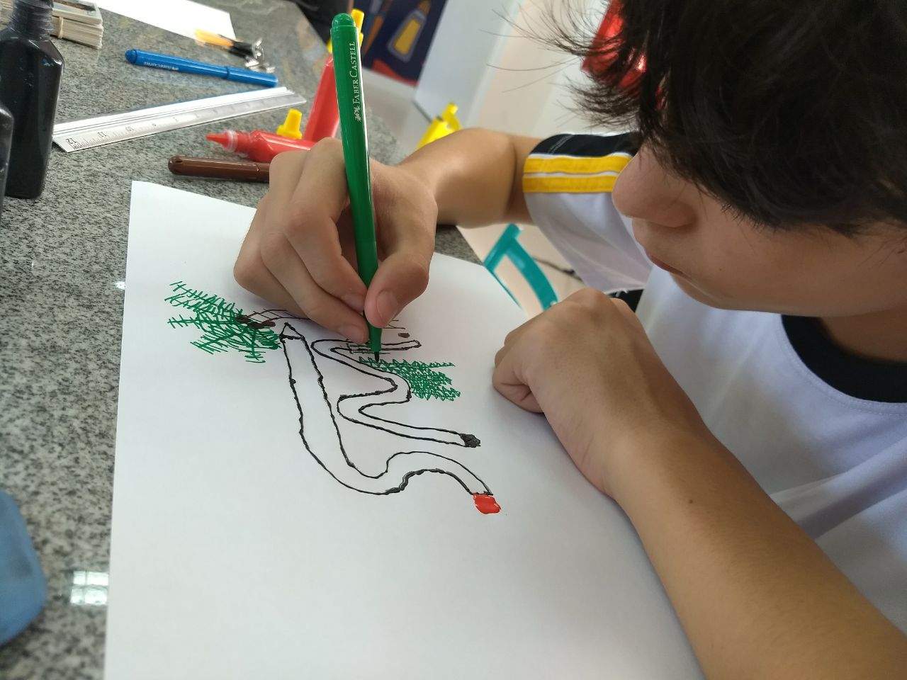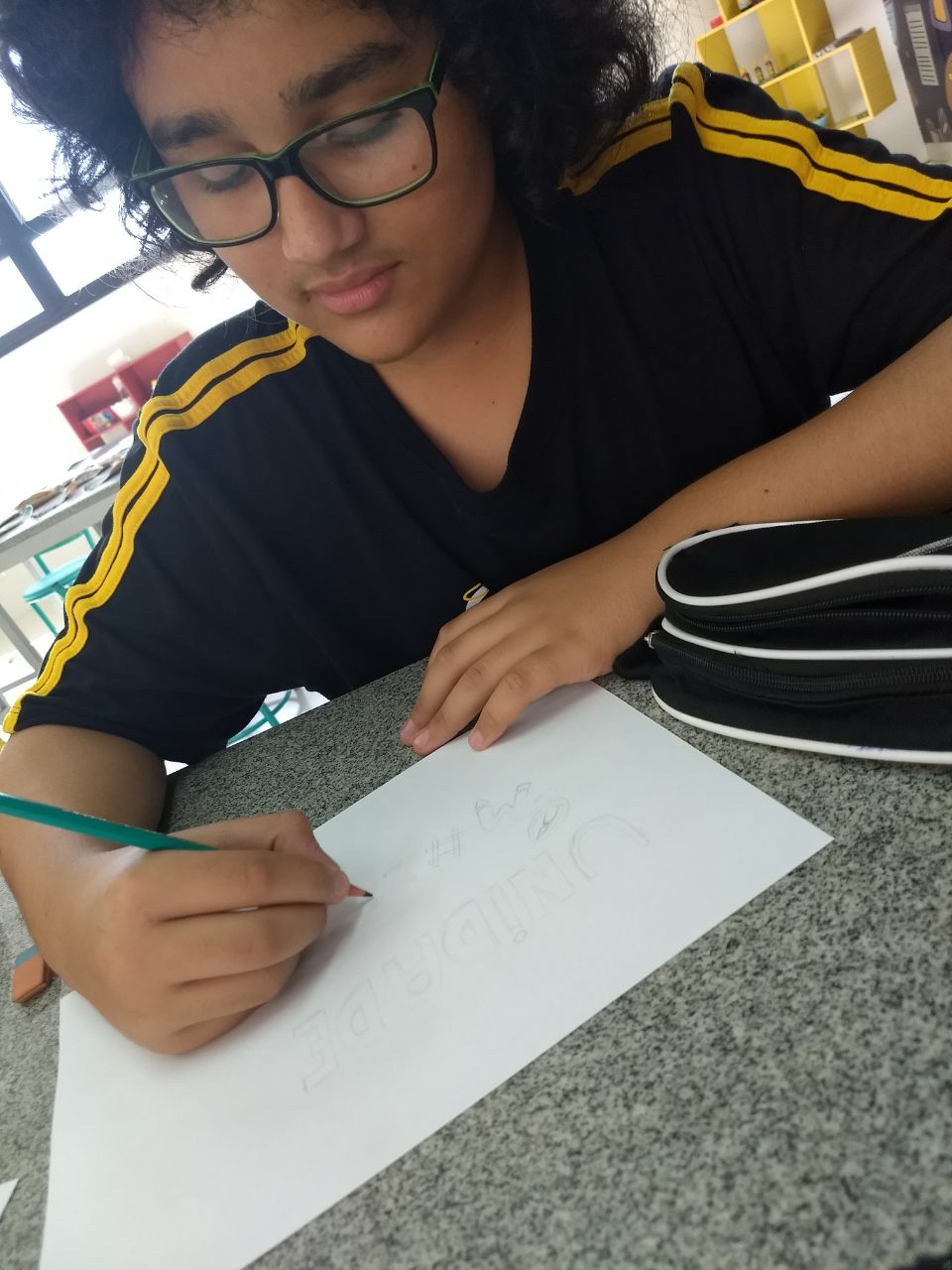 Nossos alunos de 8º ano aprenderam sobre arte de rua durante o bimestre e finalizaram o conteúdo no Espaço da Criatividade, onde produziram tags utilizando a técnica Wildstyle do Grafitti.