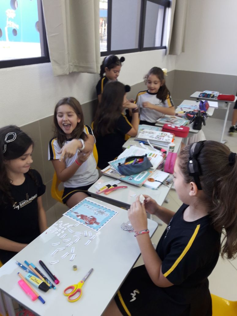 Os alunos de 5º ano utilizaram o jogo Corpo em Movimento para aprender sobre ossos e músculos de maneira lúdica. O jogo consistia em perguntas e respostas para testar os conhecimentos da turma e ajudar os alunos a memorizar o conteúdo.