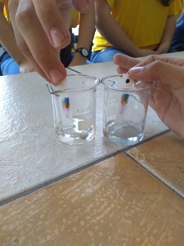 Nossos alunos de 9º ano visitaram o Laboratório de Ciências e participaram de uma aula prática com a professora Michele, de Química. A experiência de cromatografia em papel ajudou os alunos a compreenderem melhor o conteúdo sobre separação de misturas.