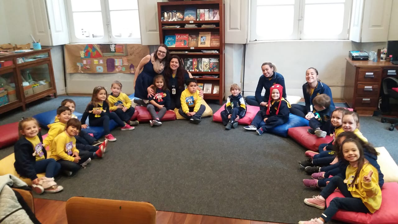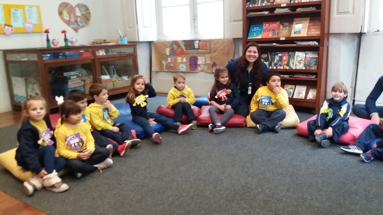 Nossos pequenos de Jardim II também participaram de uma Hora do Conto especial na Biblioteca Pública Pelotense. Eles ouviram a história "A fera solitária" e relembraram a importância de cultivar boas amizades.