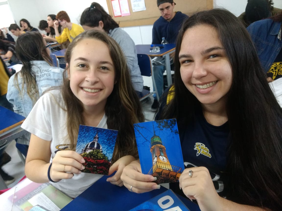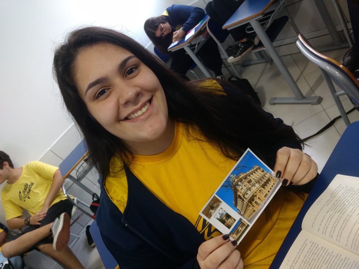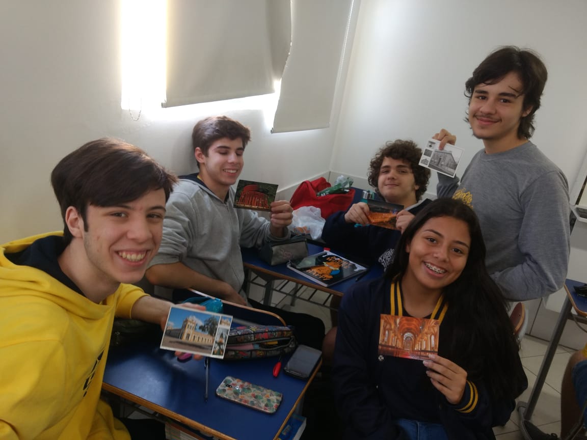 Os alunos de 2º ano do Ensino Médio agora fazem parte de uma comunidade para troca de cartões postais, denominada Postcrossing. A proposta surgiu na aula de Inglês, com a Teacher Ângela, e possibilita aos alunos conhecer novas culturas, treinar a escrita em inglês e apresentar nossos costumes para outras pessoas.