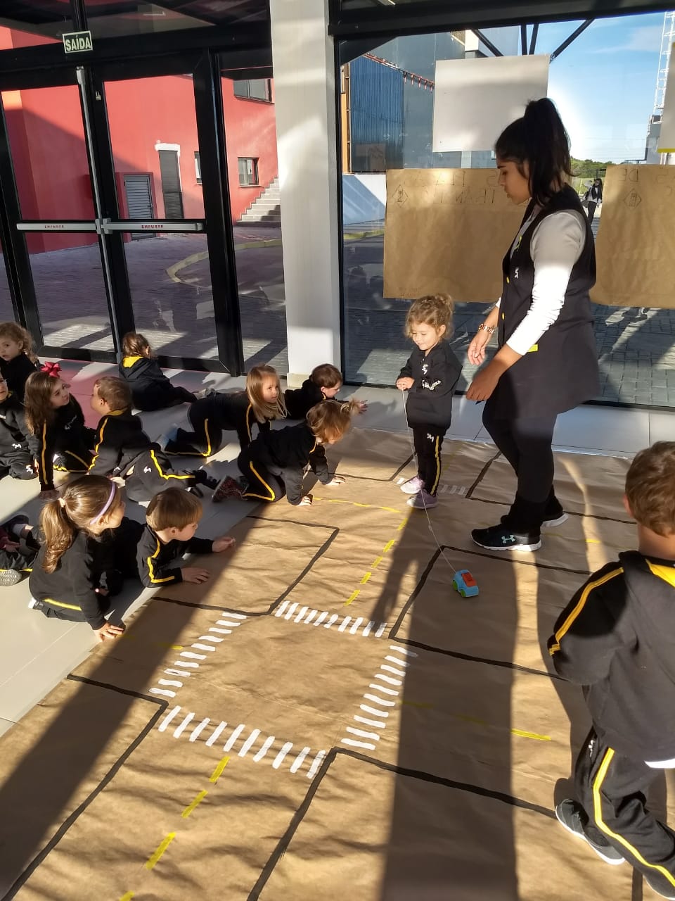 Os pequenos de Jardim I participaram de uma atividade lúdica que simulava as ruas, os carros e os pedestres e relembraram as atitudes que podem melhorar o trânsito.