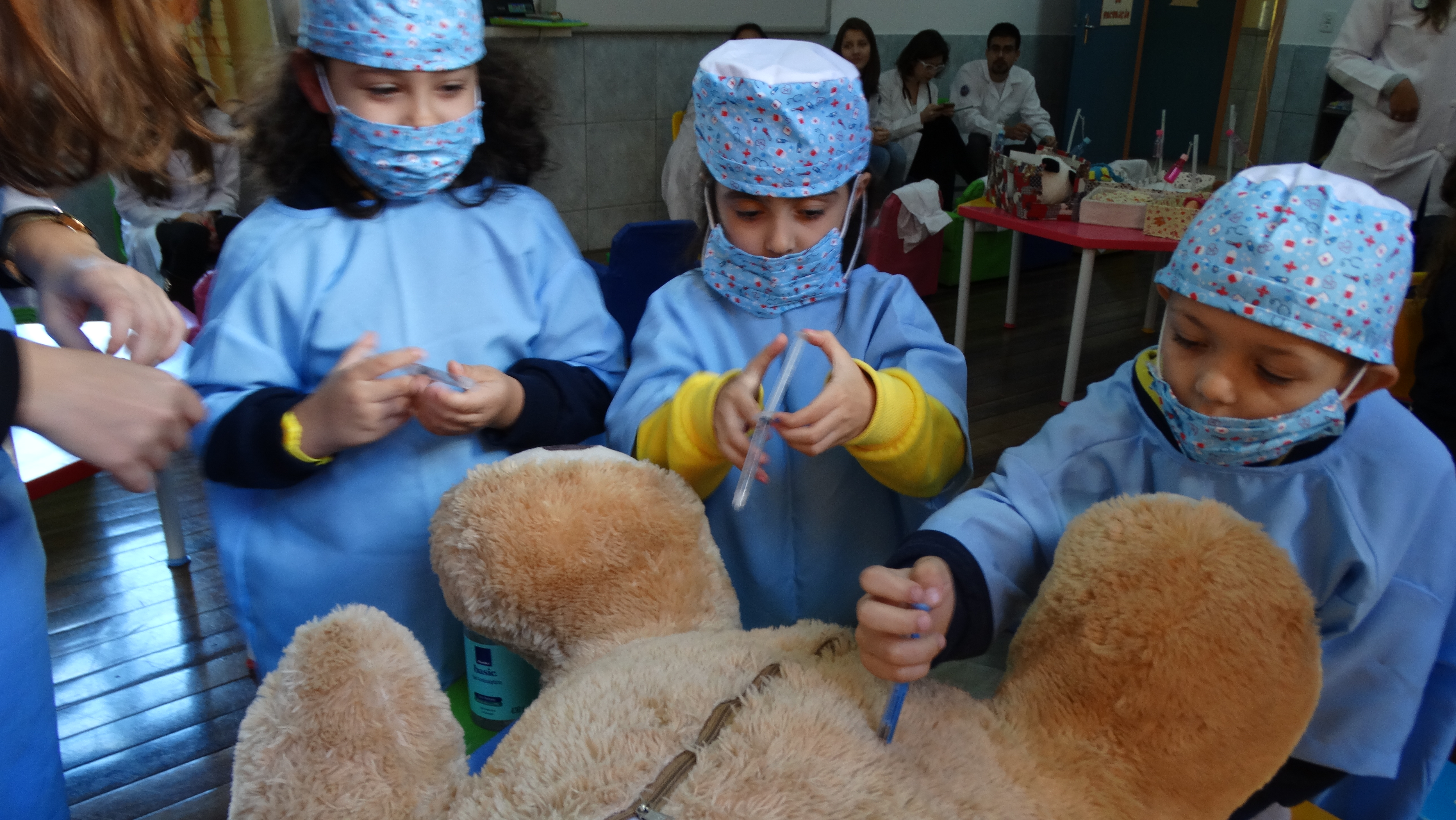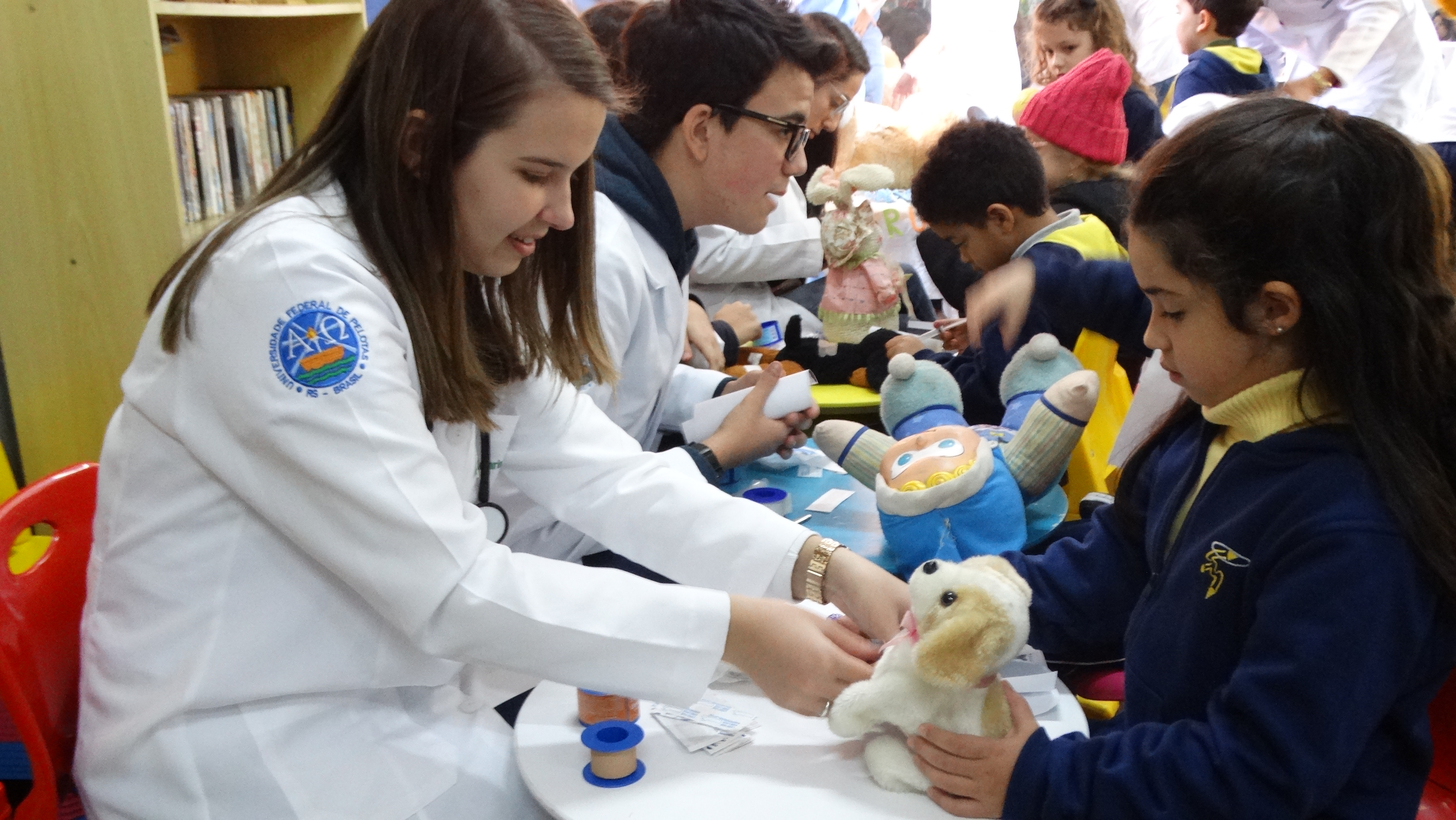 Nossos pequenos da turma 31, professora Marina, receberam a visita especial dos alunos do curso de Medicina da UFPel e participaram de um projeto incrível! Cada aluno levou um urso ou boneca e criou uma ficha médica para aprender a como cuidar do "paciaente". De maneira lúdica, o Hospital do Ursinho tem o intuito de diminuir o medo das crianças de irem ao hospital.