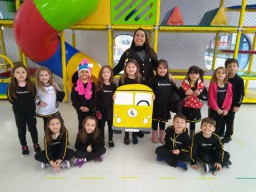 Para aprender mais sobre a letra “K”, os alunos se reuniram em grupo para produzir uma Kombi, que foi utilizada durante toda a semana.