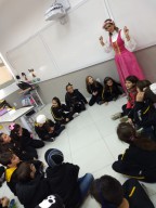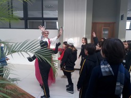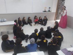 Eles receberam uma visita especial da Rapunzel, que veio contar sua história e se divertir com os alunos no jogo ditado encantado.