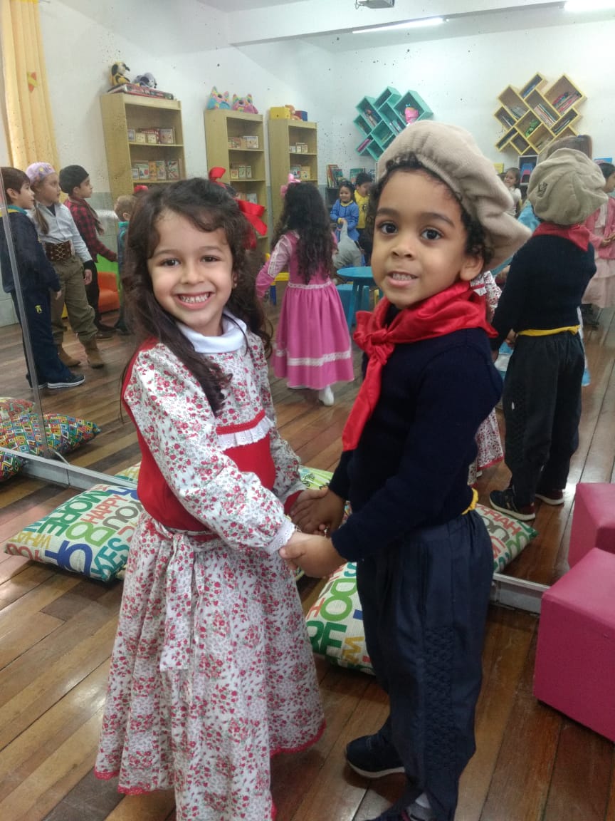 Incentivamos desde cedo o contato com a cultura gaúcha para que nossos pequenos compreendam a importância de valorizar nossas tradições e costumes! Com suas pilchas e vestidos de prenda, os alunos da Educação Infantil se sentaram nas rodas de chimarrão e conversaram com os colegas e professoras sobre os elementos da cultura gaúcha! Para espantar o frio do inverno, se deliciaram com uma sopinha!