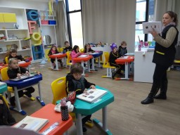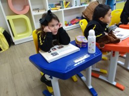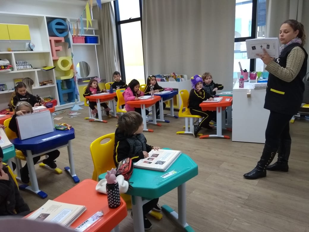 Os alunos do Jardim III conversaram sobre as características do Circo e utilizaram o livro Positivo para resolver uma atividade. Eles tiveram de reconhecer as atividades circenses nas imagens e completar as palavras.