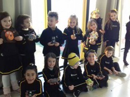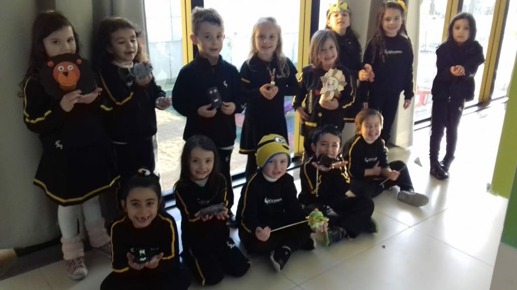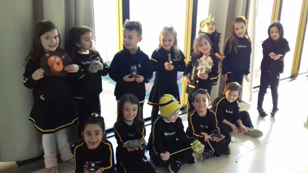 Depois de acessar a plataforma digital Positivo On, os alunos de Jardim III leram a história O Leão e o Rato e, com a ajuda dos familiares, criaram os personagens utilizando material reciclável.
