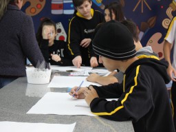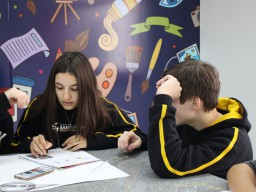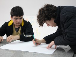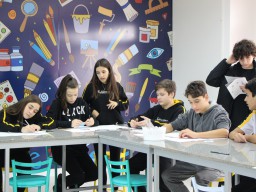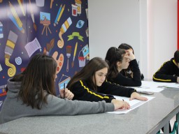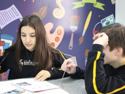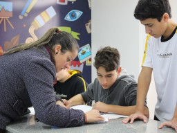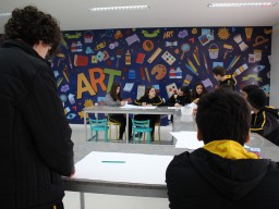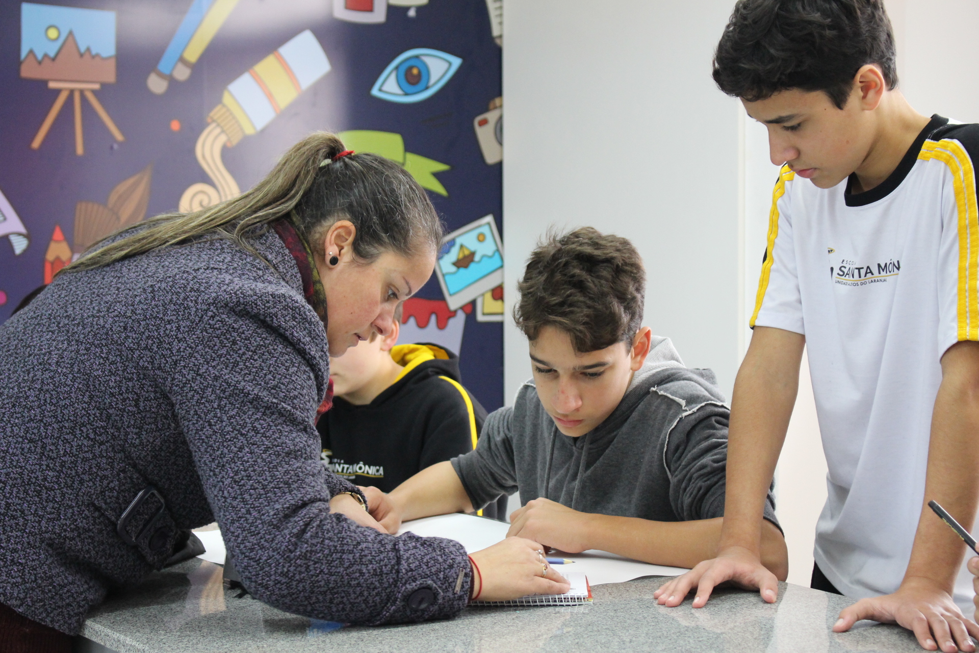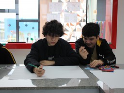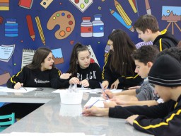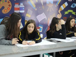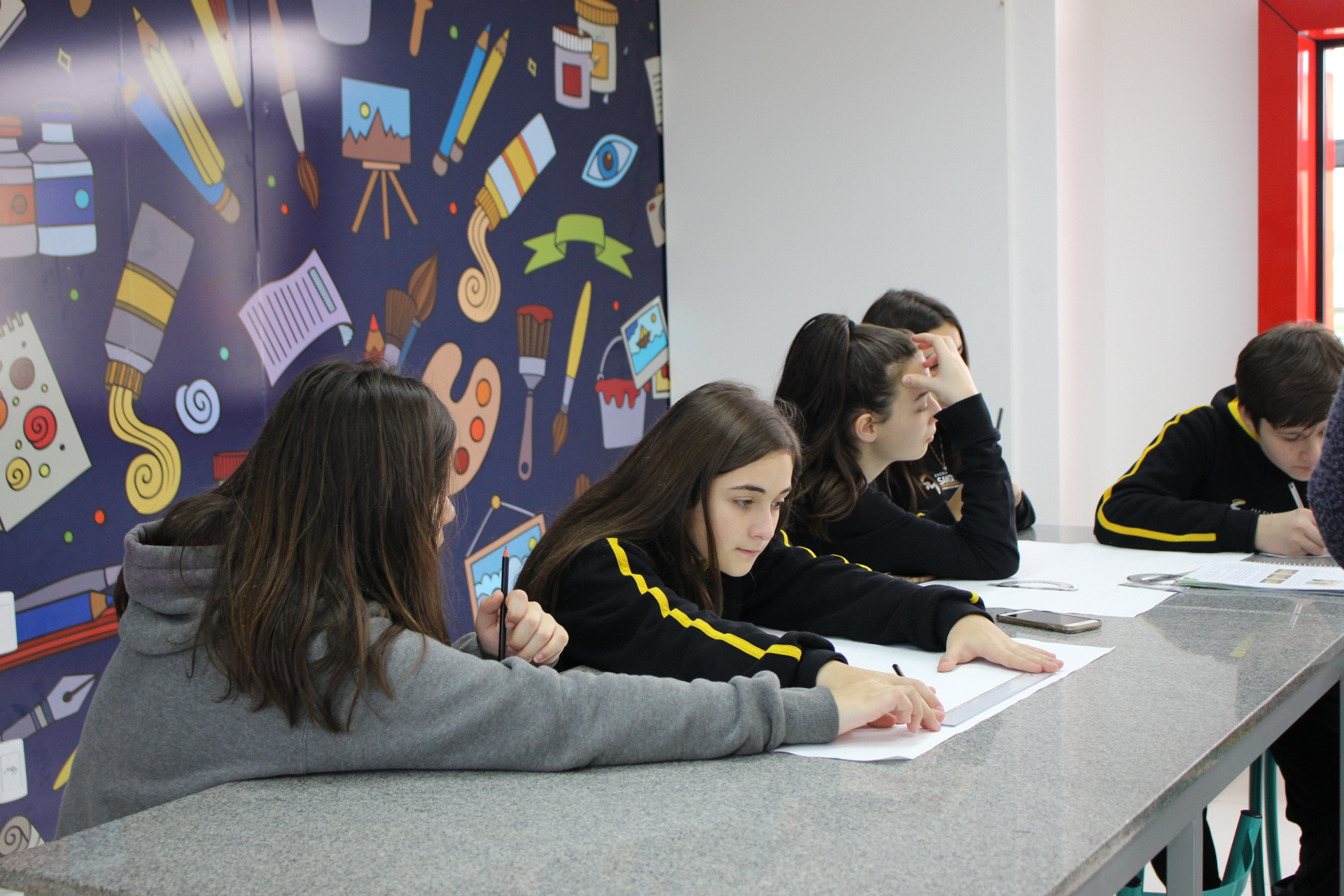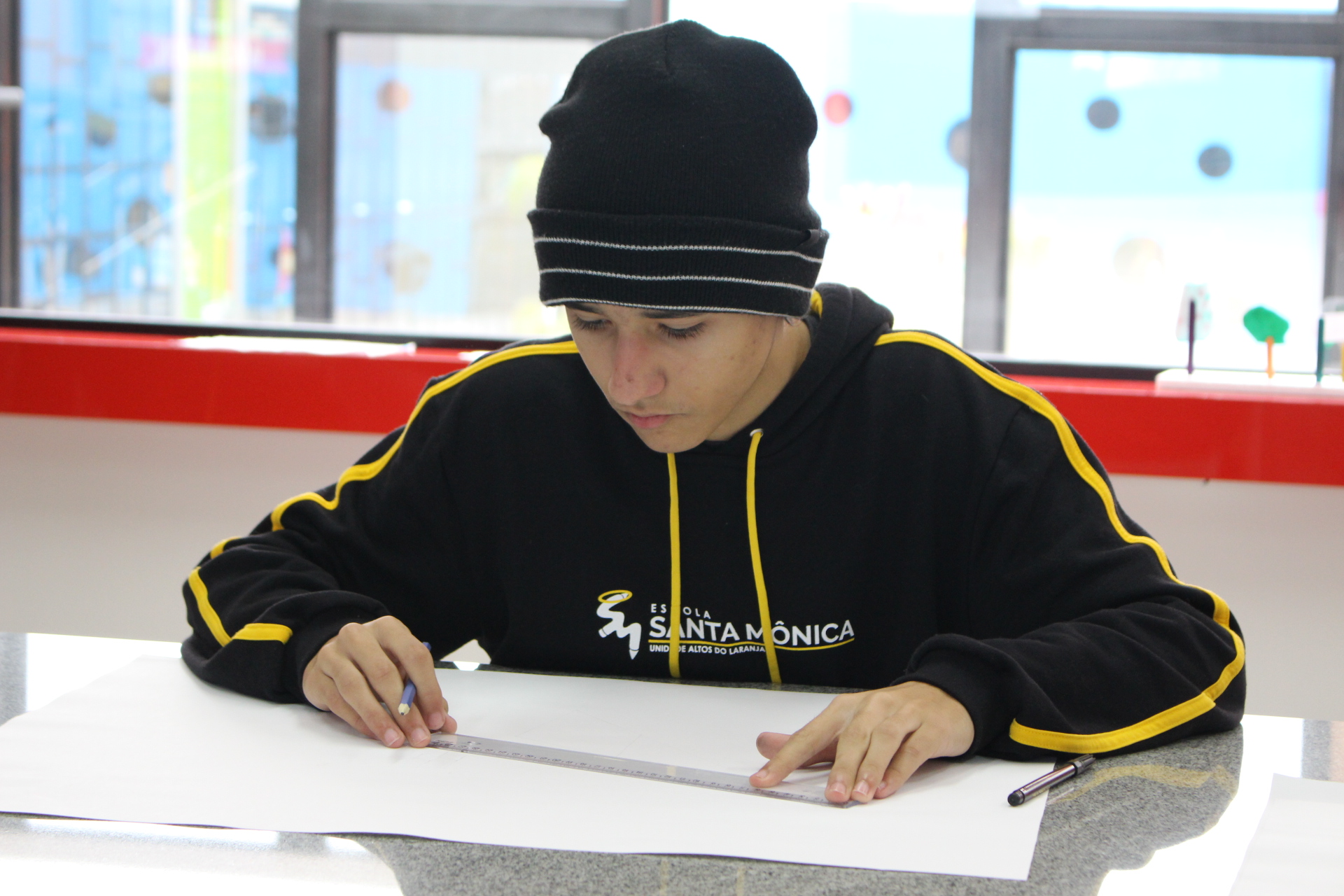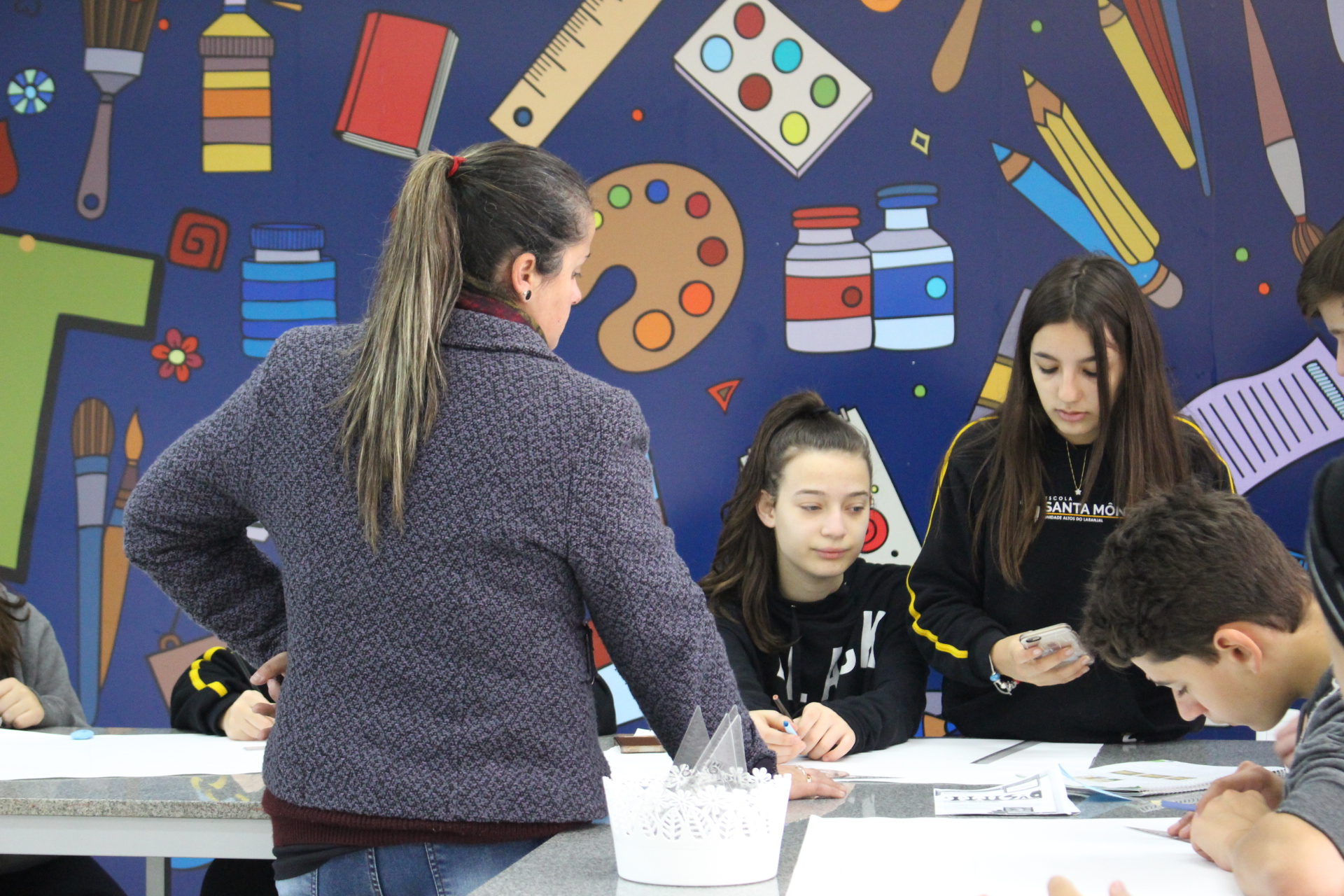 Para aplicar os conteúdos aprendidos durante as aulas de Arte, os alunos de 9º ano produziram cartazes utilizando os conceitos de perspectiva e ponto de fuga.