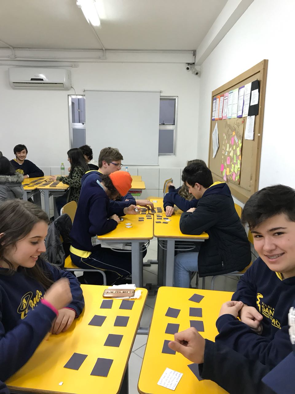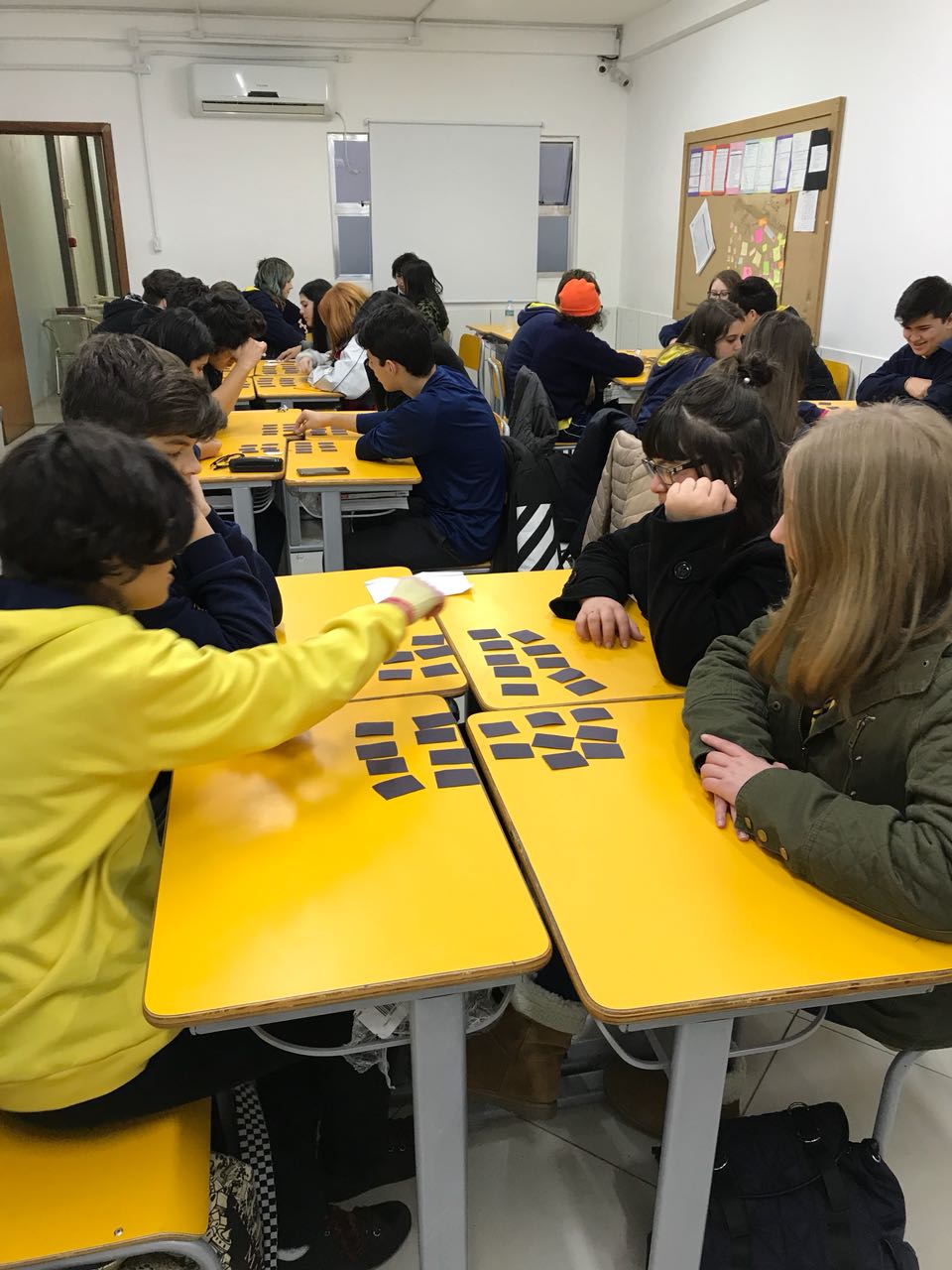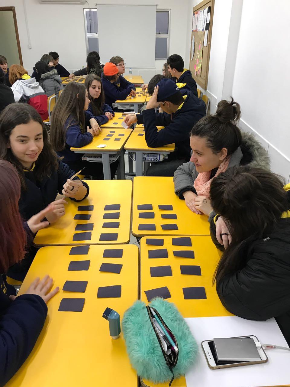 Para estimular o raciocinio rápido e revisar os conceitos de Física, os alunos do 1º ano de Ensino Médio se dividiram em duplas e produziram peças para um jogo da memória relacionado ao conteúdo. A turma fez até campeonato na sala!