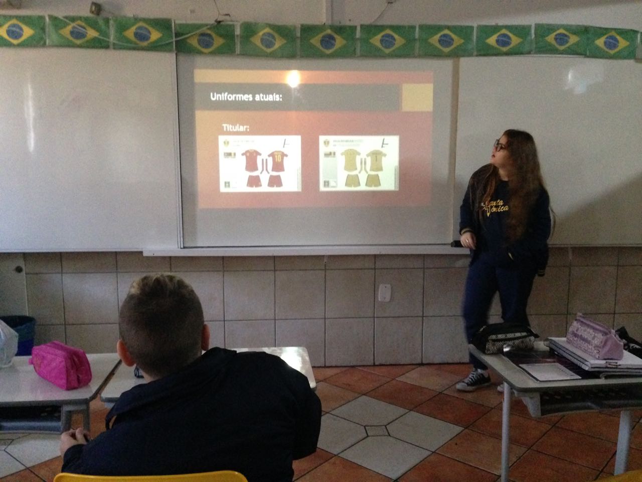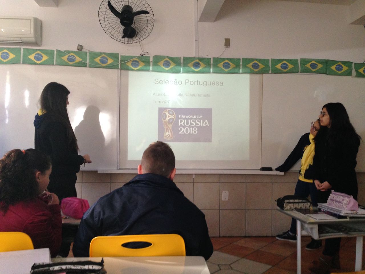 Os alunos da turma 71 aproveitam as aulas de redação e português para conhecer os hábitos e costumes de cada país participante da Copa do Mundo.