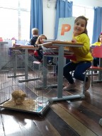Os alunos de Jardim III estão conhecendo as letras de maneira lúdica! Para aprender sobre a letra “P”, eles receberam a visita de um novo amigo: o pintinho!