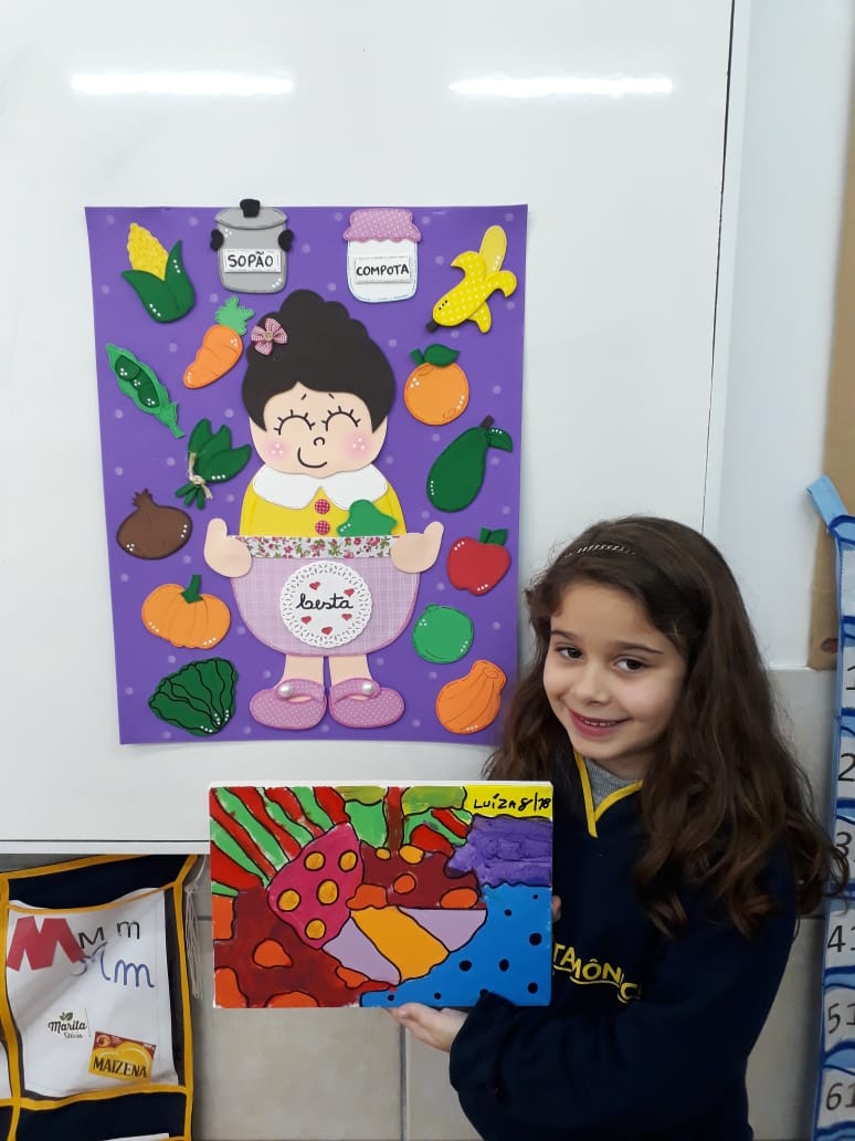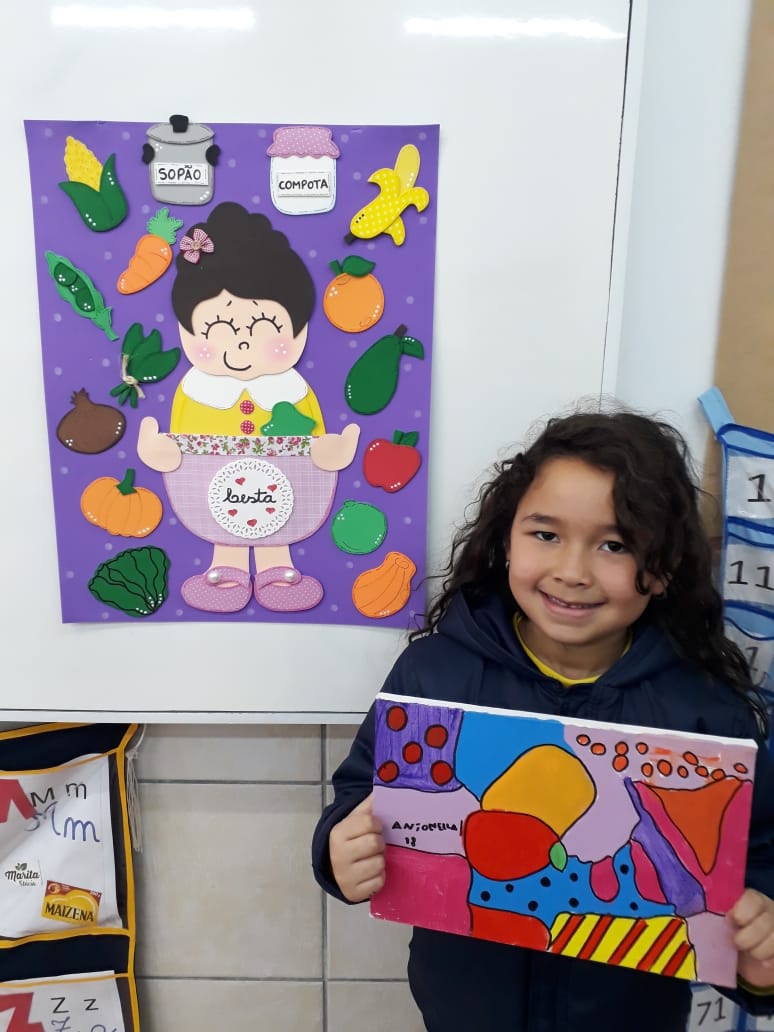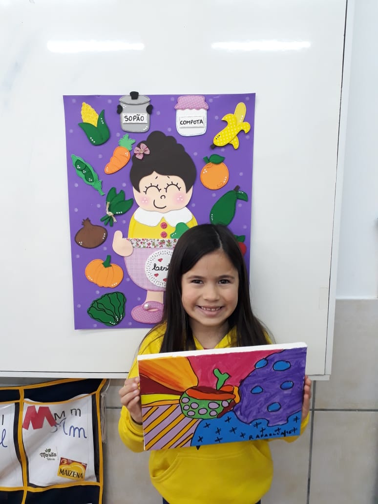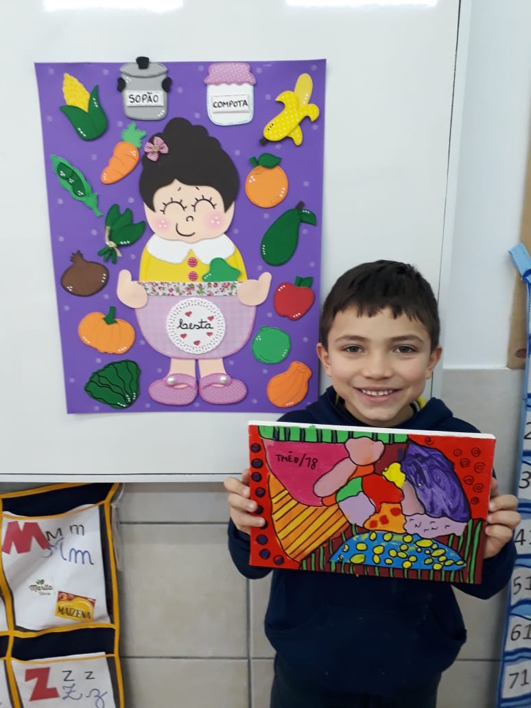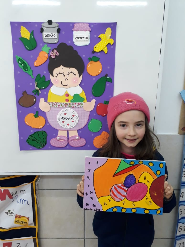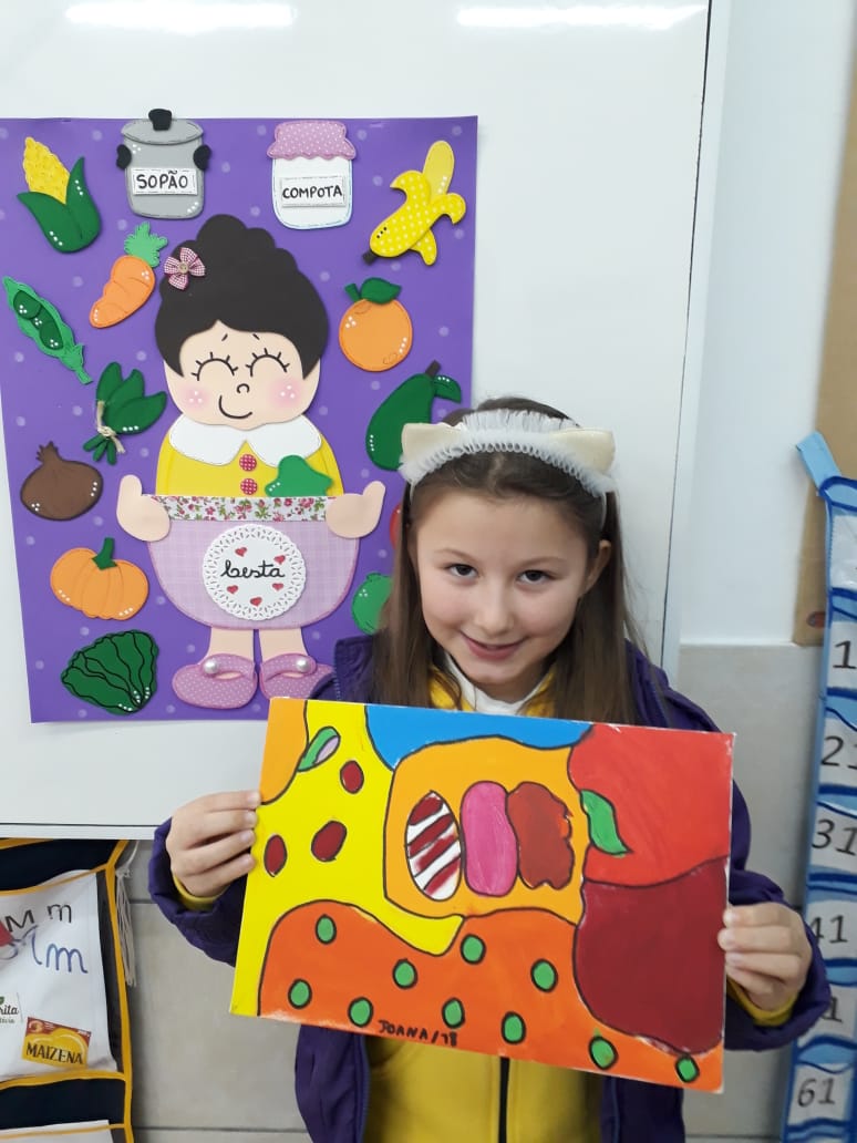 Em parceria com a disciplina de Arte, os alunos da turma 11, desenvolveram lindas obras no projeto de leitura "A cesta de Dona Maricota": A arte de se alimentar.