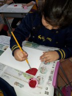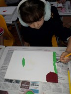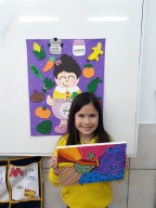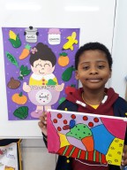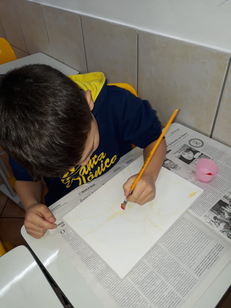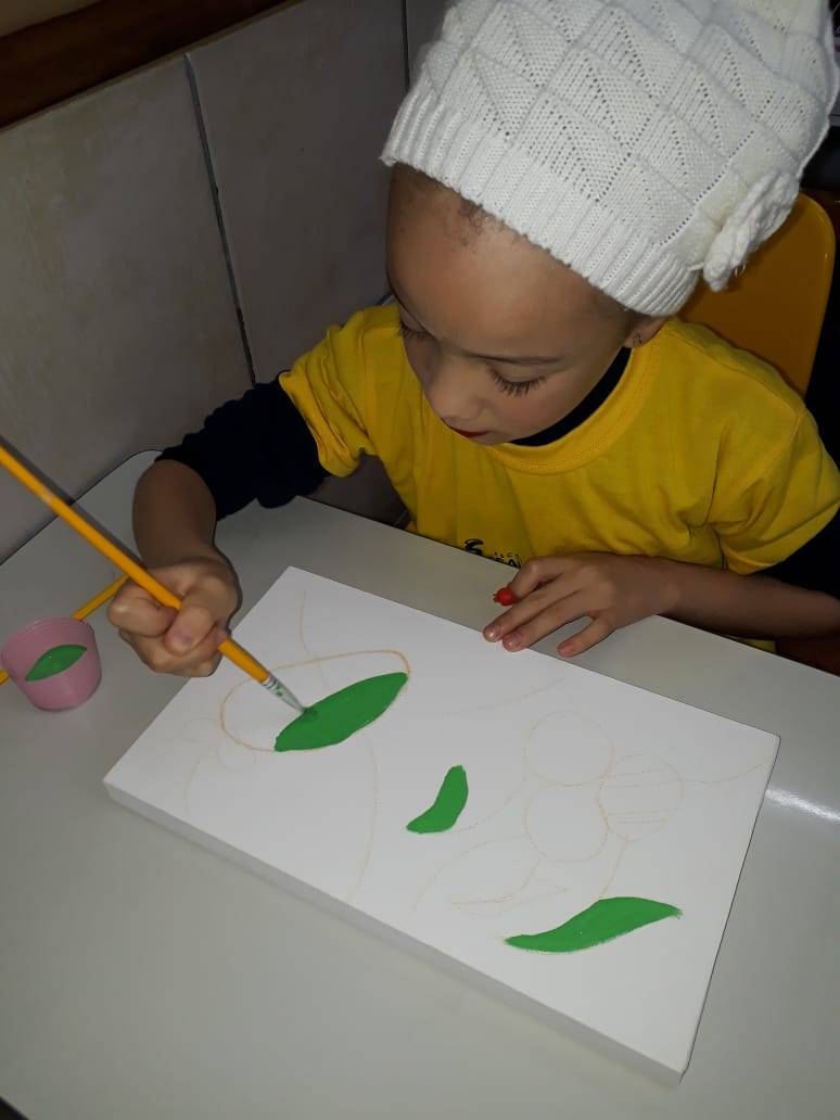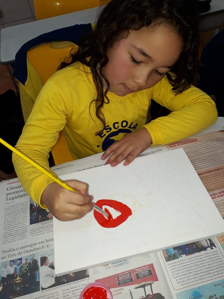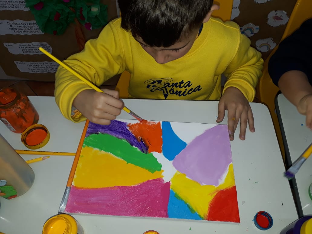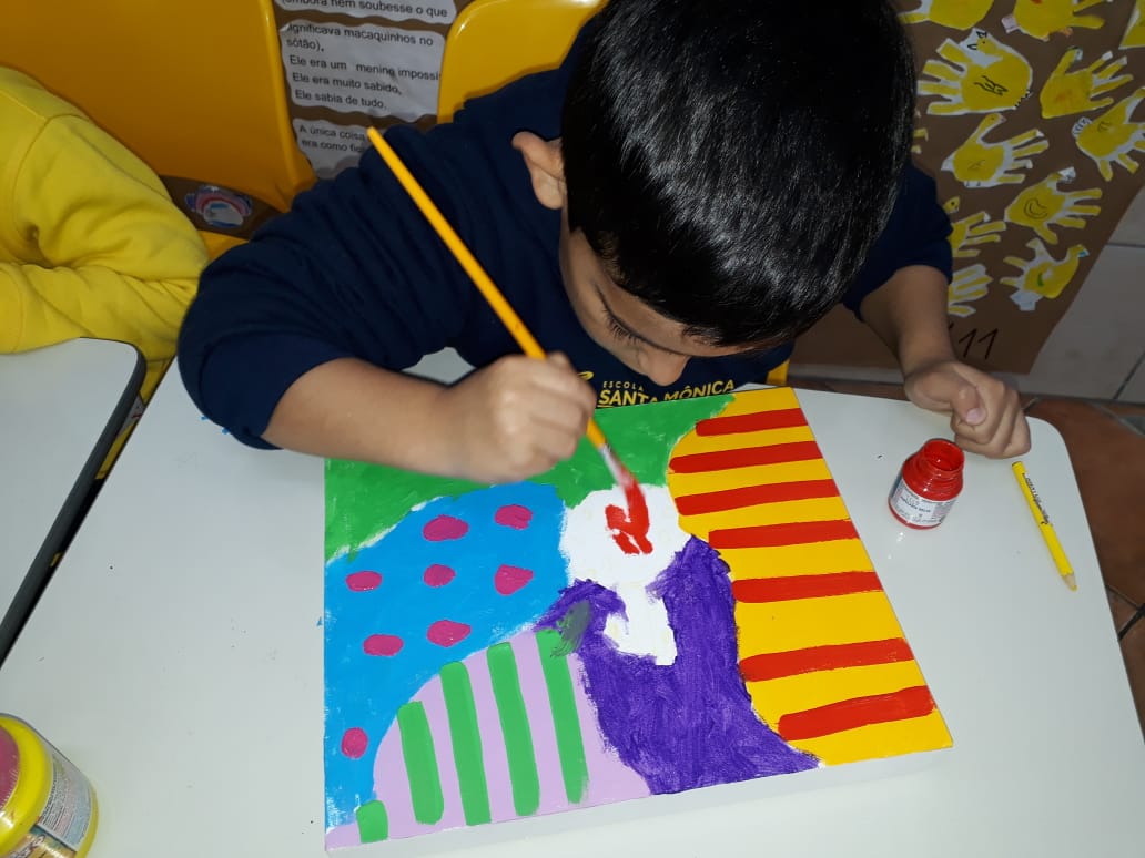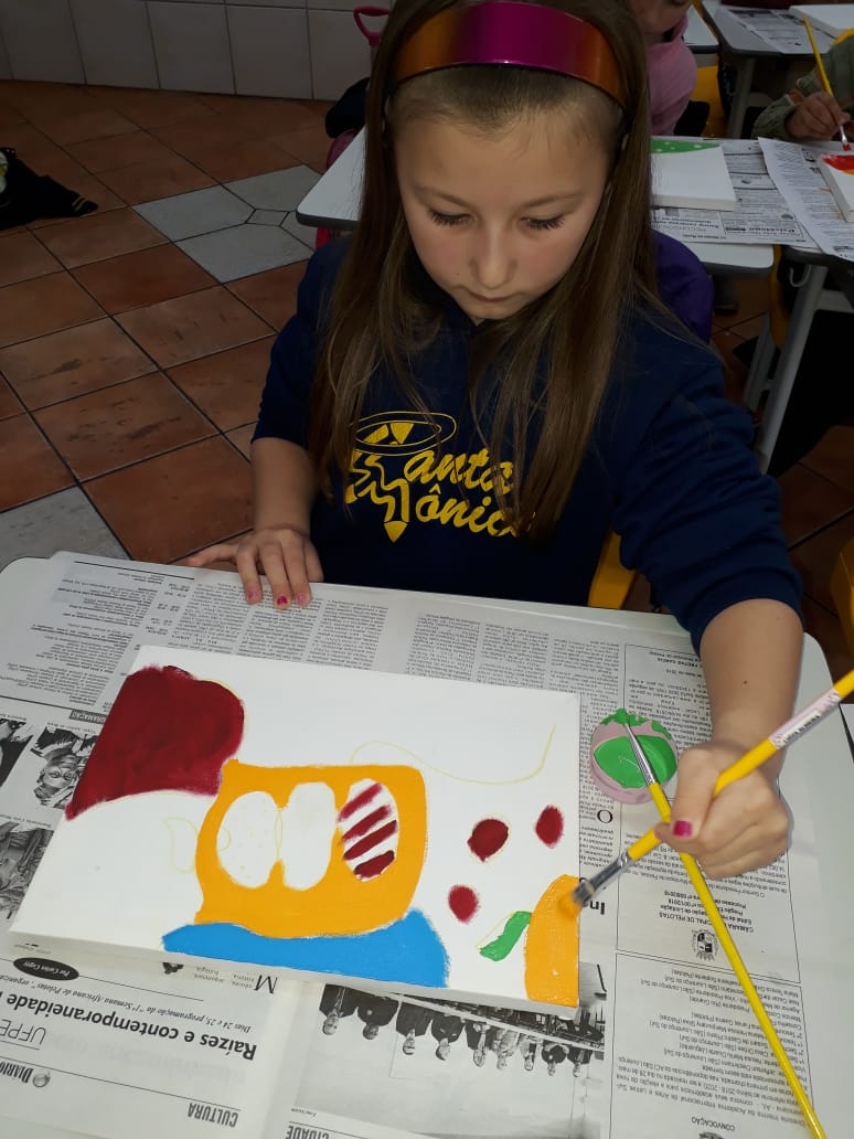 Eles fizeram pesquisas sobre a obra de Romero Britto e pintaram telas fazendo uma releitura das obras com a temática frutas.