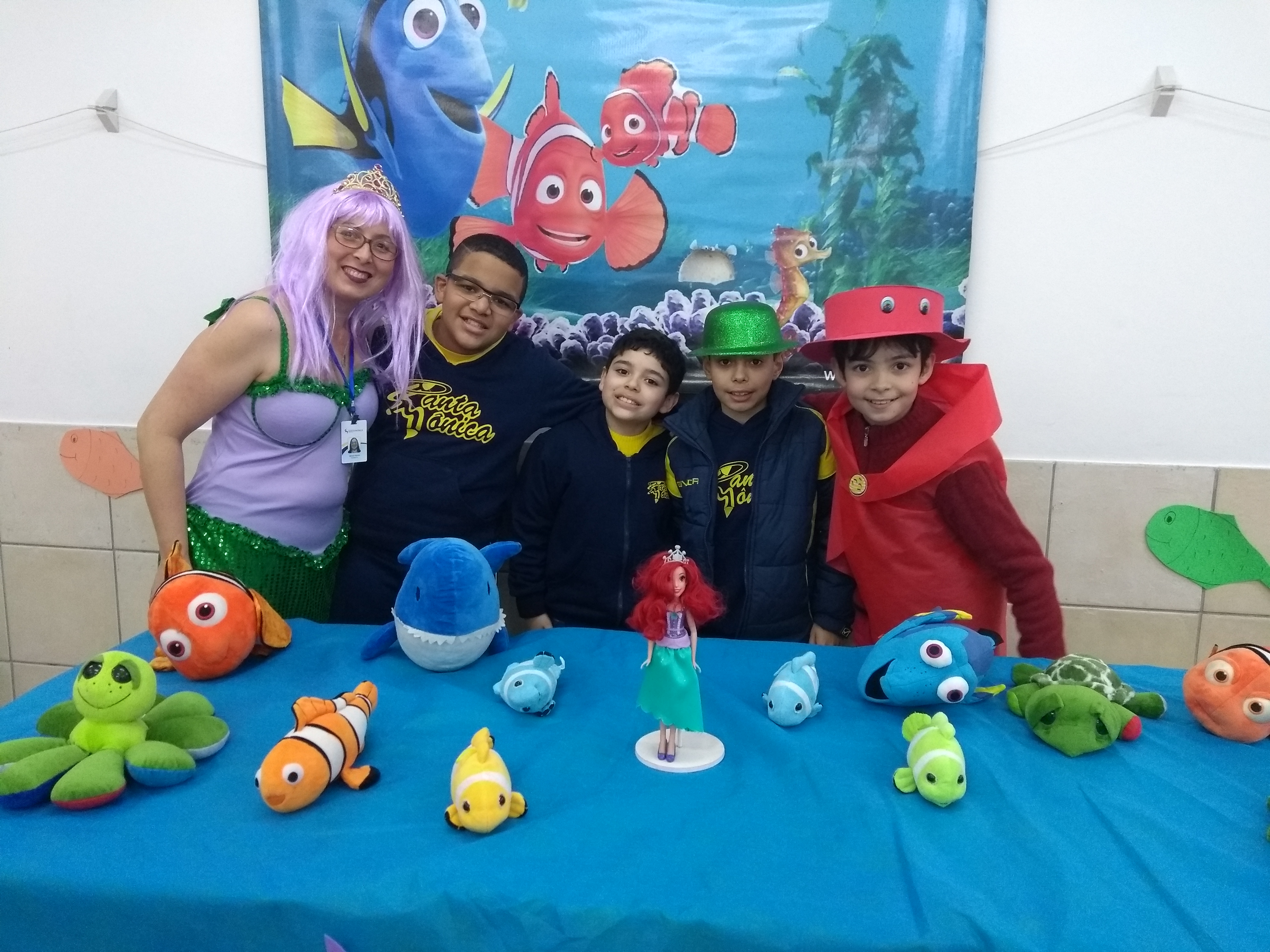 Nesse projeto de literatura, a turma 43, da professora Simone, conheceu a história da "Pequena Sereia". Ao longo do bimestre os alunos confeccionaram alguns personagens da história e para conclusão, visitaram o fundo do mar.