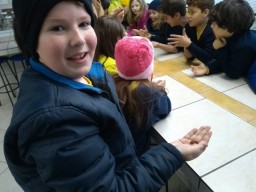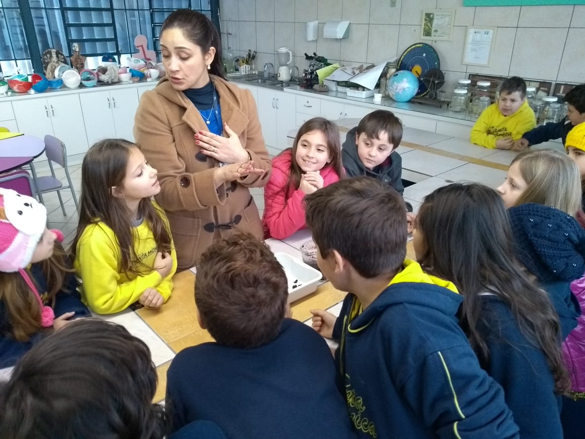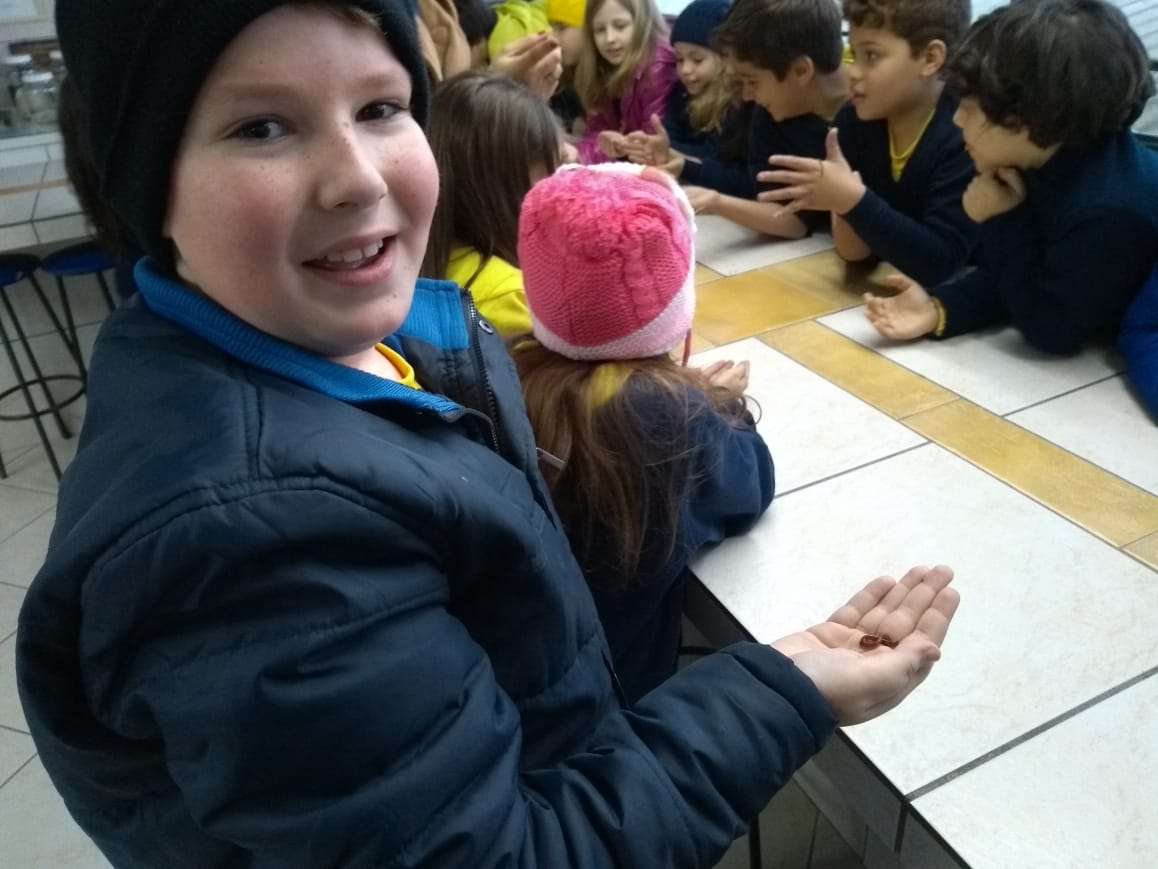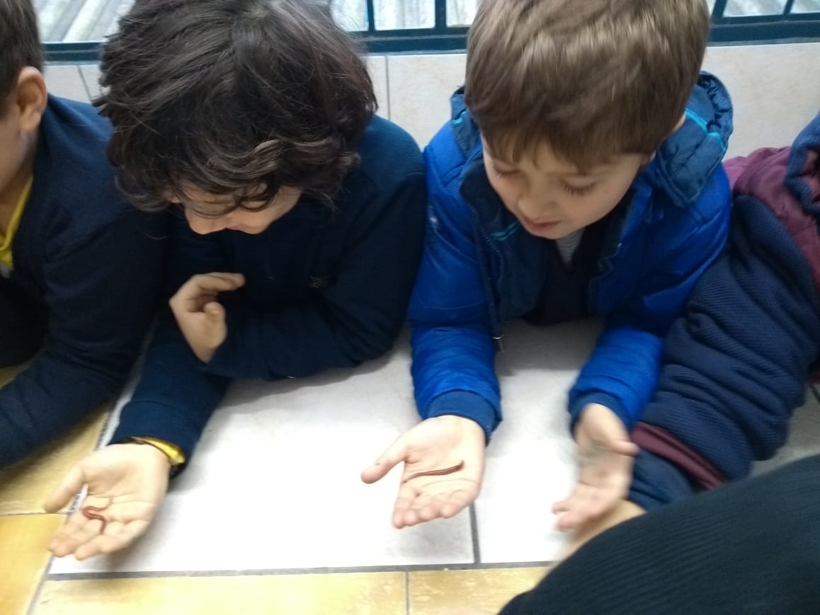 A turma 34, da professora Haidi, entendeu de pertinho a contribuição das minhocas para o solo. A aula prática no Laboratório de Ciências serviu para que os alunos observassem os anelídeos e aprofundassem o conteúdo.